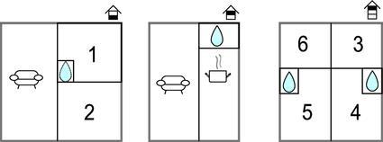 Badeværelse (nr. 1) - WC. Varmt og koldt vand. Bruser og badekar