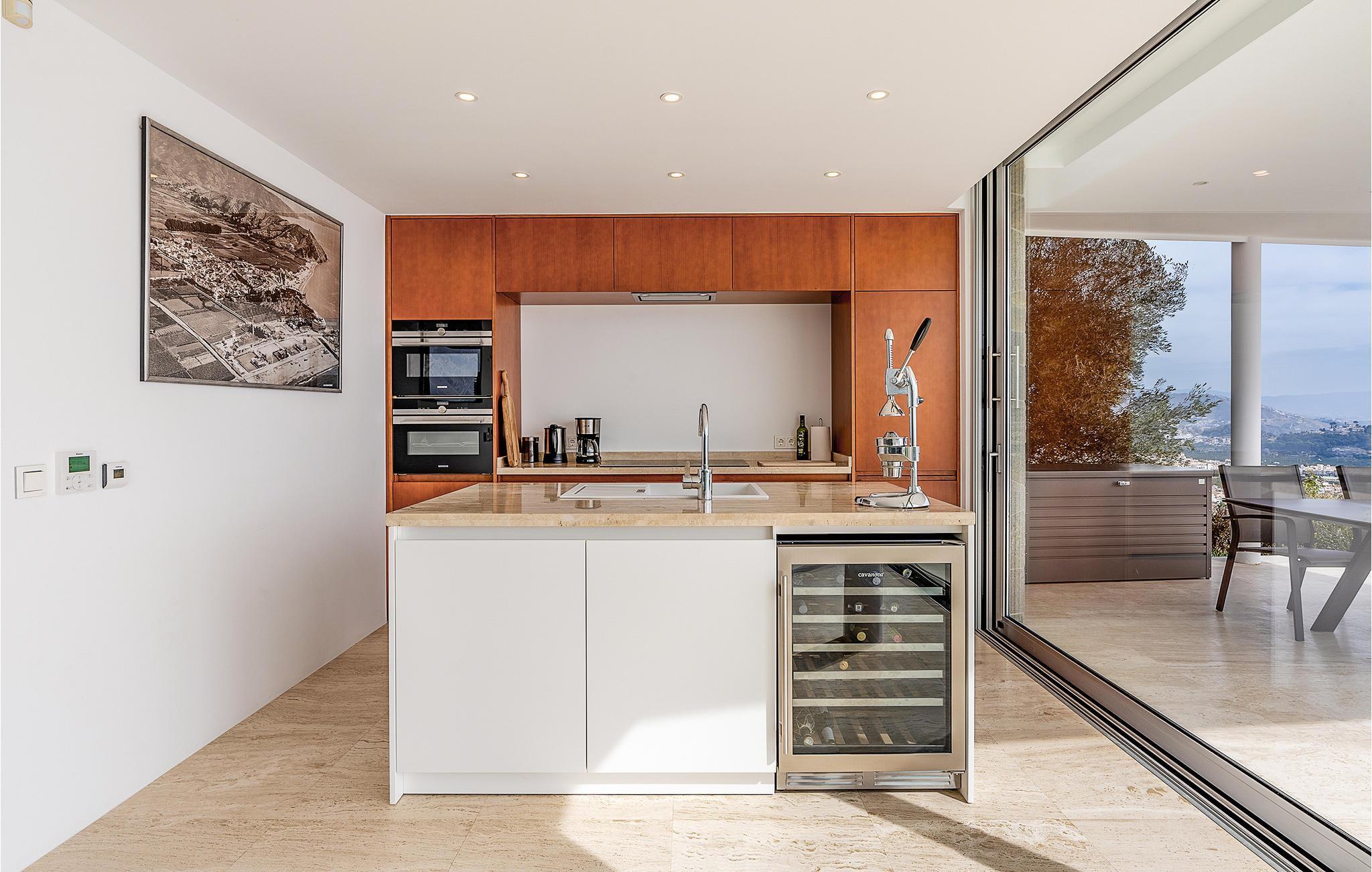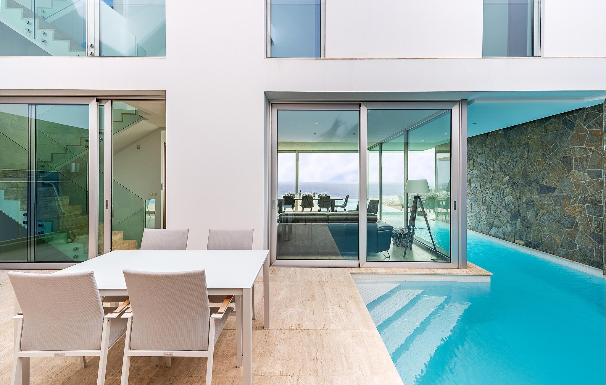 Denne moderne og meget rummelige ferievilla får alle jeres ferieønsker til at gå i opfyldelse. Gør drømmen til virkelighed og forkæl jer selv med en uforglemmelig ferie i dette skønne hus, hvor der er plads til jeres udvidede familie eller jeres gode venner med børn. Den moderne arkitektur med store vinduespartier fylder hele huset med naturligt lys. Nyd at stå op med udsigt til havet og byen. Man mærker næsten ikke overgangen fra de smukt designede lokaler til udearealet. Spis morgenmaden på terrassen og mærk morgensolens stråler, mens I bliver klar til dagen. Bagefter kan I hoppe i den fantastiske infinitypool og derefter tørre i solen, mens I læser en god krimi i loungemøblerne.