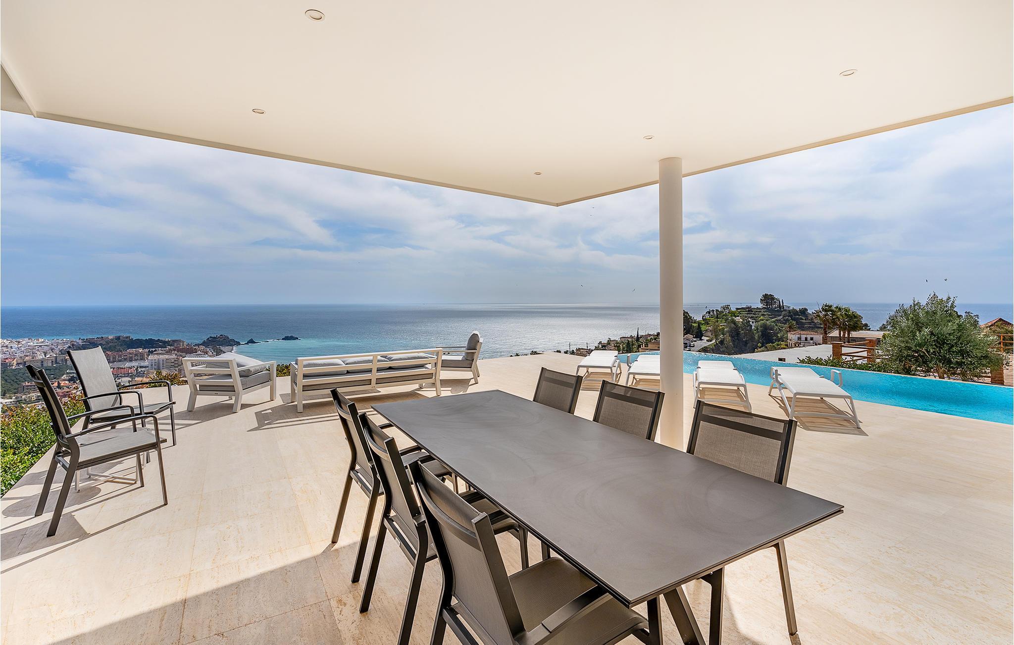 Tilbring en luksusferie i denne betagende villa, som har udsigt til Almuñecars tage.