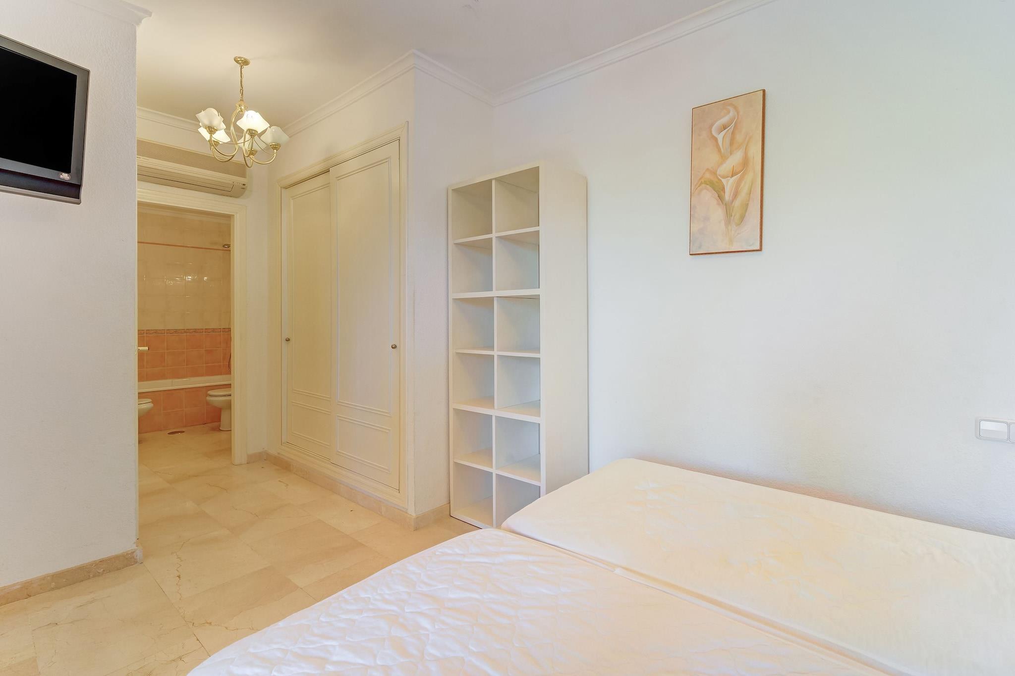 On the 1st floor: (Kitchen(toaster, cooker(ceramic), coffee machine, microwave, dishwasher, washing machine), Living/diningroom(TV(smart TV))) Basement: (bedroom(double bed), bedroom(double bed), bedroom(2x single bed), bathroom, bathroom, bathroom, air conditioning) terrace, garden(shared with other guests), sun loungers, BBQ(charcoal), parking, swimming pool(shared with other guests, including part for children (depth 50cm), 20 x 10 m.)