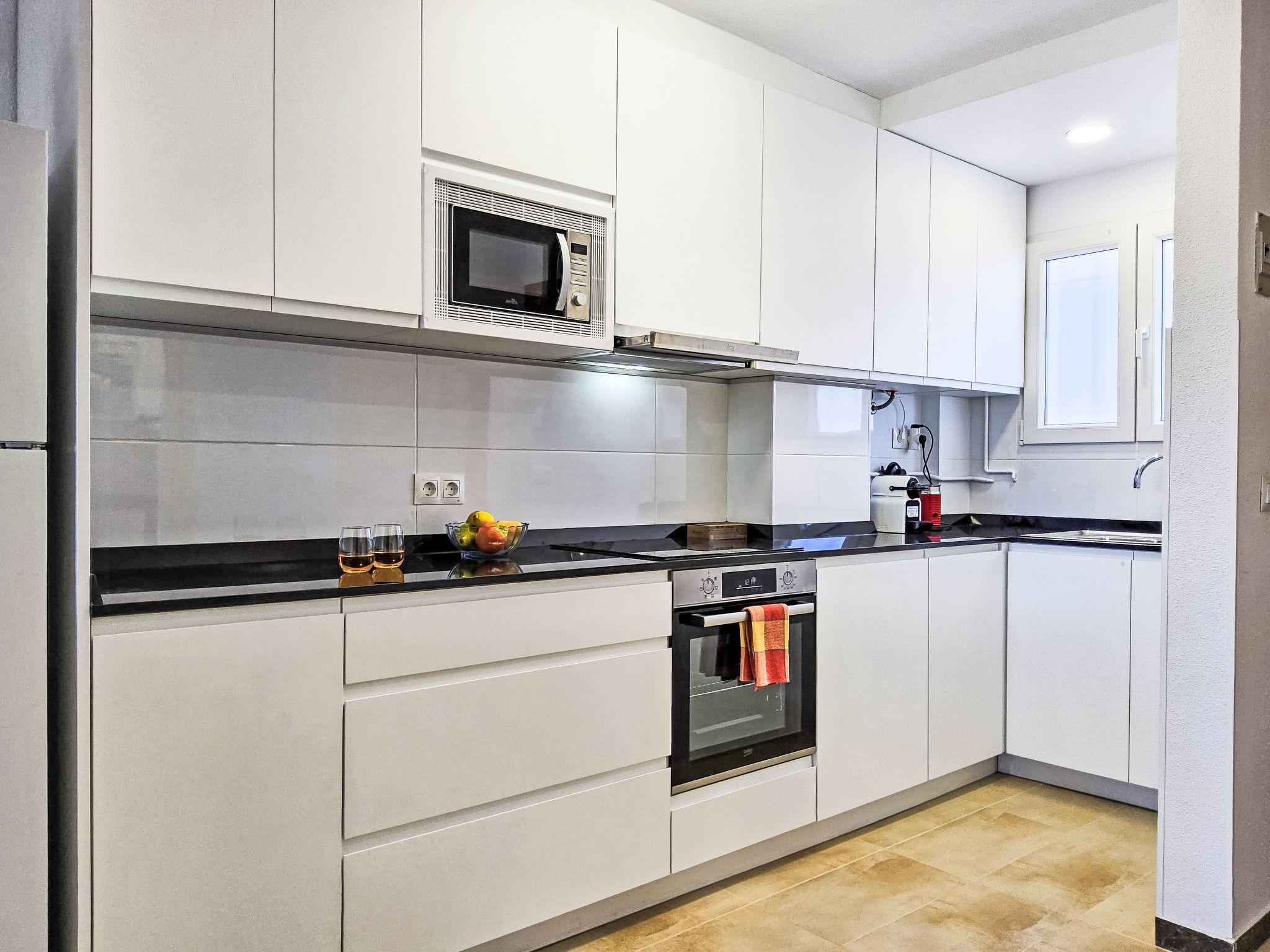 "Sol y Mar", 3-room apartment 51 m2 on 4th floor. In 2024, comfortable and modern furnishings: living/dining room 24 m2 with digital TV, air conditioning, fan and forced-air heating. Exit to the terrace. 1 room 10 m2 with 1 french bed (150 cm, length 190 cm), air conditioning, fan and forced-air heating. 1 room 6 m2 with 1 french bed (135 cm, length 190 cm). Open kitchen 3 m2 (oven, 4 induction hot plates, toaster, kettle, microwave, freezer, electric coffee machine). Shower/WC. Air-conditioning. Terrace 7 m2. Terrace furniture. Very beautiful view of the sea, the swimming pool and the garden. Facilities: washing machine, iron, hair dryer. Internet (WiFi, free). Parking (fenced). Please note: non-smoking house. EGVT-593-A. VT-441492-A // Reg. Nr.: ESFCTU00000305300017931000000000000000000VT-441492-A1