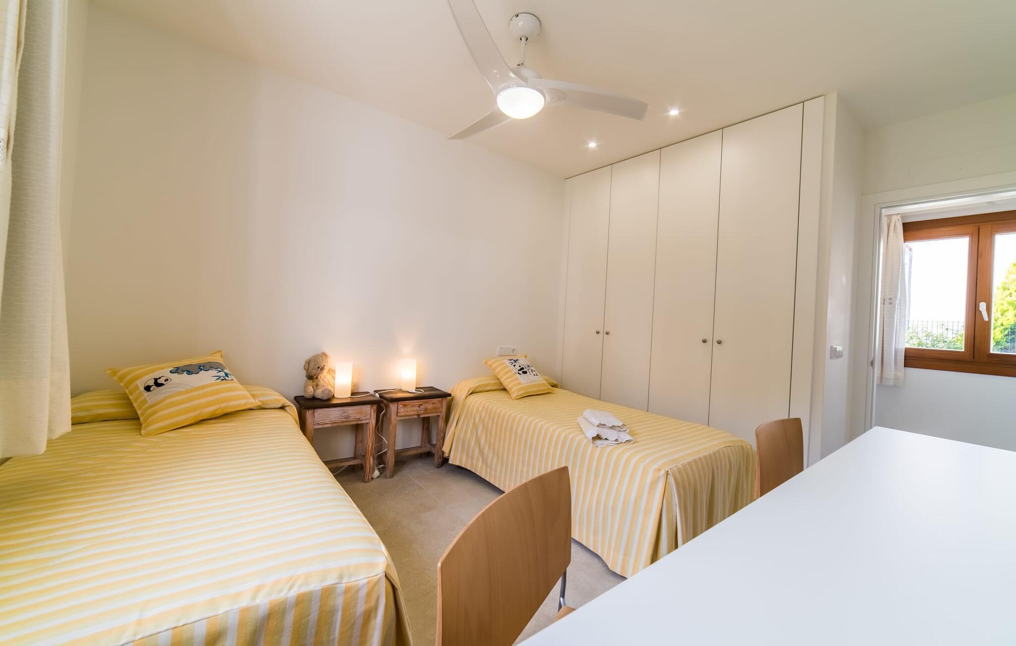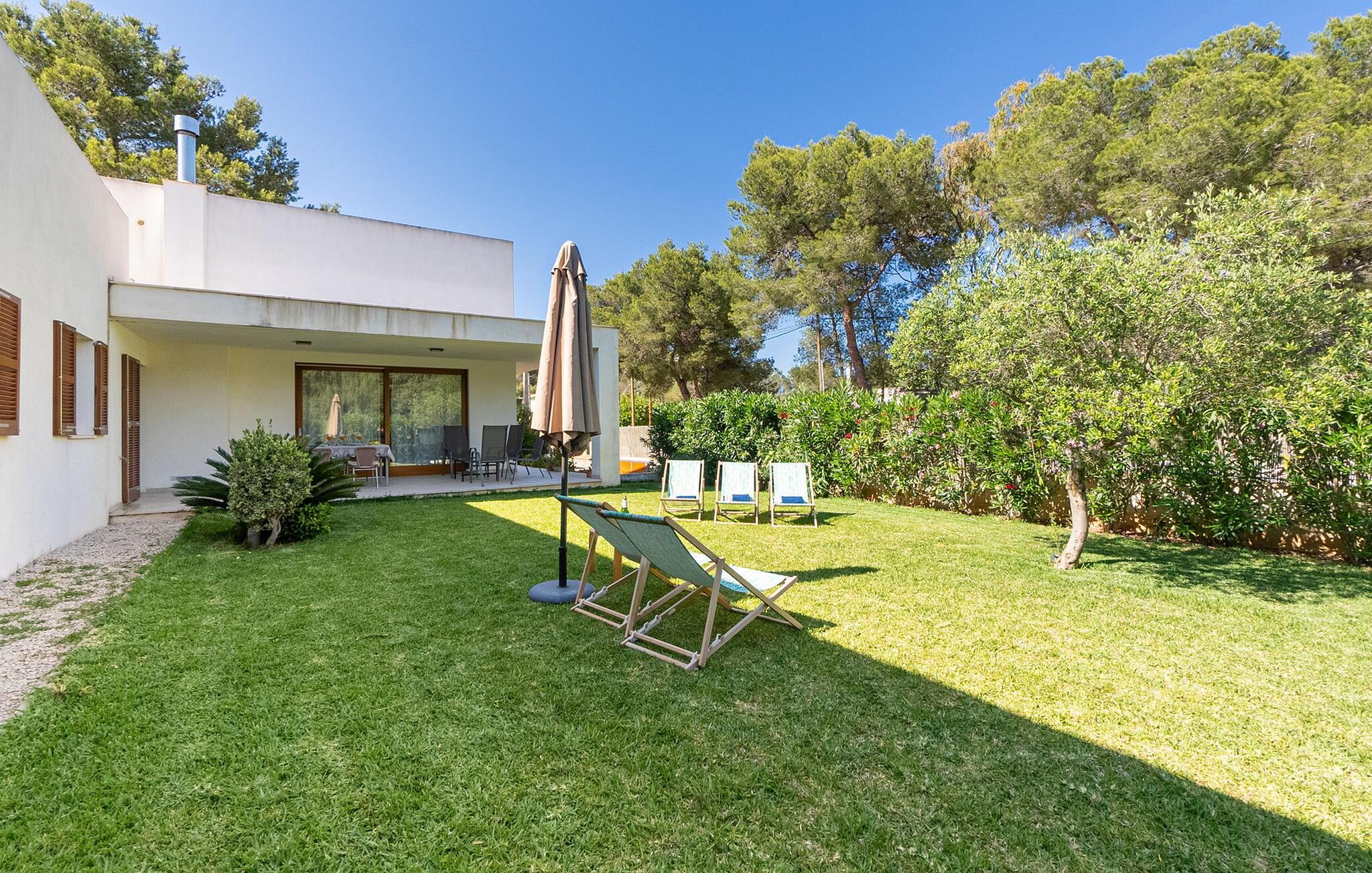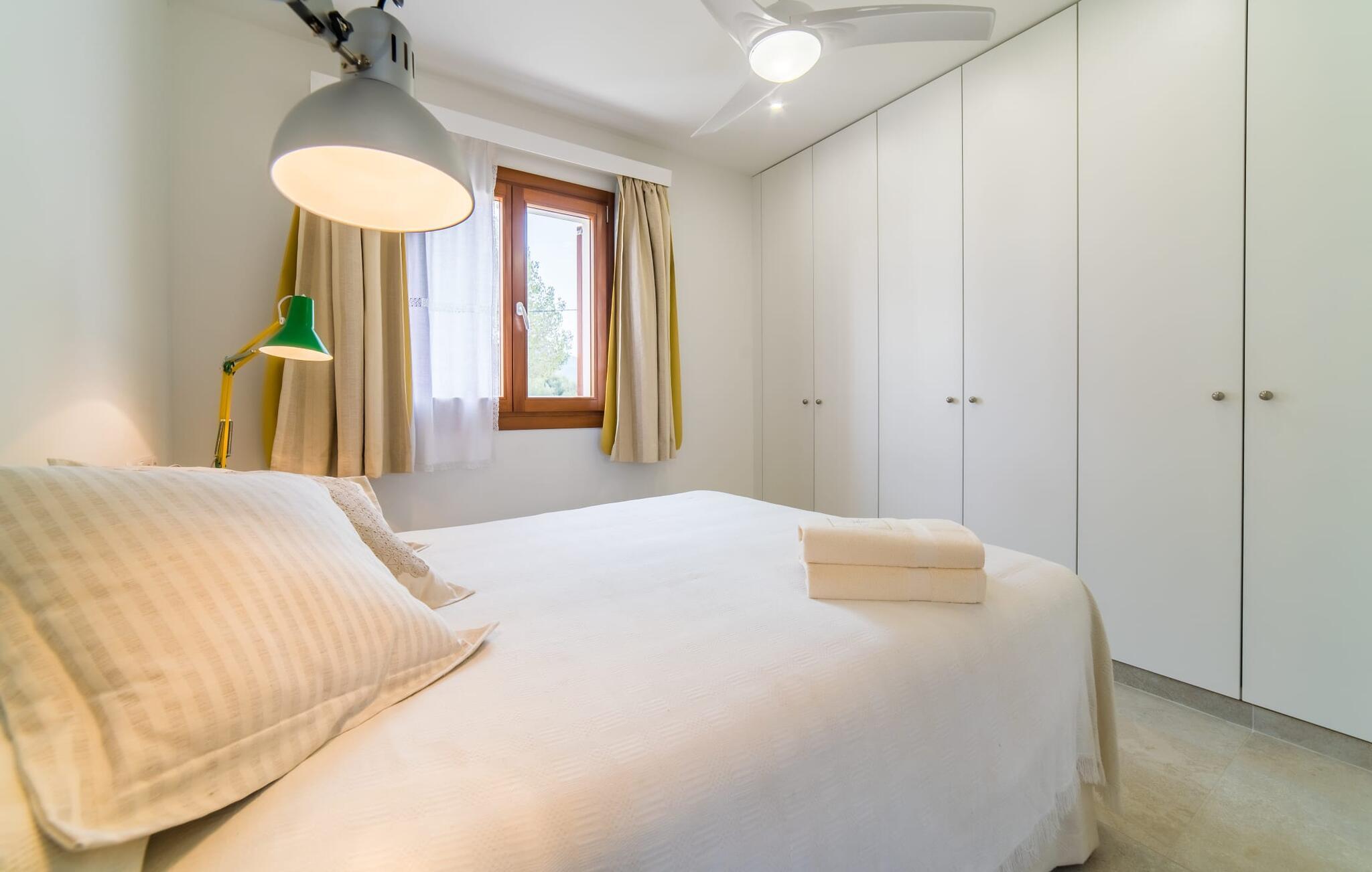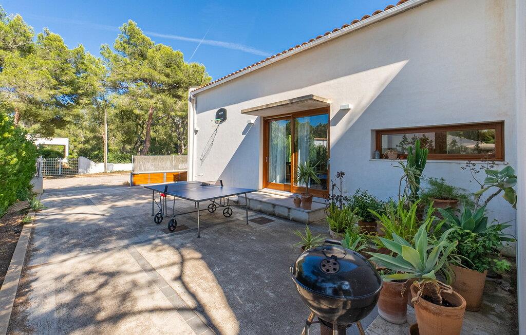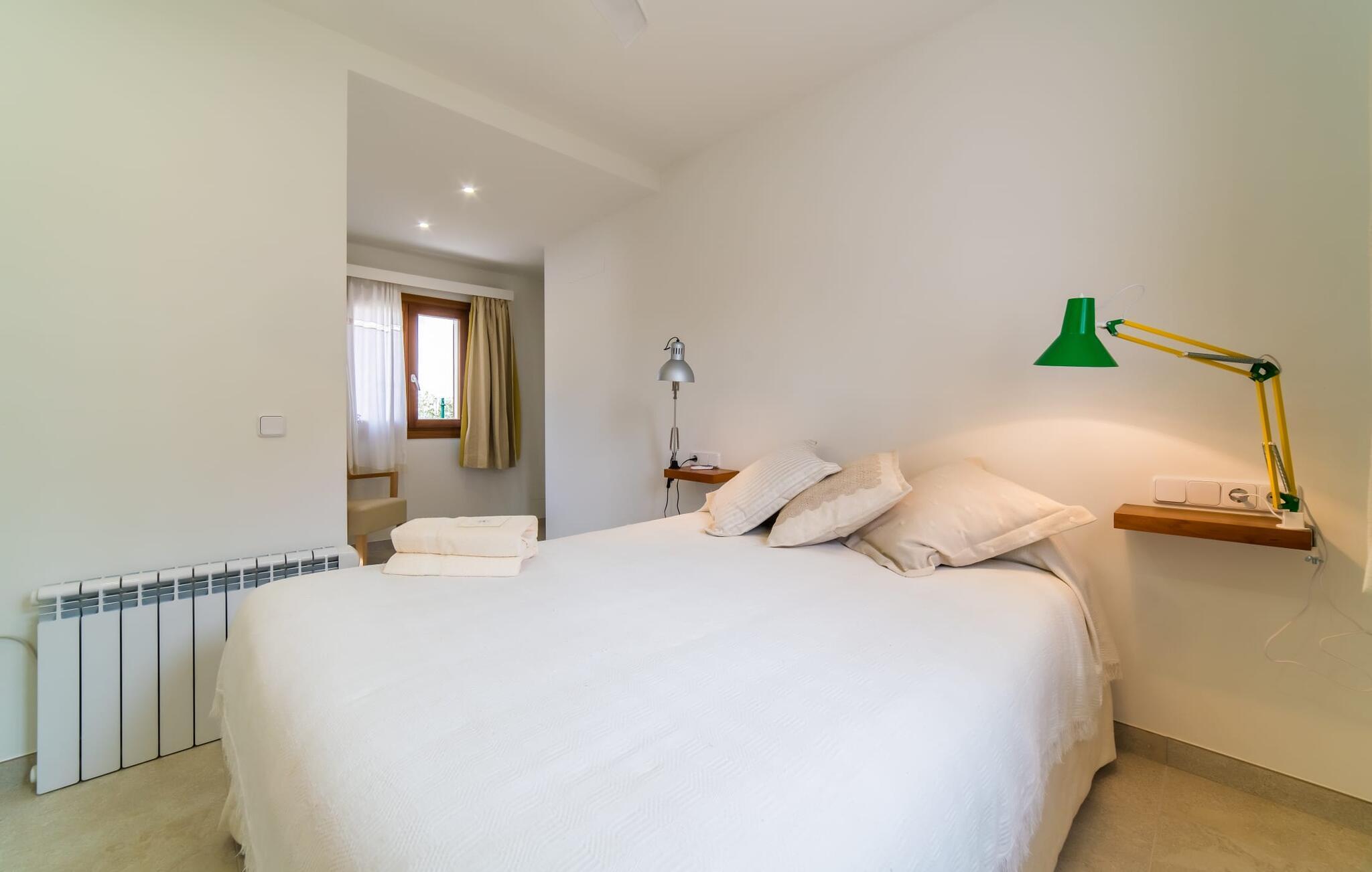 Velkommen til Villa “Amedart”, et hus, der ikke kun har en fantastisk beliggenhed ved havet, men også er et yderst moderne nybyggeri fuld af renhed og klart design. Samtidig er denne lyse hvide, letfindelige ejendom med kubisk arkitektur særdeles familievenlig. Alene det indhegnede haveområde med sin store græsplæne giver børnene masser af plads til at udvikle sig. En basketballkurv og et bordtennisbord er tilgængelige til en kamp mellem generationerne. Det sydvendte hus har en overdækket terrasse med udsigt over haven, hvilket gør det nemt at holde øje med jeres små børn, mens de leger. Verandaen har to smukke siddeområder med borde og komfortable havestole. Bare slap af, mens I hænger ud i hængekøjen med en god bog eller hylder solen på loungestolene i træ; "Amedart" er et sted for afslapning selv uden en pool. Hvis I vil tage en forfriskende dukkert eller se havet, så gå en tur langs den korte sti, og I er der: en betagende beliggenhed på en unik kystlinje. Efter en hyggelig grillaften slutter dagen og det er tid til at sove i den skønne villa. Huset har en L-formet grundplan, hvor verandaen støder op til et åbent rum til afslapning, spisning og madlavning. Denne stue med gulv-til-loft vinduer oversvømmes af lys takket være rumhøjden, de glat pudsede hvide vægge og de sandstensfarvede gulvfliser. En pejs indlejret i væggen skaber en hyggelig atmosfære, blandt andet i det muntre gule opholdsområde foran LCD-fjernsynet. En samling brætspil forvandler spisebordet til et sjovt samtaleområde. Familievenligheden afspejles også i de to høje stole, hvor selv de mindste gæster kan finde deres plads ved spisebordet. Køkkenafdelingen er noget adskilt af en individuel løsning med et fritstående skab i naturligt trælook og masser af opbevaringsplads. Den mørke marmorplade danner en smuk kontrast til det højkvalitetsdesign, som understreges af det omfattende udstyr. Det smarte gæstetoilet fuldender den fuldt klimatiserede fællesstue. Soveværelserne er placeret i den anden del af den L-formede bygning. To soveværelser, hver med to enkeltsenge, deler et moderne hvidt badeværelse med azurblå fliser og bruseniche - perfekt til børn og/eller en bedsteforælder, der bor hos jer. Master king-size soveværelse har en-suite brusebad. Møbeldesignet er det samme som husets: klart, rent, naturligt, minimalistisk. Alt passer bare sammen her. Den stilfulde villa "Amedart" imponerer med sin moderne renhed og nærhed til havet. Ejendommen er beliggende nord for Alcúdia i et kvarter ved havet. Det er kun 200 m fra havet. De mange strande i Pollensa-bugten er et absolut must. Denne region byder på utrolige, beskyttede naturreservater, som er værd at udforske. I Alcúdia eller Sa Pobla er der farverige ugentlige landmandsmarkeder, store butikker, caféer og restauranter - simpelthen alt hvad hjertet begærer.