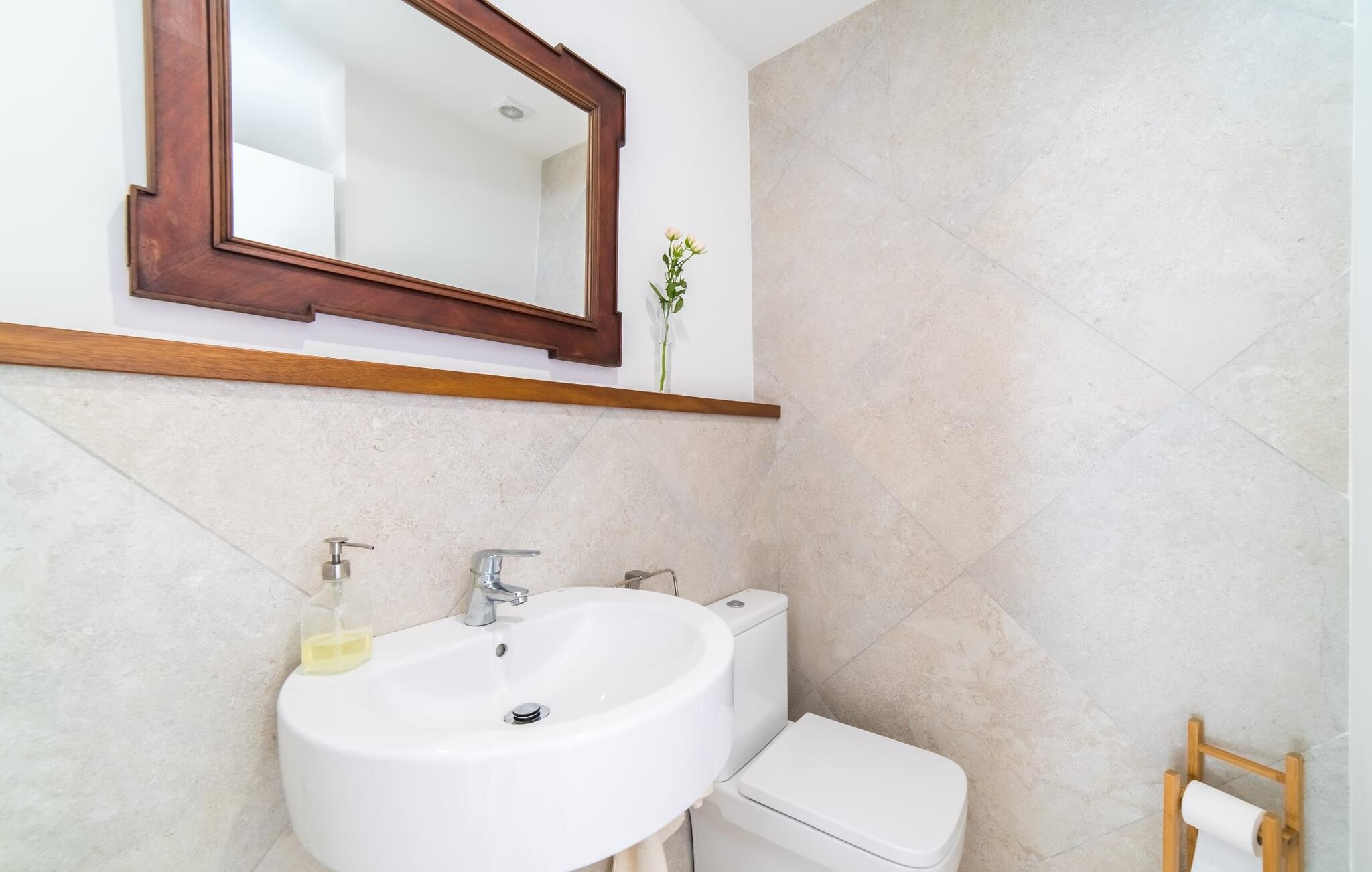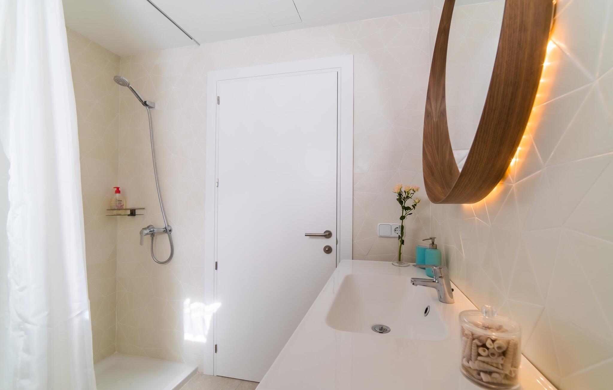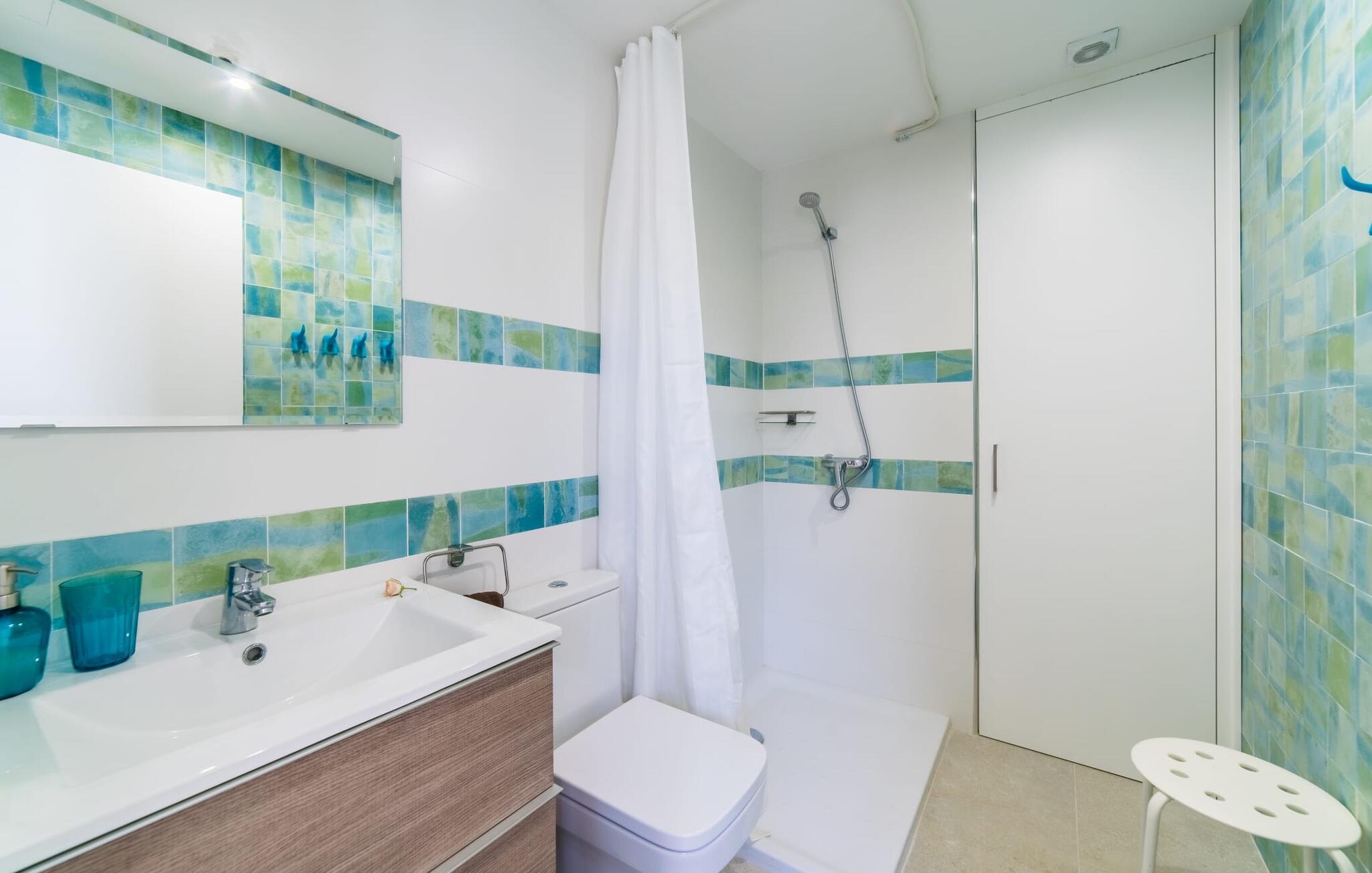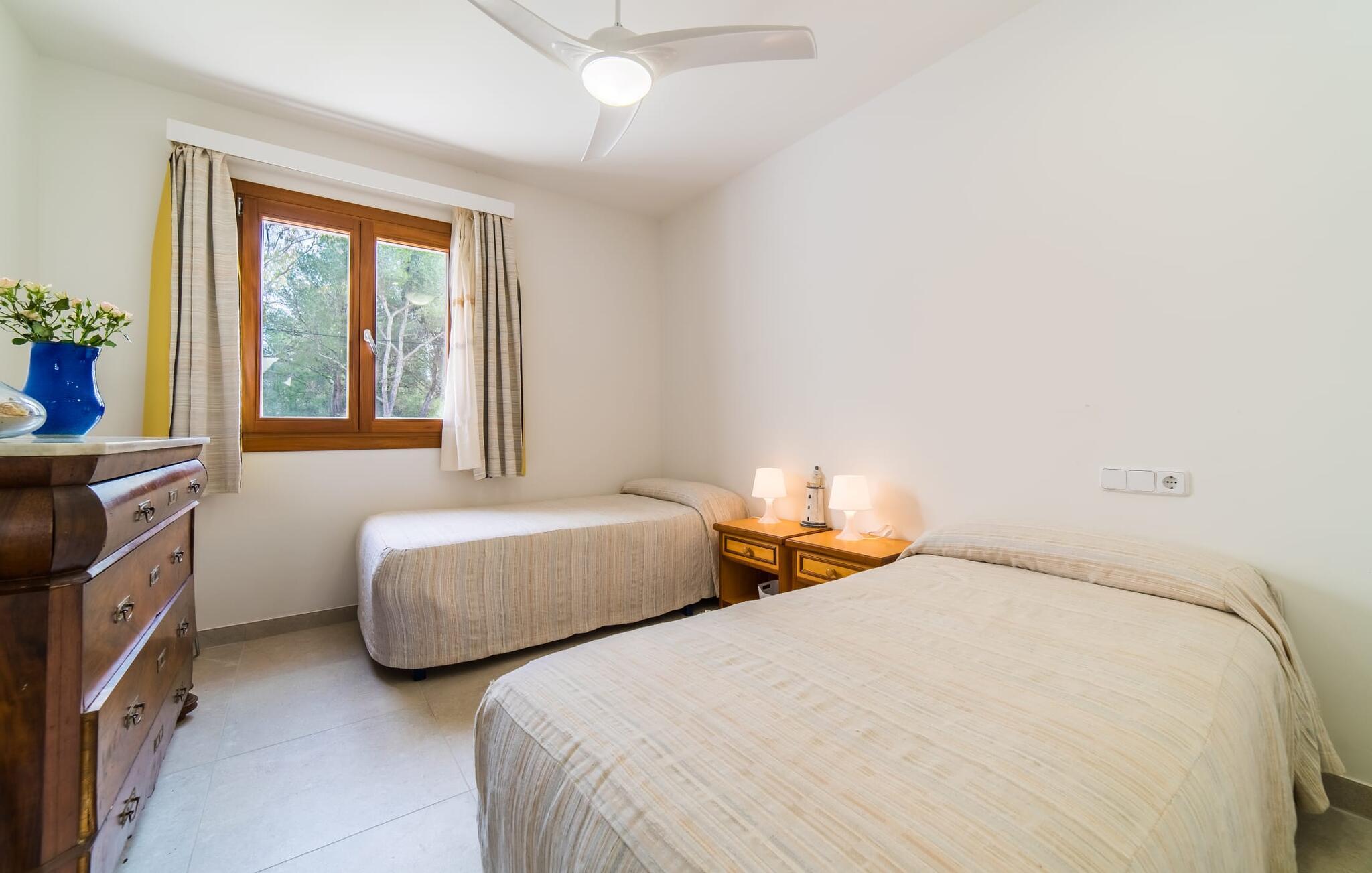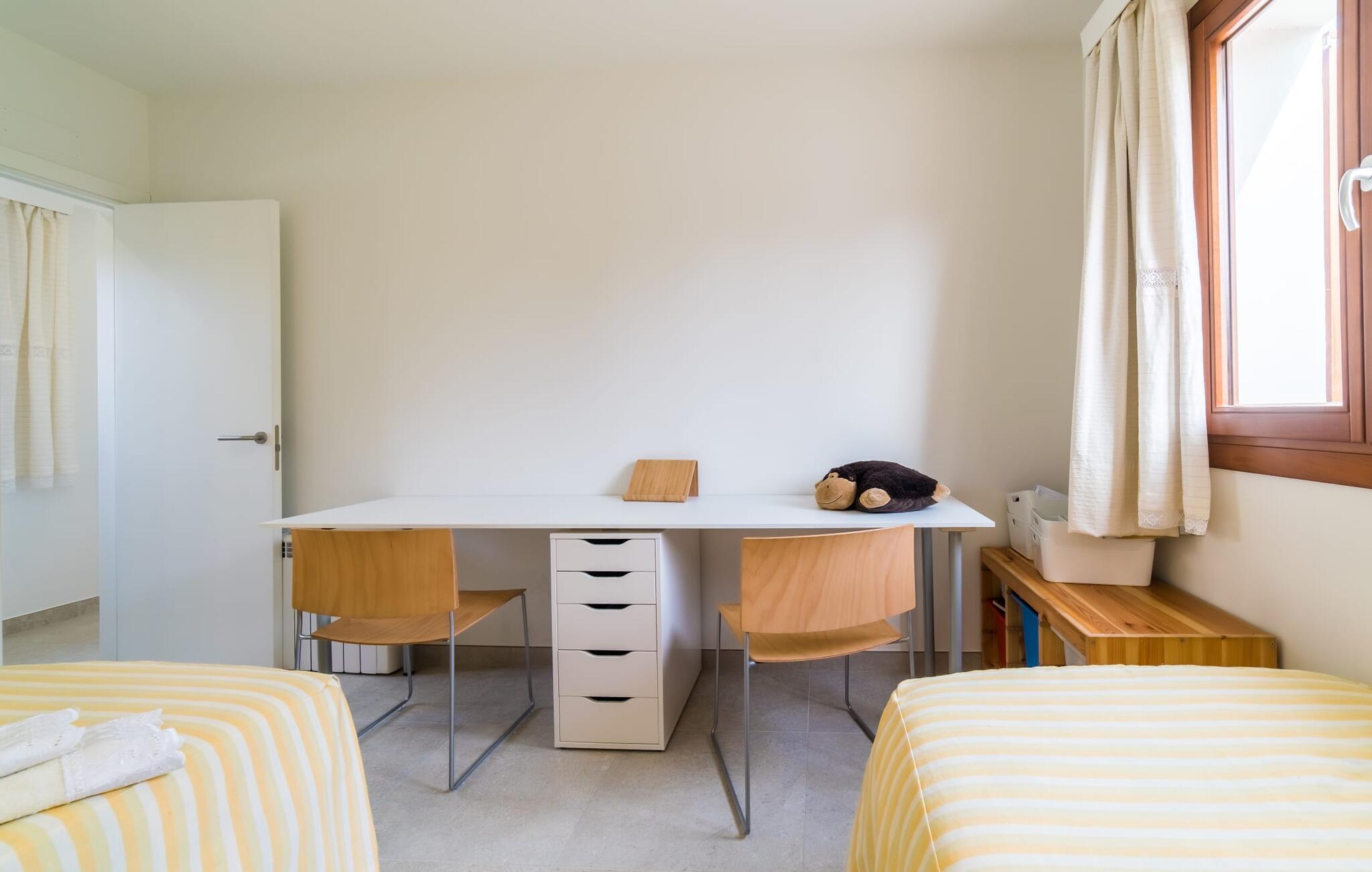 Velkommen til Villa “Amedart”, et hus, der ikke kun har en fantastisk beliggenhed ved havet, men også er et yderst moderne nybyggeri fuld af renhed og klart design. Samtidig er denne lyse hvide, letfindelige ejendom med kubisk arkitektur særdeles familievenlig. Alene det indhegnede haveområde med sin store græsplæne giver børnene masser af plads til at udvikle sig. En basketballkurv og et bordtennisbord er tilgængelige til en kamp mellem generationerne. Det sydvendte hus har en overdækket terrasse med udsigt over haven, hvilket gør det nemt at holde øje med jeres små børn, mens de leger. Verandaen har to smukke siddeområder med borde og komfortable havestole. Bare slap af, mens I hænger ud i hængekøjen med en god bog eller hylder solen på loungestolene i træ; "Amedart" er et sted for afslapning selv uden en pool. Hvis I vil tage en forfriskende dukkert eller se havet, så gå en tur langs den korte sti, og I er der: en betagende beliggenhed på en unik kystlinje. Efter en hyggelig grillaften slutter dagen og det er tid til at sove i den skønne villa. Huset har en L-formet grundplan, hvor verandaen støder op til et åbent rum til afslapning, spisning og madlavning. Denne stue med gulv-til-loft vinduer oversvømmes af lys takket være rumhøjden, de glat pudsede hvide vægge og de sandstensfarvede gulvfliser. En pejs indlejret i væggen skaber en hyggelig atmosfære, blandt andet i det muntre gule opholdsområde foran LCD-fjernsynet. En samling brætspil forvandler spisebordet til et sjovt samtaleområde. Familievenligheden afspejles også i de to høje stole, hvor selv de mindste gæster kan finde deres plads ved spisebordet. Køkkenafdelingen er noget adskilt af en individuel løsning med et fritstående skab i naturligt trælook og masser af opbevaringsplads. Den mørke marmorplade danner en smuk kontrast til det højkvalitetsdesign, som understreges af det omfattende udstyr. Det smarte gæstetoilet fuldender den fuldt klimatiserede fællesstue. Soveværelserne er placeret i den anden del af den L-formede bygning. To soveværelser, hver med to enkeltsenge, deler et moderne hvidt badeværelse med azurblå fliser og bruseniche - perfekt til børn og/eller en bedsteforælder, der bor hos jer. Master king-size soveværelse har en-suite brusebad. Møbeldesignet er det samme som husets: klart, rent, naturligt, minimalistisk. Alt passer bare sammen her. Den stilfulde villa "Amedart" imponerer med sin moderne renhed og nærhed til havet. Ejendommen er beliggende nord for Alcúdia i et kvarter ved havet. Det er kun 200 m fra havet. De mange strande i Pollensa-bugten er et absolut must. Denne region byder på utrolige, beskyttede naturreservater, som er værd at udforske. I Alcúdia eller Sa Pobla er der farverige ugentlige landmandsmarkeder, store butikker, caféer og restauranter - simpelthen alt hvad hjertet begærer.