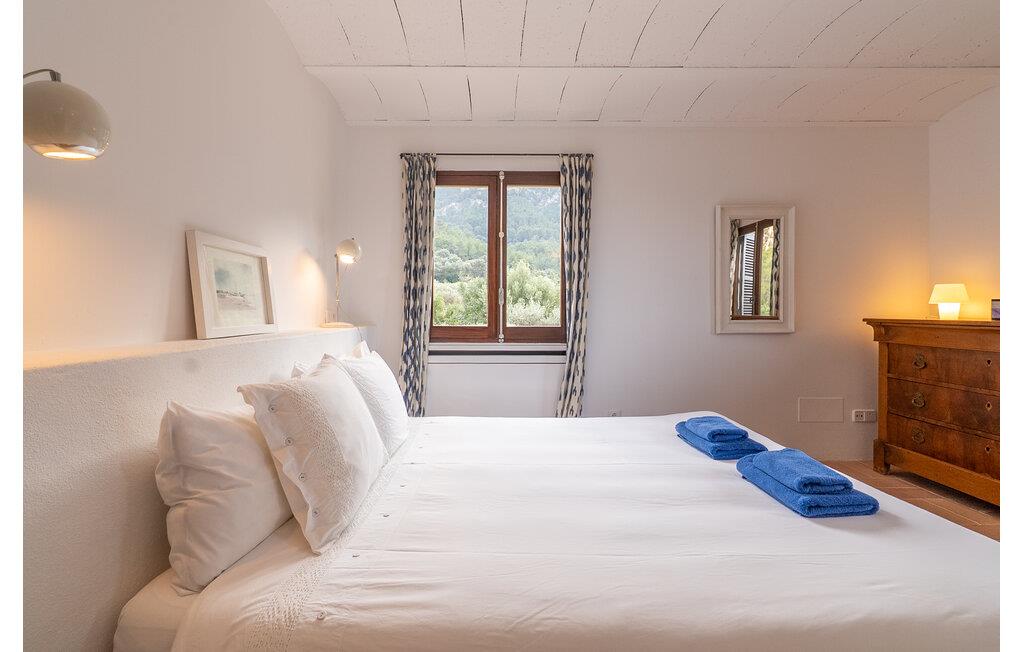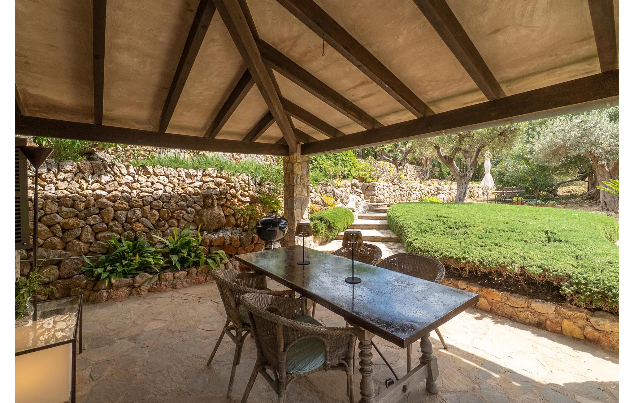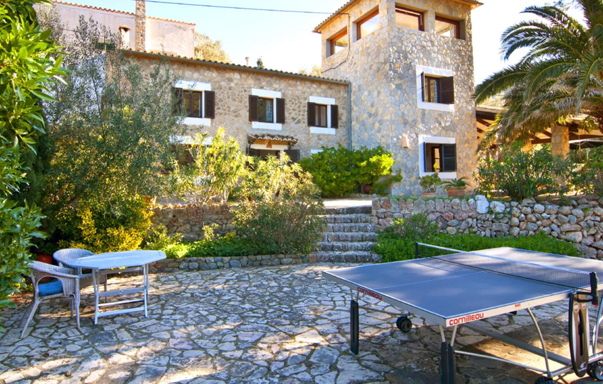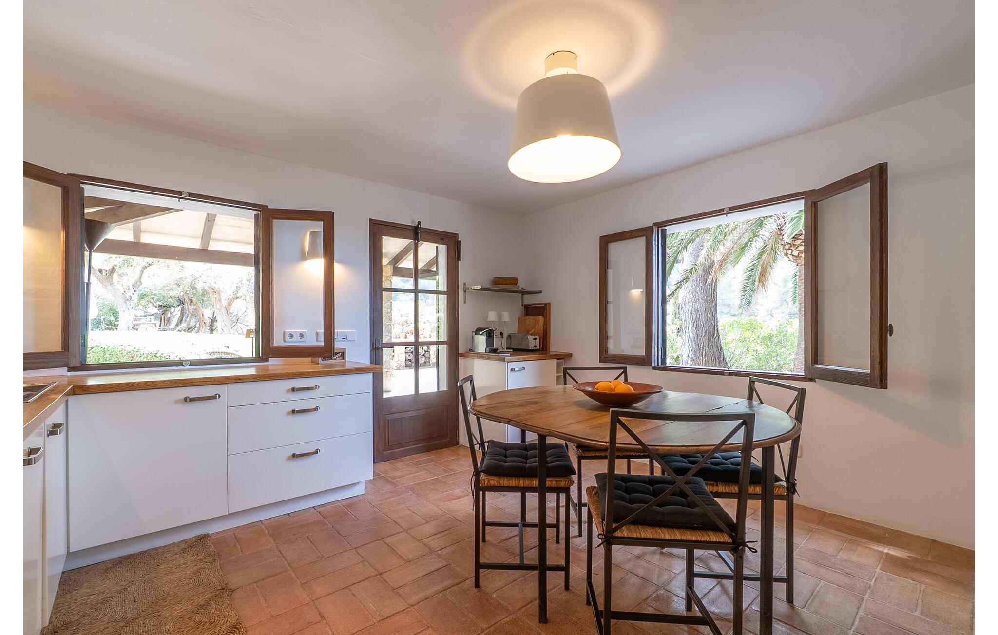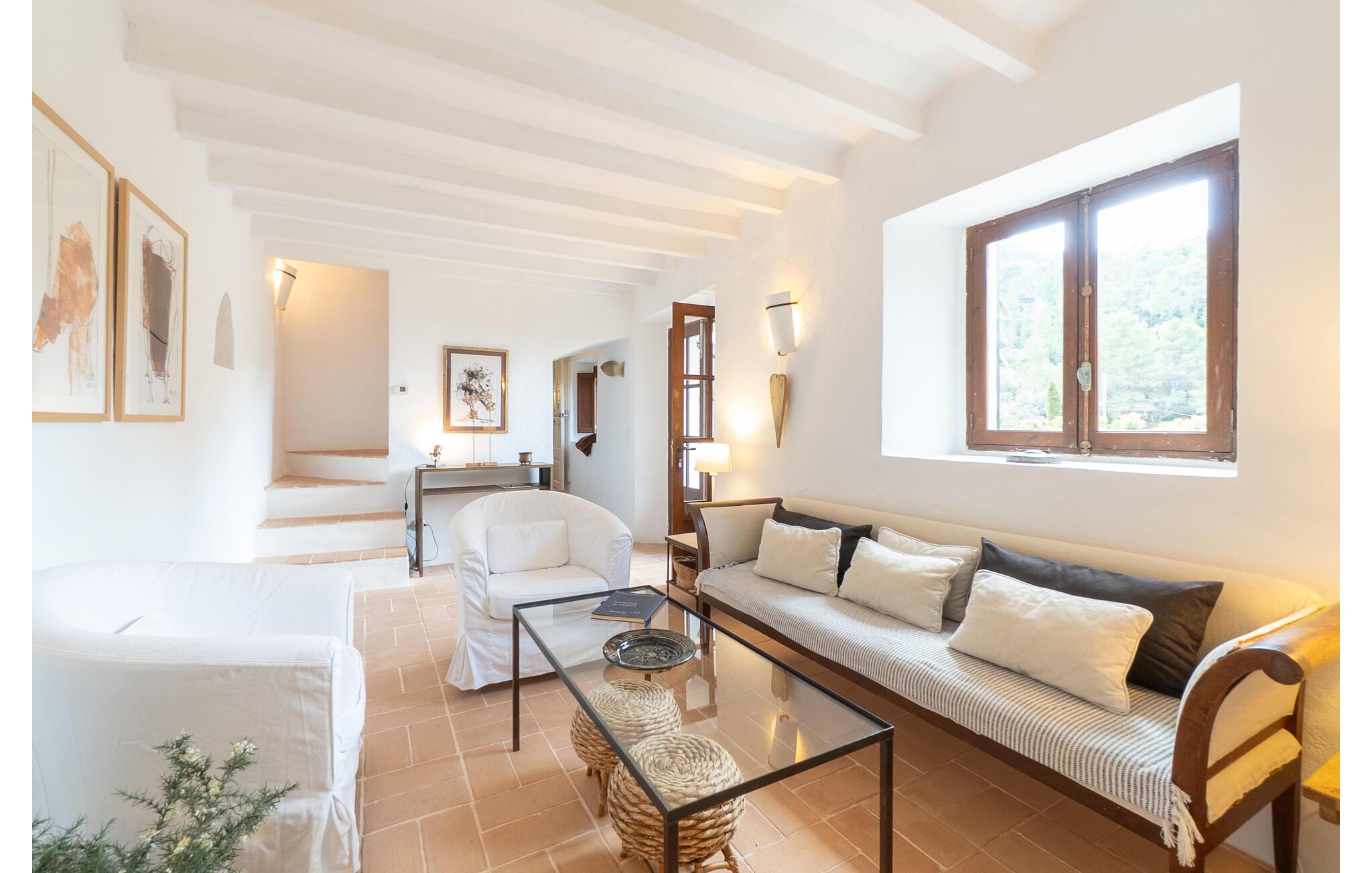 Den typiske stenbrudsvilla "Ana" er beliggende på en fænomenal bjergskråning over Estellencs-bugten, som er meget populær på grund af sit krystalklare vand. Hvis I elsker natur og fred, men stadig gerne vil være lige ved havet og tilbringe jeres ferie med at slappe af, er dette det rigtige sted for jer, vidunderligt indlejret i det smukke landskab. Beliggenheden på en bjergskråning i Tramuntana-bjergene tilbyder villaen beskyttelse blandt ærværdige, store træer. Nyd disse fantastiske omgivelser med udsigt over havet - simpelthen spektakulært. Den magiske naturstensvilla ligger på en meget velholdt og uberørt ejendom. De forskellige terrasser og udendørs opholdsområder indrammet af natursten passer problemfrit ind i omgivelserne, og det smukke villakompleks smelter sammen med naturen. Uanset om I vil spille bordtennis, slappe af ved poolen på en af liggestolene i skyggen af forteltet, sidde ved et af bordene i skyggen af oliventræerne og nyde udsigten over havet og fjerne landskaber - dette villa er fuld af sande steder af velvære. Mens I bruger den udendørs grill til at tilberede en dejlig middag og spise sammen ved bordet på den overdækkede terrasse, kan I virkelig nyde denne stille ferieoase. Interiøret passer perfekt til udendørsområdets vidunderlige naturlige skønhed. I stueetagen finder I en hyggelig stue med pejs, hvor I kan nyde et glas lækker Malvasia-vin, typisk for regionen. Et stilfuldt, hvidt og fuldt udstyret køkken rummer et rundt spisebord; Det er det perfekte sted at lave mad sammen. Der er også to antikke montrer i dette rum, som begge er iøjnefaldende på grund af deres rusticitet. Soveværelserne er særligt hyggelige og har et middelhavsdesign. Et soveværelse er udstyret med en dobbeltseng, det andet soveværelse har to enkeltsenge. Begge badeværelser har et smagfuldt og charmerende design med accenter af guld, marineblå og naturlige stenbrud. Naturelskere kan nyde deres yndlingsaktiviteter og bruge deres tid på at vandre, svømme, snorkle eller sejle, mens de nyder den betagende udsigt over kystklipperne. I kan medbringe et par sandaler, da bugterne har tendens til at være ret stenede under fødderne. Beundre de terrasserede marker ved Estellencs, hvor aromatiske tomater, vin og oliven hovedsageligt dyrkes, mens de maleriske naturstenshuse byder på en idyllisk udsigt. Det rolige centrum af Estellencs eller den nærliggende Banyalbufar er også et besøg værd. Hvorfor ikke nyde nogle lokale specialiteter i en af de gode restauranter eller tapasbarer? Hvis I har en lejebil, skal I være opmærksom på, at mindre biler er mere velegnede til denne region, da nogle af de smalle veje og gader virkelig er hårrejsende smalle og blæsende. Dette naturstenshus "Ana" er indlejret i en romantisk, naturlig ejendom med en sensationel udsigt over havet. En lille, naturlig sti fører jer fra huset gennem en fyrrelund mod bugten "Cala Estellencs", som er særlig populær blandt snorklere. I kan gøre alle jeres indkøb hurtigt og nemt i den nærliggende landsby Estellencs. Der er også nogle meget gode restauranter og barer her. For omfattende shoppingture, tag til Port d'Andratx eller tag en tur til øens hovedstad Palma.
