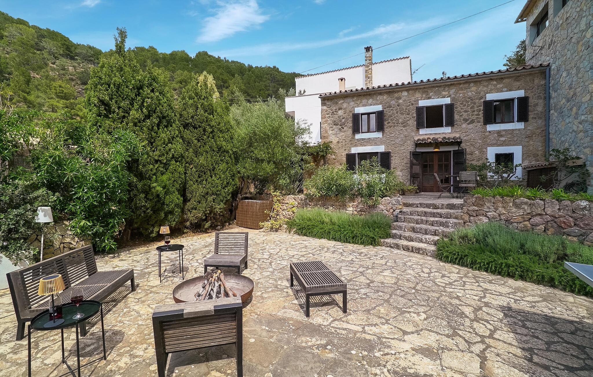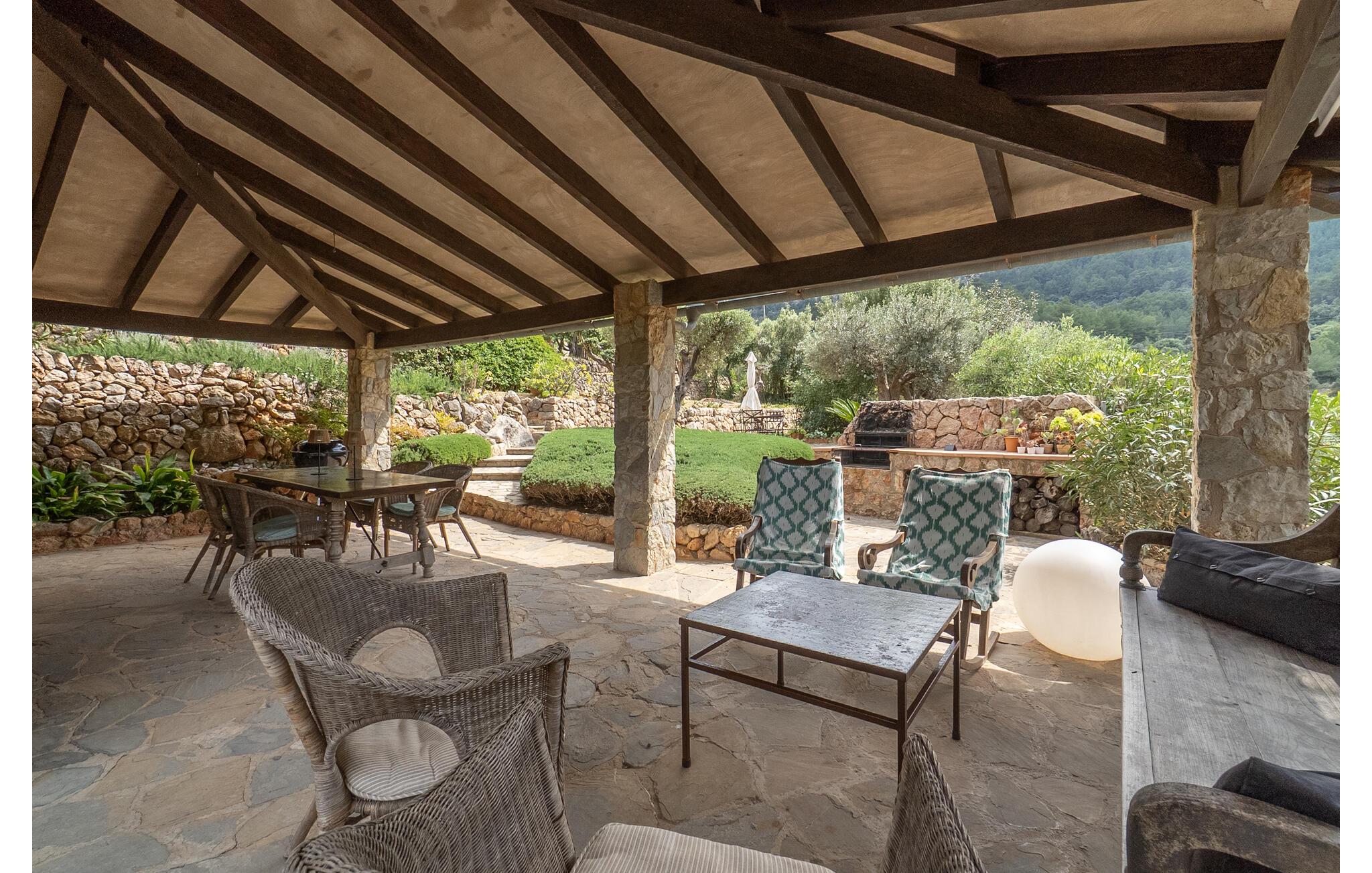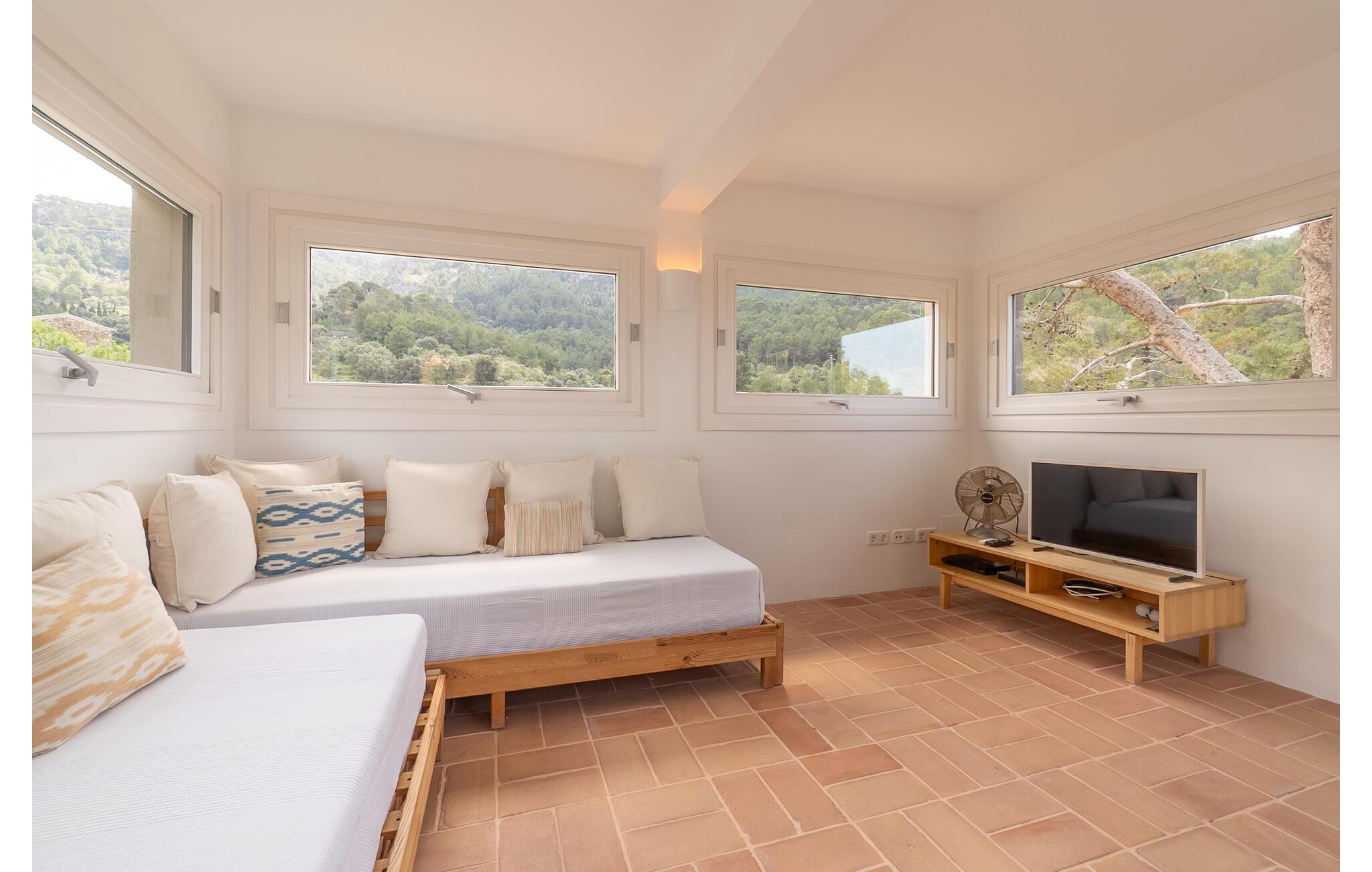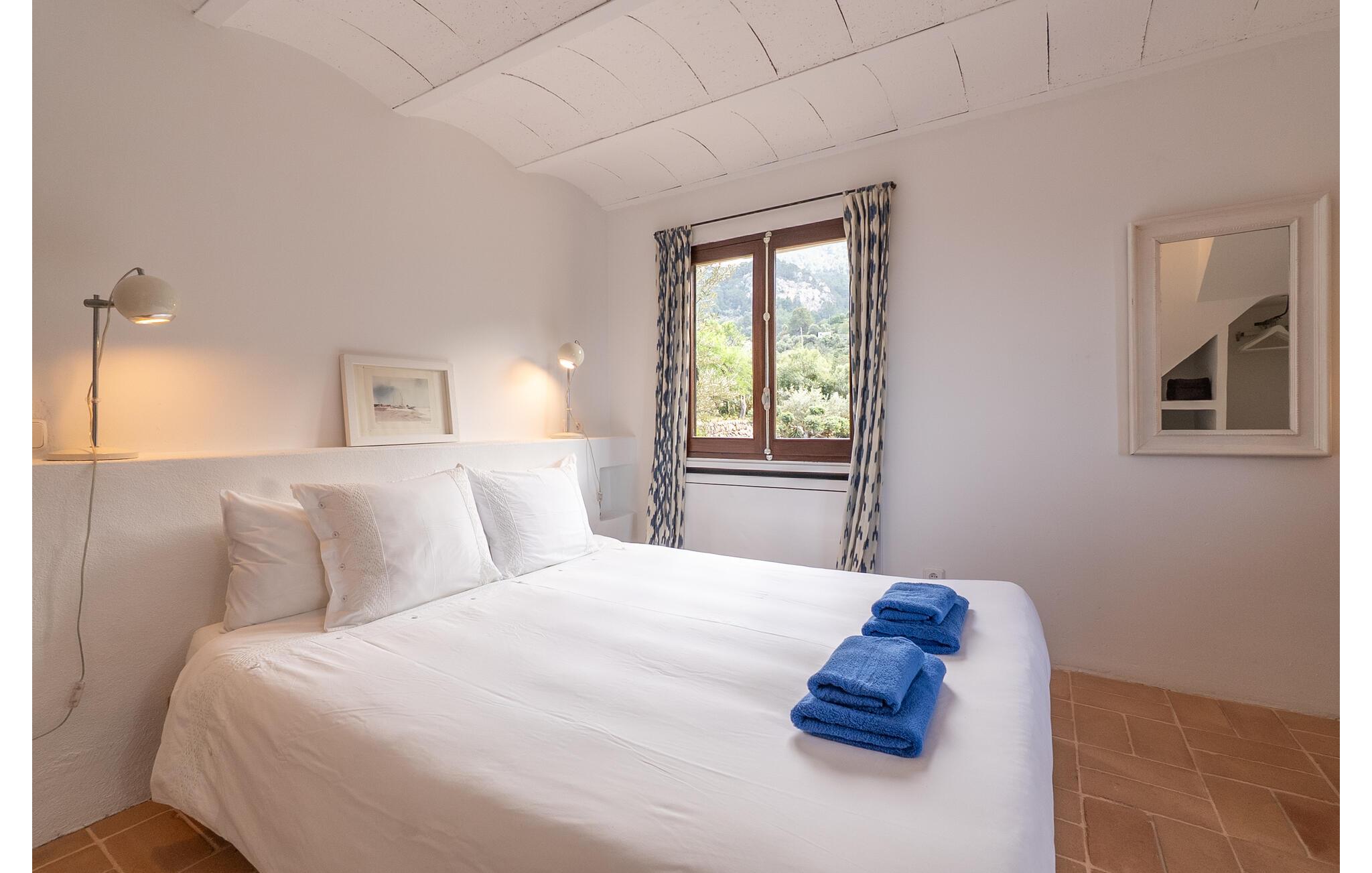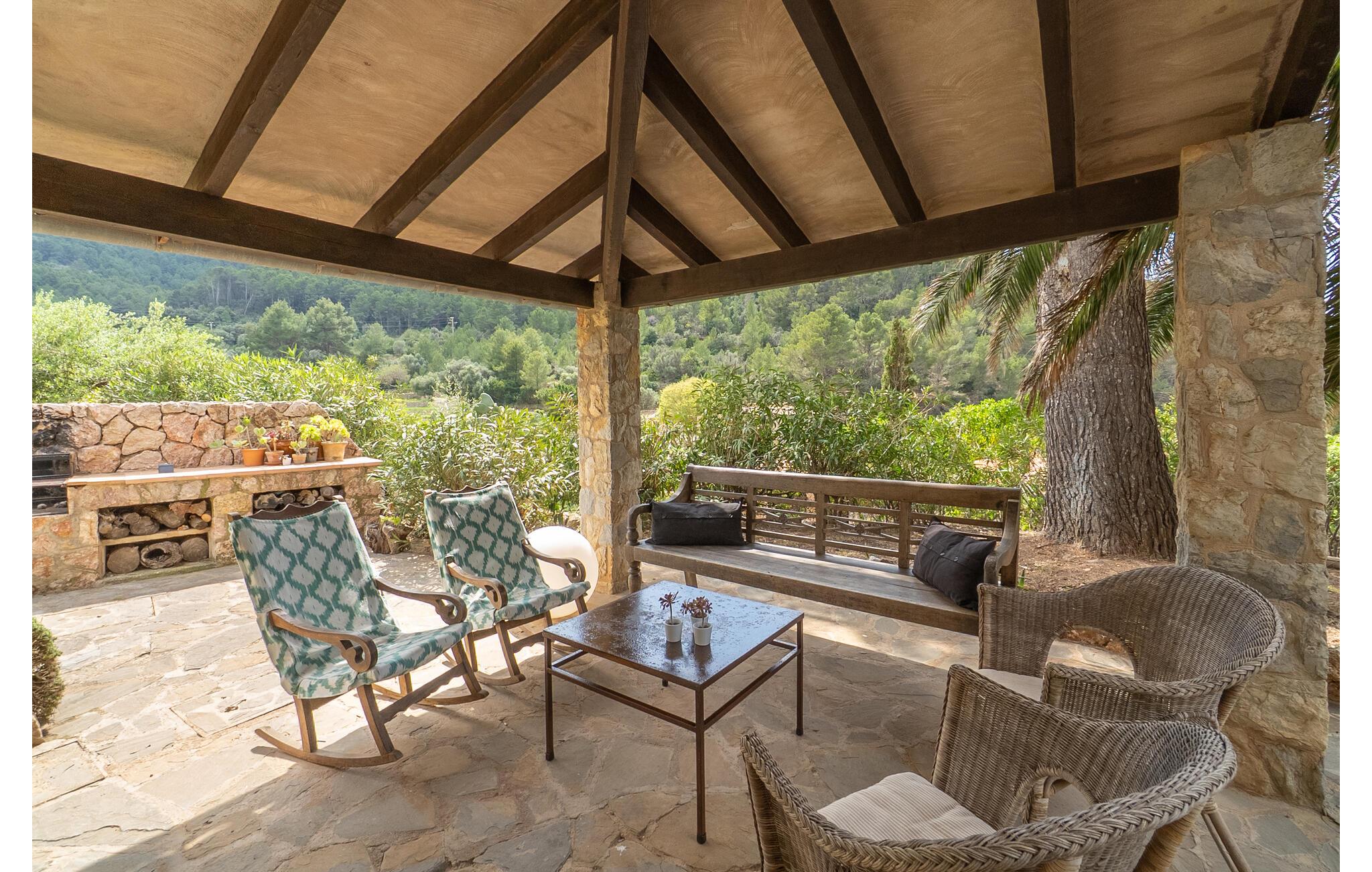 Den typiske stenbrudsvilla "Ana" er beliggende på en fænomenal bjergskråning over Estellencs-bugten, som er meget populær på grund af sit krystalklare vand. Hvis I elsker natur og fred, men stadig gerne vil være lige ved havet og tilbringe jeres ferie med at slappe af, er dette det rigtige sted for jer, vidunderligt indlejret i det smukke landskab. Beliggenheden på en bjergskråning i Tramuntana-bjergene tilbyder villaen beskyttelse blandt ærværdige, store træer. Nyd disse fantastiske omgivelser med udsigt over havet - simpelthen spektakulært. Den magiske naturstensvilla ligger på en meget velholdt og uberørt ejendom. De forskellige terrasser og udendørs opholdsområder indrammet af natursten passer problemfrit ind i omgivelserne, og det smukke villakompleks smelter sammen med naturen. Uanset om I vil spille bordtennis, slappe af ved poolen på en af liggestolene i skyggen af forteltet, sidde ved et af bordene i skyggen af oliventræerne og nyde udsigten over havet og fjerne landskaber - dette villa er fuld af sande steder af velvære. Mens I bruger den udendørs grill til at tilberede en dejlig middag og spise sammen ved bordet på den overdækkede terrasse, kan I virkelig nyde denne stille ferieoase. Interiøret passer perfekt til udendørsområdets vidunderlige naturlige skønhed. I stueetagen finder I en hyggelig stue med pejs, hvor I kan nyde et glas lækker Malvasia-vin, typisk for regionen. Et stilfuldt, hvidt og fuldt udstyret køkken rummer et rundt spisebord; Det er det perfekte sted at lave mad sammen. Der er også to antikke montrer i dette rum, som begge er iøjnefaldende på grund af deres rusticitet. Soveværelserne er særligt hyggelige og har et middelhavsdesign. Et soveværelse er udstyret med en dobbeltseng, det andet soveværelse har to enkeltsenge. Begge badeværelser har et smagfuldt og charmerende design med accenter af guld, marineblå og naturlige stenbrud. Naturelskere kan nyde deres yndlingsaktiviteter og bruge deres tid på at vandre, svømme, snorkle eller sejle, mens de nyder den betagende udsigt over kystklipperne. I kan medbringe et par sandaler, da bugterne har tendens til at være ret stenede under fødderne. Beundre de terrasserede marker ved Estellencs, hvor aromatiske tomater, vin og oliven hovedsageligt dyrkes, mens de maleriske naturstenshuse byder på en idyllisk udsigt. Det rolige centrum af Estellencs eller den nærliggende Banyalbufar er også et besøg værd. Hvorfor ikke nyde nogle lokale specialiteter i en af de gode restauranter eller tapasbarer? Hvis I har en lejebil, skal I være opmærksom på, at mindre biler er mere velegnede til denne region, da nogle af de smalle veje og gader virkelig er hårrejsende smalle og blæsende. Dette naturstenshus "Ana" er indlejret i en romantisk, naturlig ejendom med en sensationel udsigt over havet. En lille, naturlig sti fører jer fra huset gennem en fyrrelund mod bugten "Cala Estellencs", som er særlig populær blandt snorklere. I kan gøre alle jeres indkøb hurtigt og nemt i den nærliggende landsby Estellencs. Der er også nogle meget gode restauranter og barer her. For omfattende shoppingture, tag til Port d'Andratx eller tag en tur til øens hovedstad Palma.