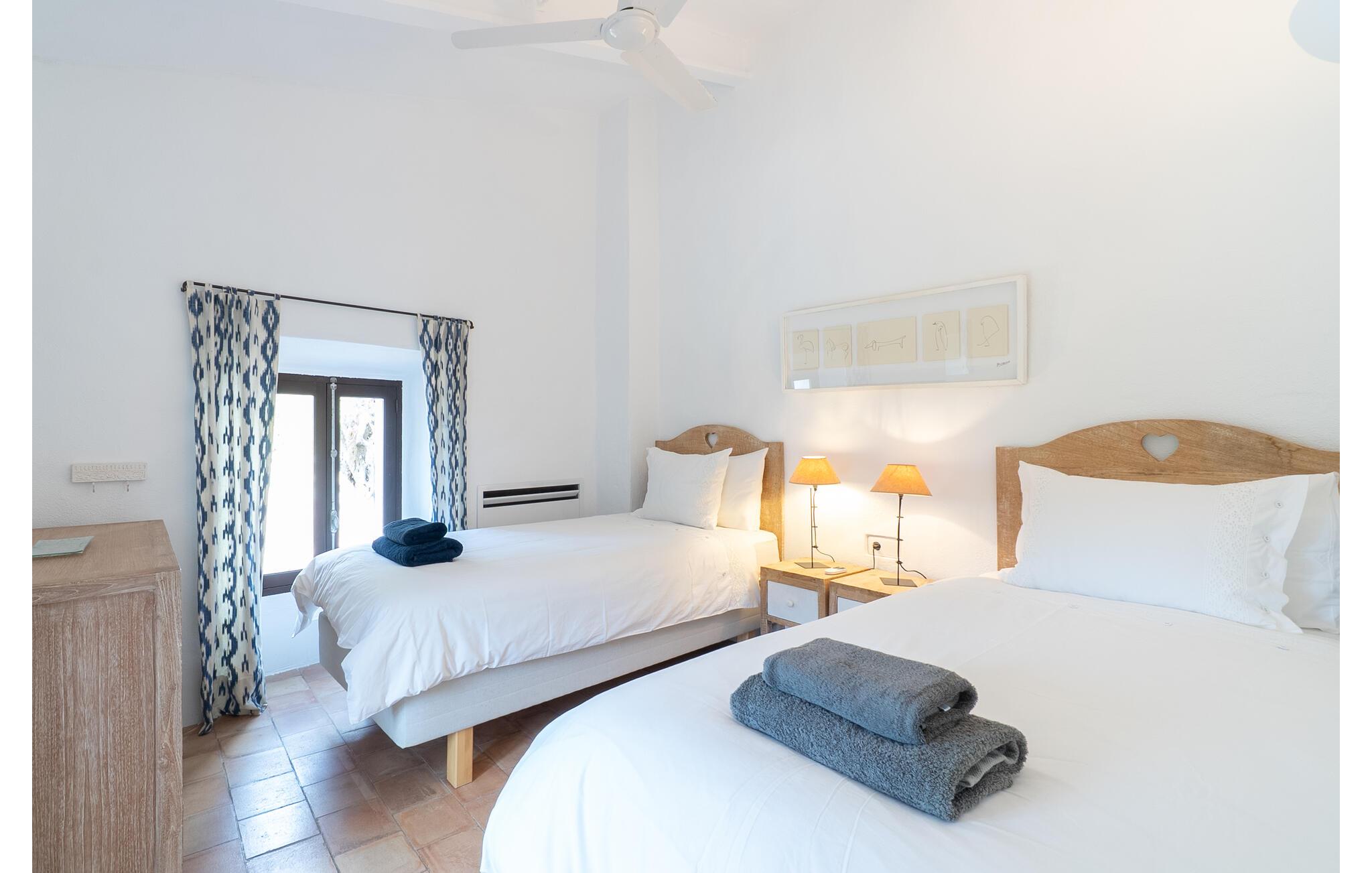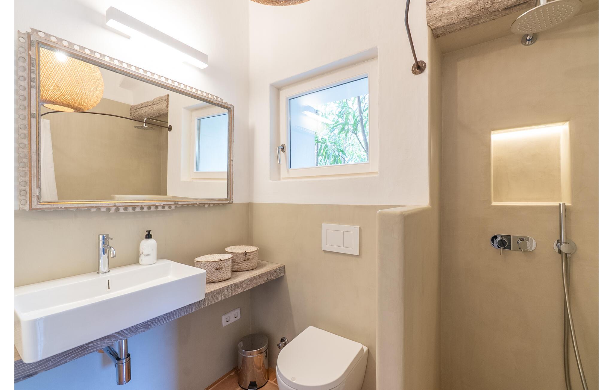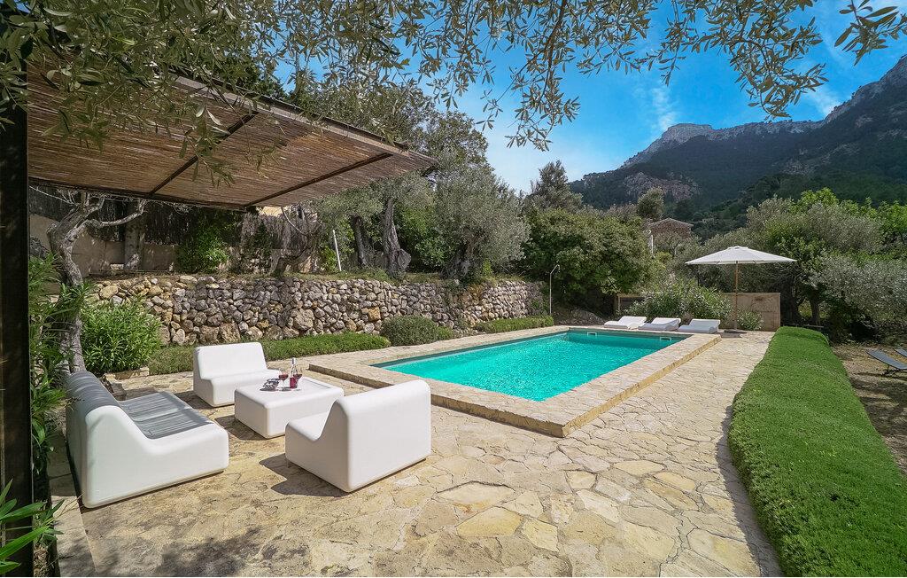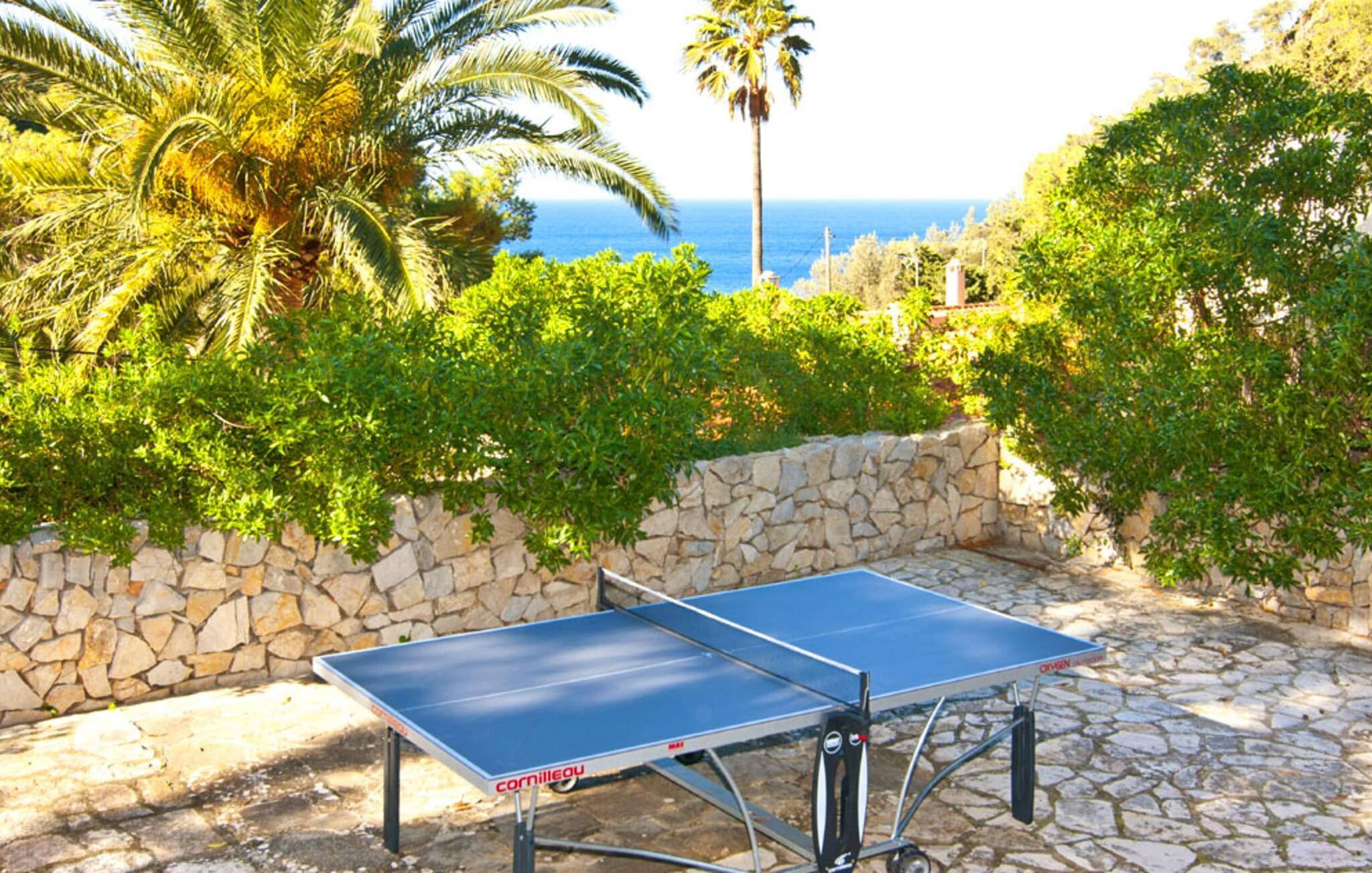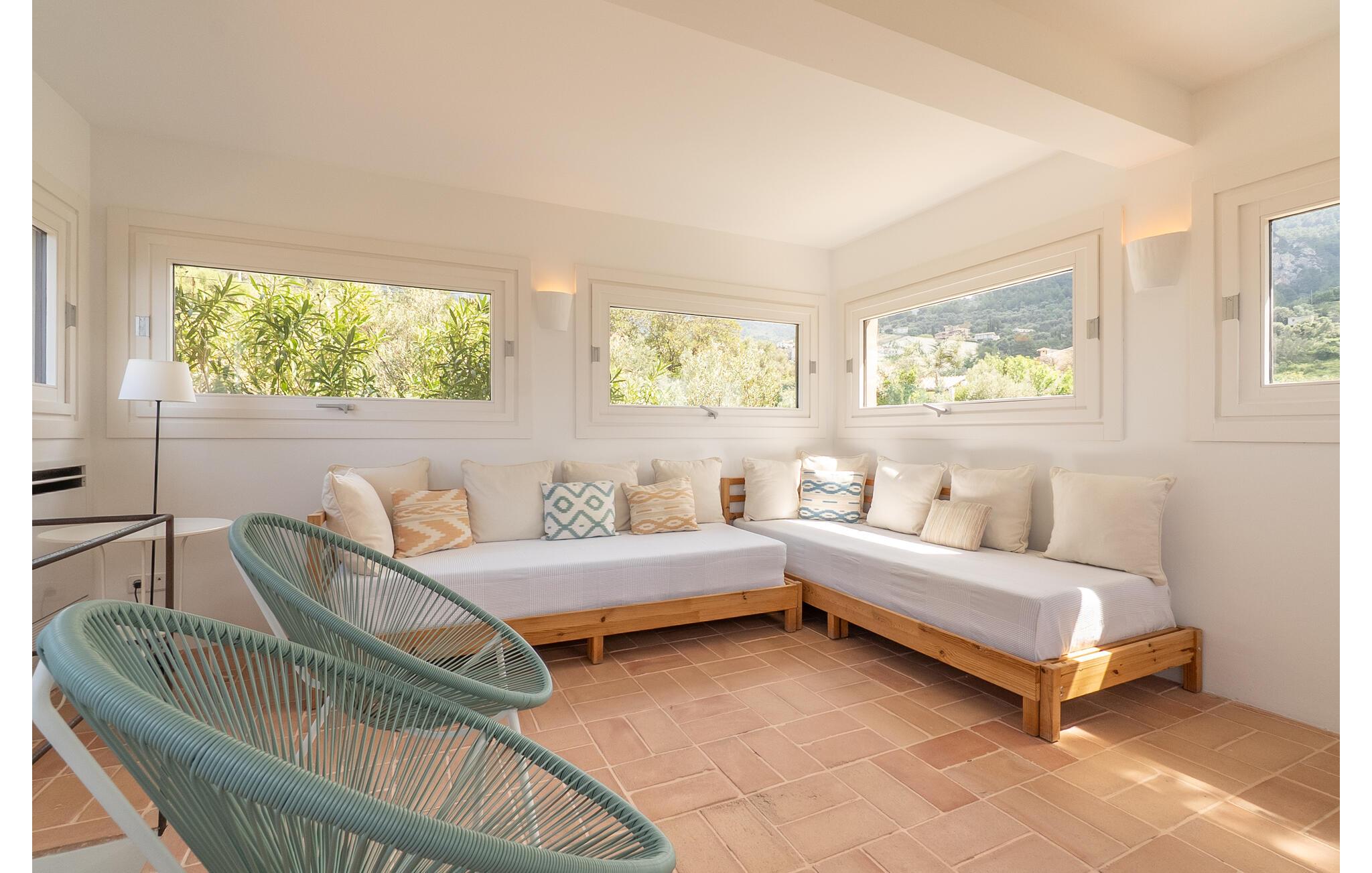 Den typiske stenbrudsvilla "Ana" er beliggende på en fænomenal bjergskråning over Estellencs-bugten, som er meget populær på grund af sit krystalklare vand. Hvis I elsker natur og fred, men stadig gerne vil være lige ved havet og tilbringe jeres ferie med at slappe af, er dette det rigtige sted for jer, vidunderligt indlejret i det smukke landskab. Beliggenheden på en bjergskråning i Tramuntana-bjergene tilbyder villaen beskyttelse blandt ærværdige, store træer. Nyd disse fantastiske omgivelser med udsigt over havet - simpelthen spektakulært. Den magiske naturstensvilla ligger på en meget velholdt og uberørt ejendom. De forskellige terrasser og udendørs opholdsområder indrammet af natursten passer problemfrit ind i omgivelserne, og det smukke villakompleks smelter sammen med naturen. Uanset om I vil spille bordtennis, slappe af ved poolen på en af liggestolene i skyggen af forteltet, sidde ved et af bordene i skyggen af oliventræerne og nyde udsigten over havet og fjerne landskaber - dette villa er fuld af sande steder af velvære. Mens I bruger den udendørs grill til at tilberede en dejlig middag og spise sammen ved bordet på den overdækkede terrasse, kan I virkelig nyde denne stille ferieoase. Interiøret passer perfekt til udendørsområdets vidunderlige naturlige skønhed. I stueetagen finder I en hyggelig stue med pejs, hvor I kan nyde et glas lækker Malvasia-vin, typisk for regionen. Et stilfuldt, hvidt og fuldt udstyret køkken rummer et rundt spisebord; Det er det perfekte sted at lave mad sammen. Der er også to antikke montrer i dette rum, som begge er iøjnefaldende på grund af deres rusticitet. Soveværelserne er særligt hyggelige og har et middelhavsdesign. Et soveværelse er udstyret med en dobbeltseng, det andet soveværelse har to enkeltsenge. Begge badeværelser har et smagfuldt og charmerende design med accenter af guld, marineblå og naturlige stenbrud. Naturelskere kan nyde deres yndlingsaktiviteter og bruge deres tid på at vandre, svømme, snorkle eller sejle, mens de nyder den betagende udsigt over kystklipperne. I kan medbringe et par sandaler, da bugterne har tendens til at være ret stenede under fødderne. Beundre de terrasserede marker ved Estellencs, hvor aromatiske tomater, vin og oliven hovedsageligt dyrkes, mens de maleriske naturstenshuse byder på en idyllisk udsigt. Det rolige centrum af Estellencs eller den nærliggende Banyalbufar er også et besøg værd. Hvorfor ikke nyde nogle lokale specialiteter i en af de gode restauranter eller tapasbarer? Hvis I har en lejebil, skal I være opmærksom på, at mindre biler er mere velegnede til denne region, da nogle af de smalle veje og gader virkelig er hårrejsende smalle og blæsende. Dette naturstenshus "Ana" er indlejret i en romantisk, naturlig ejendom med en sensationel udsigt over havet. En lille, naturlig sti fører jer fra huset gennem en fyrrelund mod bugten "Cala Estellencs", som er særlig populær blandt snorklere. I kan gøre alle jeres indkøb hurtigt og nemt i den nærliggende landsby Estellencs. Der er også nogle meget gode restauranter og barer her. For omfattende shoppingture, tag til Port d'Andratx eller tag en tur til øens hovedstad Palma.