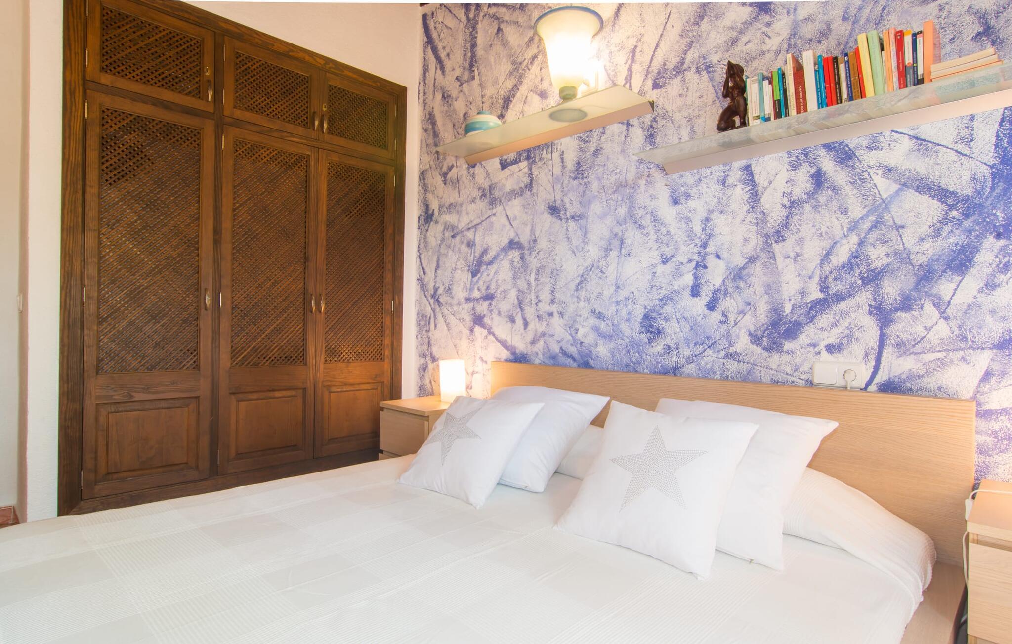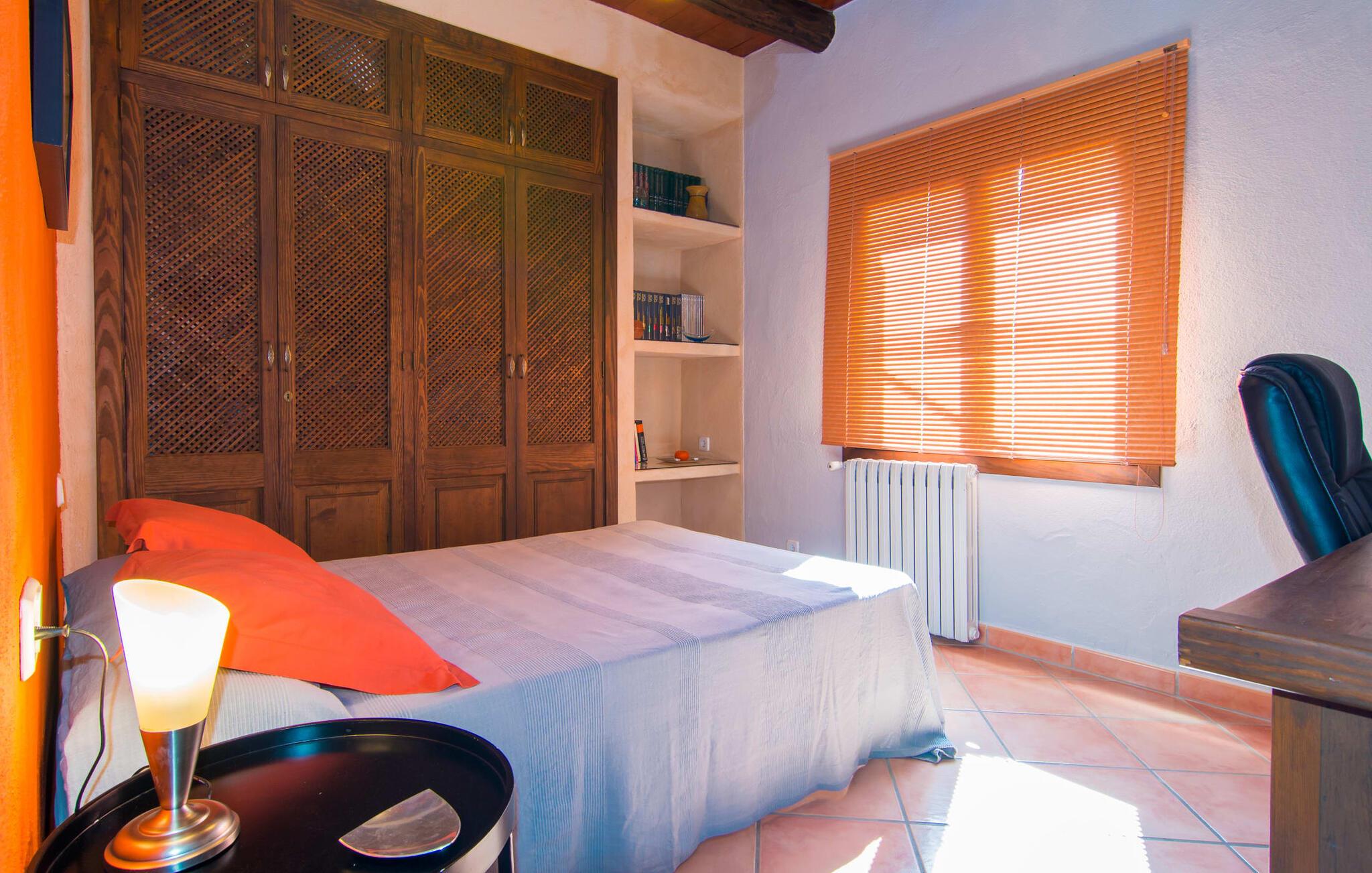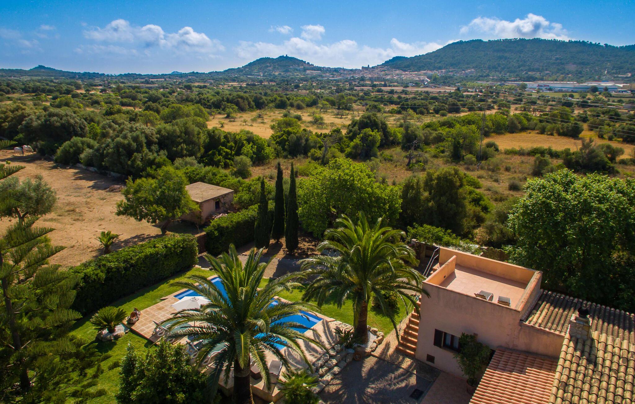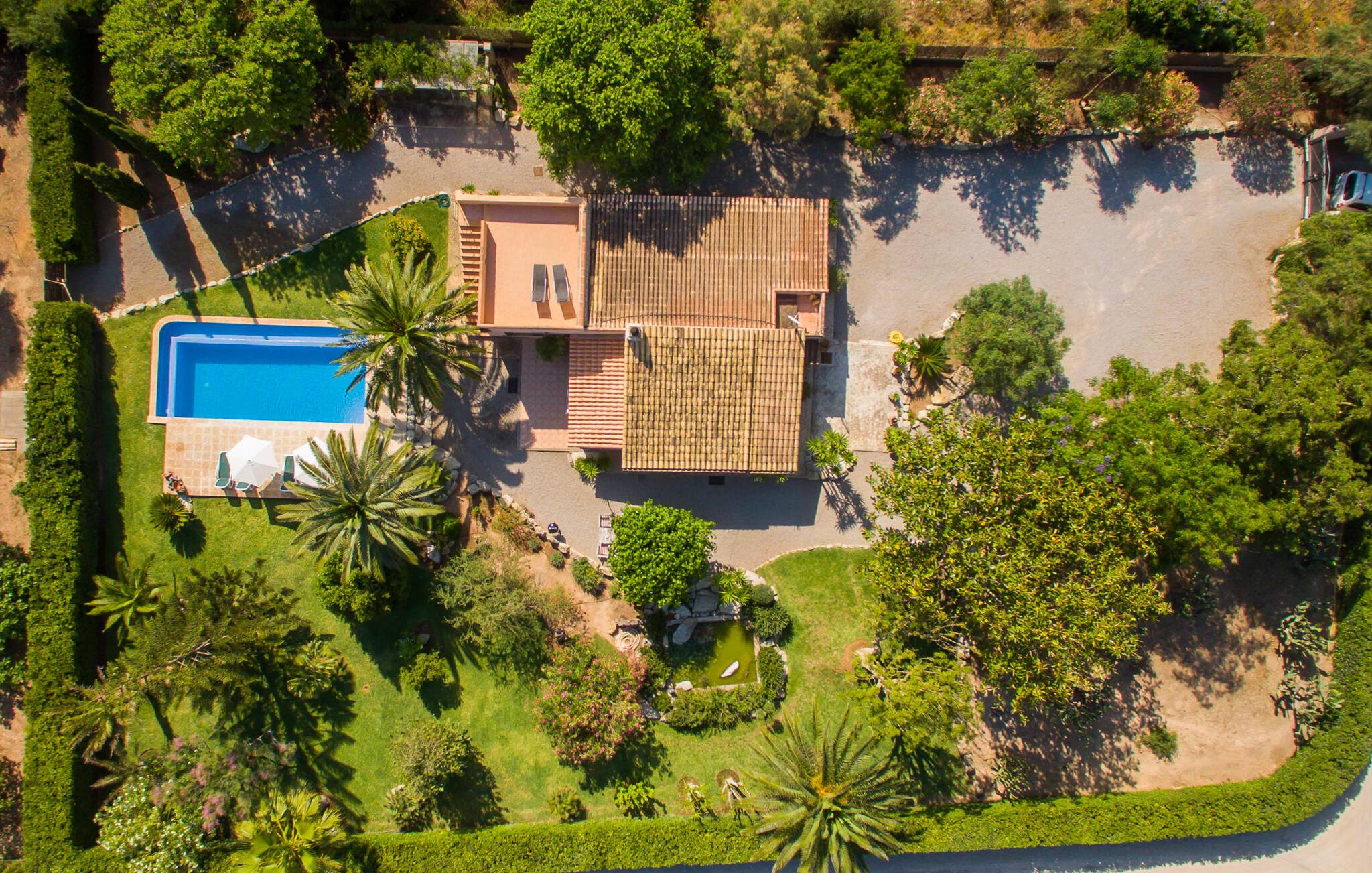 Efter en køretur gennem idyllisk natur når vi Villa "Angela" på en solskinsdag. Efter den venlige velkomst fra ejeren går vi sammen gennem det indbydende, velholdte udendørsområde. Middelhavsplanter af enhver art indrammer de smukke terrasser, hvor I kan slappe af på forskellige måder. Udvalget af vidunderlige grønne områder er afrundet af frodige palmer, der flankerer poolen. Denne er placeret på siden af huset: Fra den overdækkede terrasse går I blot hen over et lille grusareal, tager de tre naturstenstrin og I er der. Den lyseblå flisebelagte pool varierer i dybden mellem behagelige 1,20 og 1,70 m og ser særdeles original ud takket være infinity-effekten på to sider. Når man svømmer i det kølige vand, får man indtryk af, at vandet og dets omgivelser går over i hinanden. Omkring poolen er der græsplæne og terrasseområder, der er perfekte til at slappe af under den klare middelhavshimmel. Snup en god bog og en lækker drink – og indstil jeres indre program til at "slappe af". Nu er det tid til at vælge det bedst egnede sted til liggestolen. Mens nogle lader batterierne op på denne eng, foretrækker andre måske den overdækkede terrasse ved huset og nyder idyllen herfra. I kan sidde behageligt ved det smagfulde bord og læse, nyde en drink eller spille spil sammen. Herfra har I en perfekt udsigt til poolen og eventuelle børn, der rejser med jer. Om aftenen vil nogen måske tænde for grillen og forberede en perfekt BBQ for at afslutte dagen med kulinariske lækkerier. For en endnu bedre friluftsfølelse kan I sidde ved det smukke træbord på sidestensfladen. Herfra kommer vi ind i husets stue. Dette åbne rum med spiseplads og integreret køkken vil helt sikkert være det vigtigste sted for jeres ophold indendørs. Og der er mange ting, I også kan gøre her. Hvis I vil, kan I slappe af i de behagelige sofaer og måske underholde jer selv med en god film. I kan også surfe på internettet med gratis internet eller dele et glimt af jeres ferie med jeres venner derhjemme. Det typiske mallorcanske køkken er fuldt udstyret og tilbyder jer alle muligheder for helt uafhængig selvforplejning. Måske har I lyst til at prøve en spansk ret og derefter servere den - enten ved det enorme spisebord indendørs eller udenfor? Individuelt indrettede værelser er tilpasset forskellige smag og er sikker på at tilbyde den rigtige atmosfære for alle. Inden I skal tegne sugerør til det bedste rum, kan I måske træffe et valg på forhånd ud fra billederne. Der er 3 dobbeltsenge og et værelse hvor man kan trække den anden madras ud. Dette værelse er perfekt til alle børn. Alle gæster har plads nok i de to iøjnefaldende badeværelser samt naturligt lys. En hårtørrer er tilgængelig og behøver ikke at medbringes. Brugen af masser af træ og matchende gulvfliser skaber en meget hyggelig atmosfære, det samme gør brugen af natursten og muntre farver. Typisk indretning giver dette hus et personligt og venligt præg. Kan I lide det mindre, vil I helt sikkert bedst lide det her. Den populære strandby Cala Ratjada ligger kun 10 minutters kørsel derfra og har en malerisk havn og et udvalg af barer og restauranter. De små byer Artà (7 km) og Capdepera har bevaret deres oprindelige middelalderlige charme og skiller sig derfor tydeligt ud fra de nyere turistattraktioner langs kysten. Selv om vinteren byder begge steder på adskillige spise- og indkøbsmuligheder. Når det kommer til strande, kan I prøve en anden hver dag - i denne del af Mallorca vil I altid finde nye strandsteder, hvor I kan lytte til lyden af brændingen væk fra larmende menneskemængder. Den komfortabelt indrettede villa "Angela" ligger på en idyllisk ejendom ca. 2,5 km vest for Capdepera. Oplev en afslappende tid her, væk fra stress og jag. Samtidig er I kun et stenkast væk i bil fra alt, hvad denne del af øen har at byde på, især flere smukke strande. Om aftenen byder havnebyen Cala Ratjada (ca. 6 km) på en indbydende strandpromenade, gode barer og restauranter samt indkøbsmuligheder.
