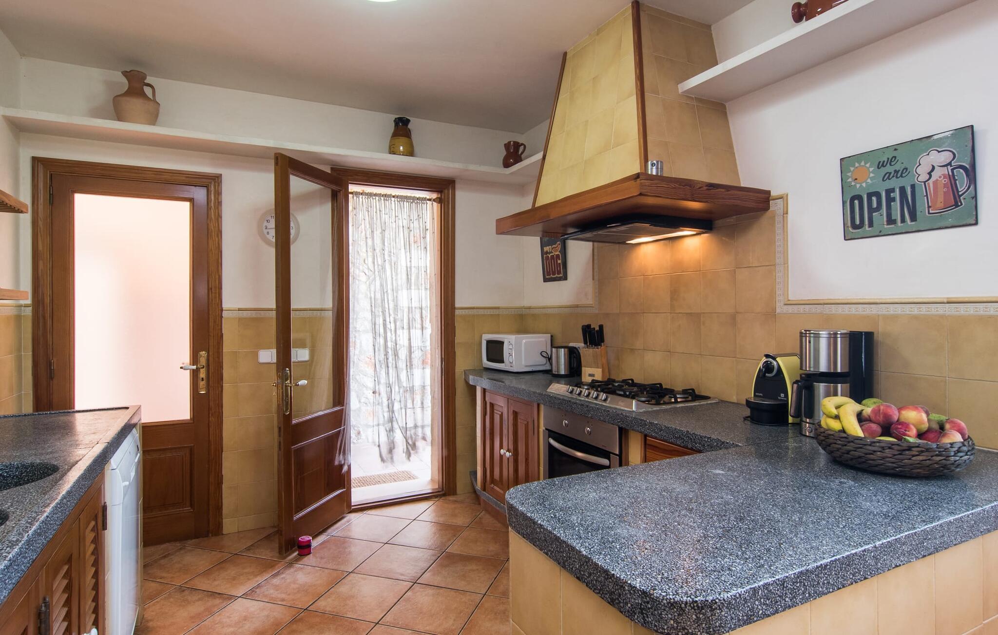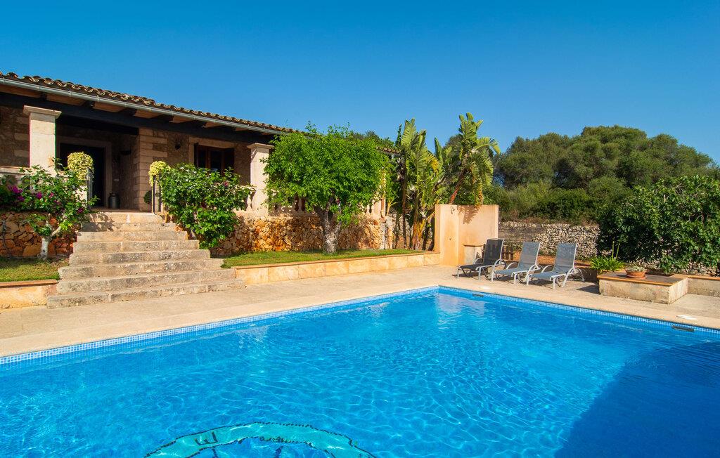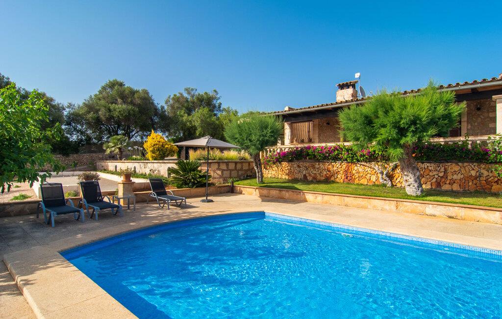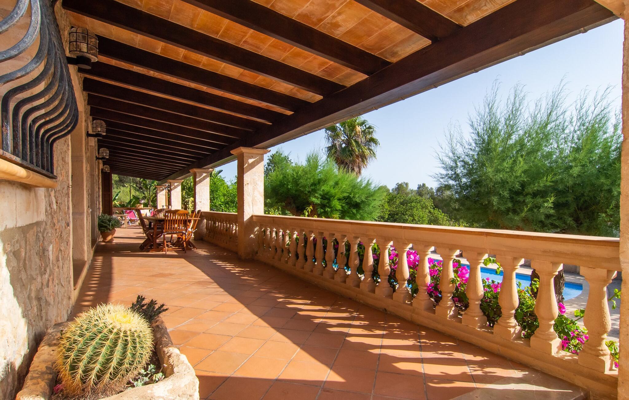 Den smukke ejendom Villa "Arbor", som byder sine gæster velkommen i en naturlig og velholdt atmosfære, kan nås via en rustik landevej. Middelhavsvegetation og omfattende terrassearealer former i væsentlig grad billedet af udendørsområdet og formidler umiddelbart en følelse af komfort og afslapning. Indbydende møbler er tilgængelige til afslapning eller spisning på de åbne og overdækkede terrasseområder. Når vejret er godt, kan I nemt spise udendørs når som helst på dagen og nyde den fantastiske udsigt i det fjerne over morgenmaden. Den enorme, 11 m lange pool varierer i dybden mellem 0,3 og 1,8 m. Her kan I nyde solen hele dagen lang på de moderne liggestole. Dette udendørs område tilbyder også en fantastisk udsigt over det indre af øen. På græsplænen ved siden af poolen er der træer, der giver skygge og inviterer jer til at slappe af, mens I nyder en behagelig brise. Carporten er unikt indrettet til udekøkken med kulovn. Her kan I fejre aftengrill og nyde lækre egnsprodukter i godt selskab. Den næste gade er lige Villanweg, som fører til en anden nabo. Når nogen går ned ad denne gade, kan der høres en lyd. Bortset fra det er der dog en fuldstændig følelse af fred og ro her. Det indre af huset i stueetagen præsenterer sig i en munter og elegant stil. Lyse vægge og terracottafarvede fliser danner en harmonisk ramme om den hyggelige indretning, belysning og dekoration. I højre halvdel af huset er de fire soveværelser og badeværelserne, til venstre for indgangen er der en rummelig stue/spisestue og et separat køkken med spisebord. På forsiden af huset er den overdækkede terrasse med udsigt over poolen. Sofaområdet har to yderst behagelige sofaer, der inviterer jer til at slappe af. På kølige aftener kan I sørge for yderligere hygge ved hjælp af åben ild. Fjernsynet med satellitmodtagelse giver underholdning, når det kræves. De runde murstensbuer skaber en rustik, individuel atmosfære. I kan spise sammen indendørs ved spisebordet ved siden af. Køkkenet er bekvemt placeret lige ved siden af, så I ikke skal rejse lange strækninger med jeres mad. Køkkenet er udstyret med alt hvad I behøver til daglige behov, herunder en kedel, en espressomaskine og en filterkaffemaskine. De fire soveværelser er komfortabelt designet. Unødvendige dekorationer blev bevidst undgået, så disse rum udstråler en afslappende effekt. I vil finde afslappende søvn i komfortable senge, hvoraf to er 1,50x1,90m og de to andre er 2,00x2,00m. Myggenet er tilgængelige og kan bruges om nødvendigt. De to badeværelser med naturligt lys er rummelige og hver udstyret med bruser eller badekar. Strygefaciliteter og hårtørrer er tilgængelige på stedet. Manacors centrum ligger kun 5 minutter væk i bil. Det ugentlige marked finder sted der hver mandag, hvor I kan købe friske regionale produkter. Nogle strande i nærheden er rigtige insidertips og fri for udvikling. Porto Cristo ligger cirka 14 km væk. Der finder I en smuk strand med lavvandet adgang til havet. Her er også en attraktiv promenade. Efter en begivenhedsrig dag fuld af aktiviteter, kan I vende tilbage til den vidunderlige idyl i jeres "Arbor"-villa og afslutte dagen, lige som I ønsker det. Den meget idylliske villa "Arbor" ligger i den smukke østlige del af øen, kun 3 km nord for Manacor. I finder gode indkøbsmuligheder både der og i Sant Lllorenc (9 km væk). En meget velholdt og rustik atmosfære præger denne ejendom, samt den vidunderlige fjerne udsigt, som I kan nyde her. En af de nærmeste smukke strande er Cala Varques, som ligger omkring 15 km væk.