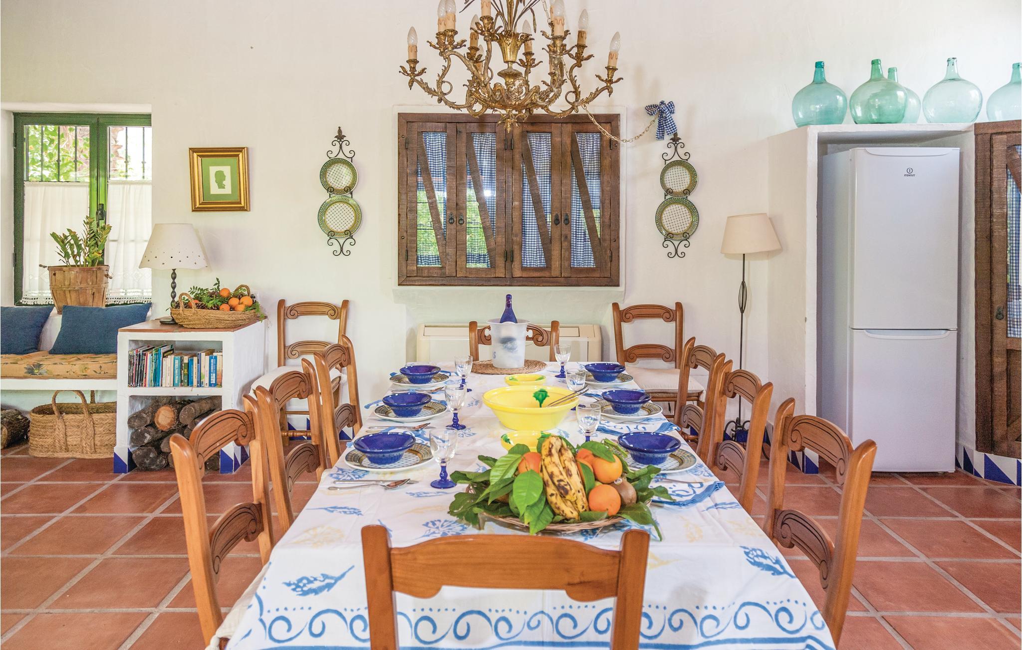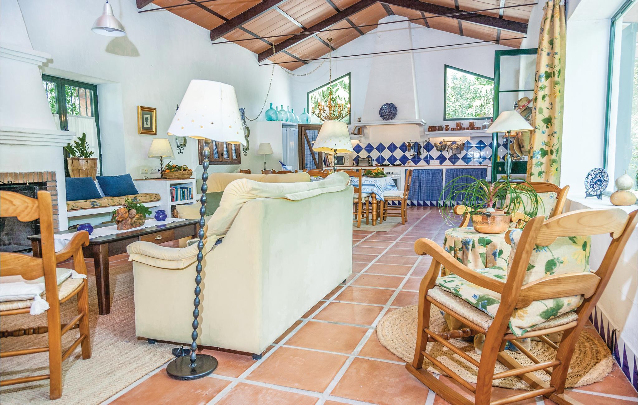 Midt i et skønt landskab ligger dette fine feriehus i en naturligt anlagt have, hvor I kan slappe af og grille når mørket falder på. Floden Majaceite flyder gennem den skønne Naturpark Sierra de Grazalema ligesom de to søer Bornos og Arcos de la Frontera er dejlige udflugtsmål. Den betagende gamle bydel i Arcos de la Frontera er bestemt også en køretur værd. Byen ligger imponerende på en klippe med sin smukke gamle bydel og de mange seværdigheder fra Andalusiens mauriske fortid. Tilbring en dejlig ferie med hele familien i en autentisk egn hvor I samtidig kan fordybe jer i Andalusiens fremragende gastronomiske udbud.