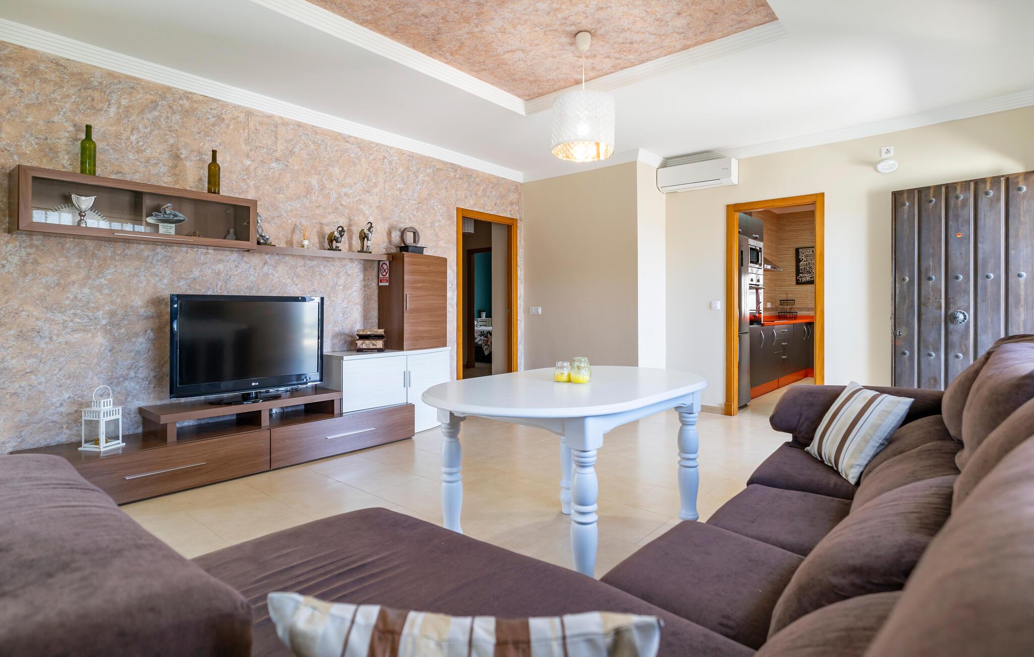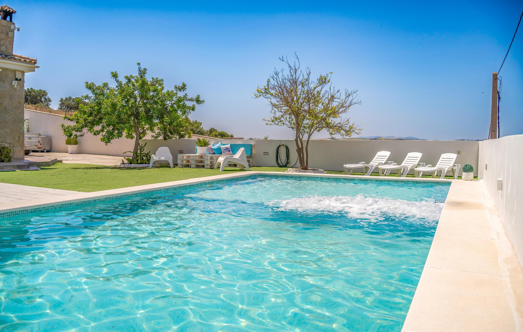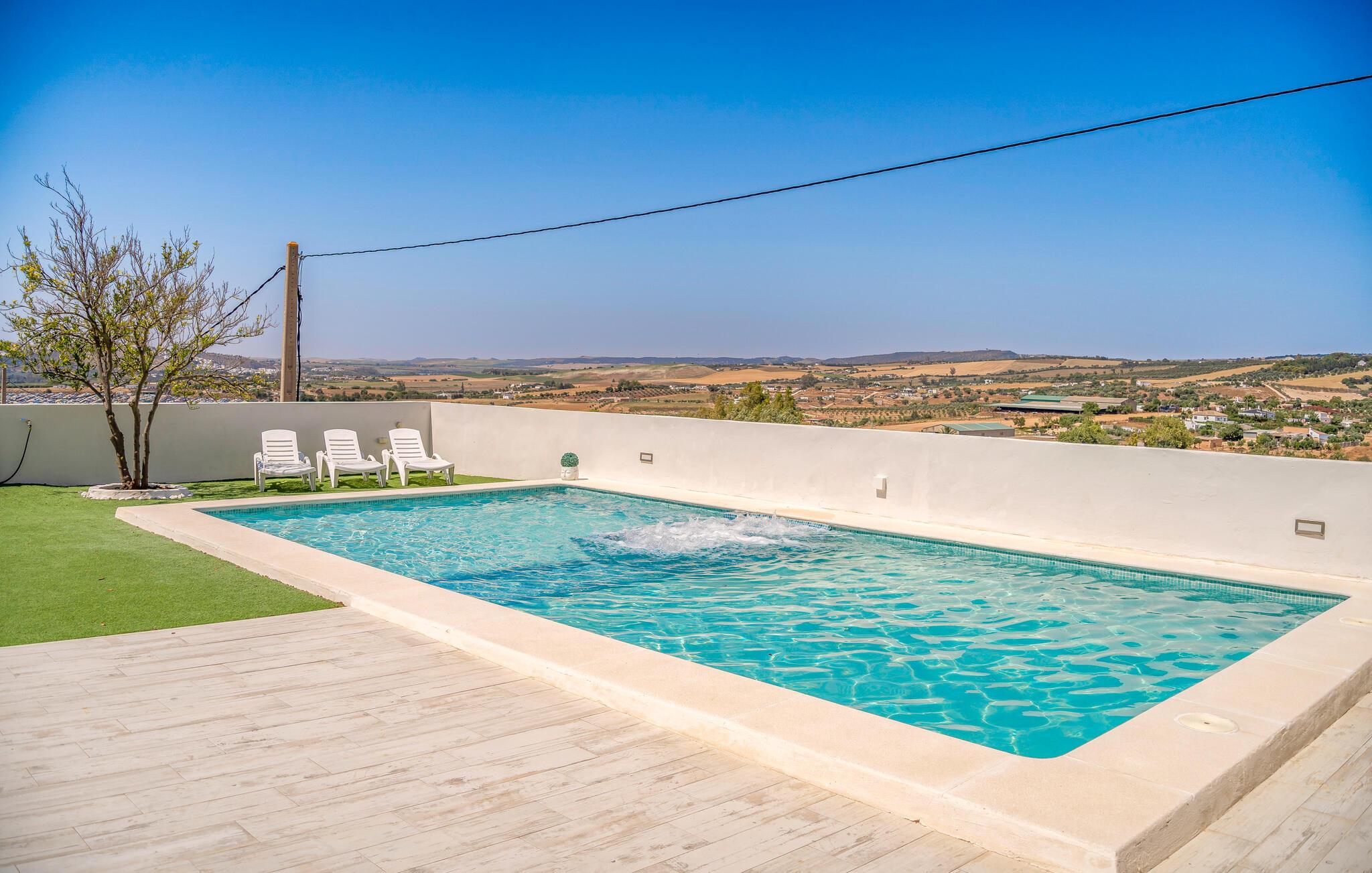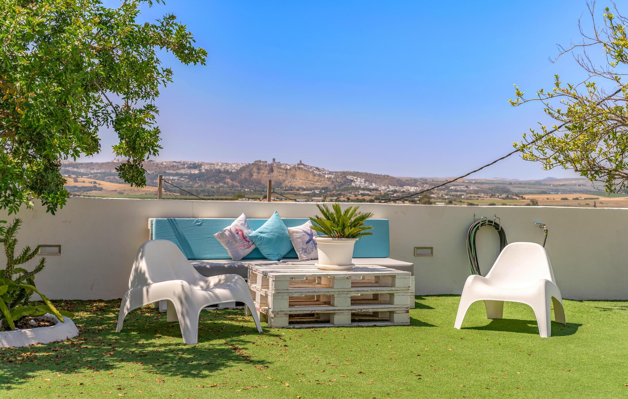 Begynd dagene med en frisk dukkert i den rummelige pool og nyd solen på den indbydende terrasse. Udsigten over det maleriske landskab i Arcos de la Frontera vil helt sikkert få jer til at slappe af. Læn jer tibage i spabadet og læg hverdagens stress bag jer. Nyd den landlige idyl og forkæl jer selv med en pause fra den hektiske hverdag. Der er også et bordtennisbord til rådighed udenfor. En perfekt mulighed for at dyrke motion og hygge med familien. Den overdækkede udendørs spiseplads lægger op til fælles måltider, mens grillen giver mulighed for at slutte dagen af ??i godt selskab om aftenen.