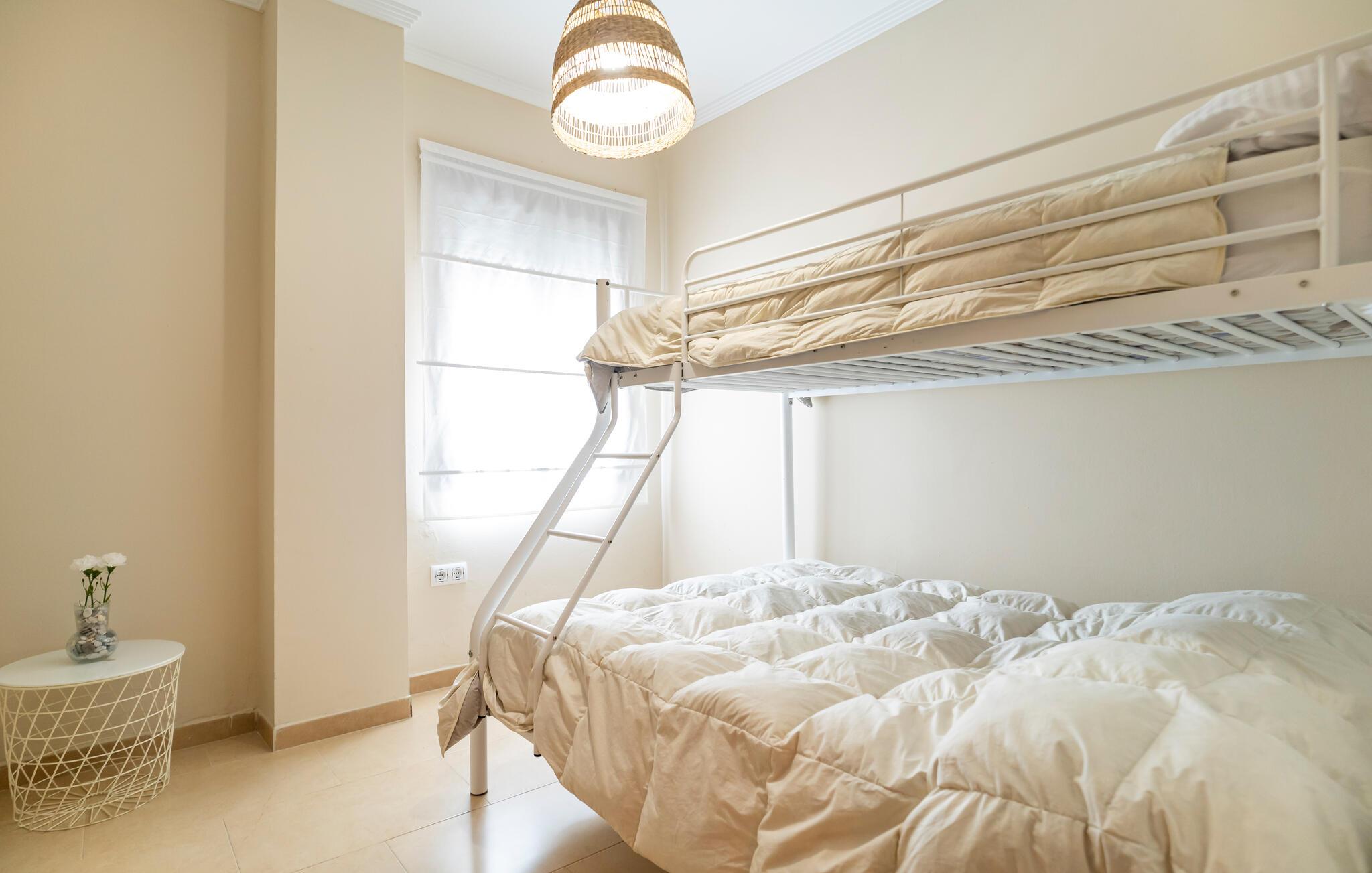 Soveværelse 15m2 (nr. 2) - 2 Sovepladser. (Dobbeltseng(e)). 1 Soveplads. (Etageseng(e)).