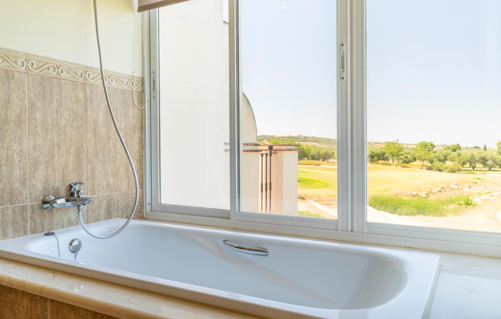 Tilbring en solrig ferie i dette komfortable feriehus med privat pool. Velkommen til dette smagfuldt indrettede rækkehus, hvor I kan lade hverdagen forsvinde i det fjerne med familie eller venner. Fremtryl lækre måltider, sæt jer ved det indbydende spisebord og nyd den hyggelige atmosfære. Efter en lang dag kan I slappe af i de behagelige sofaer og streame en film. Om morgenen kan I svømme i den store pool og fordybe jer i jeres ferielæsning på liggestolen. Server en lækker morgenmad på den skyggefulde terrasse og sludr natten lang over et glas vin på lune sommeraftener. Slentr gennem de snoede gader i den mauriske gamle bydel Arcos de la Frontera og udforsk hvidkalkede landsbyer som Grazalema, Zahara de la Sierra eller Setenil de las Bodegas, der imponerer med sine huse hugget ind i klippen. Smag sherry direkte fra fadet i Jerez de la Frontera eller oplev Cádiz på en dagstur.