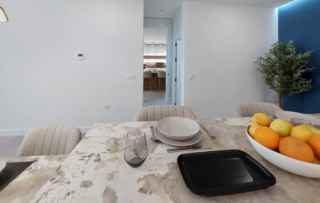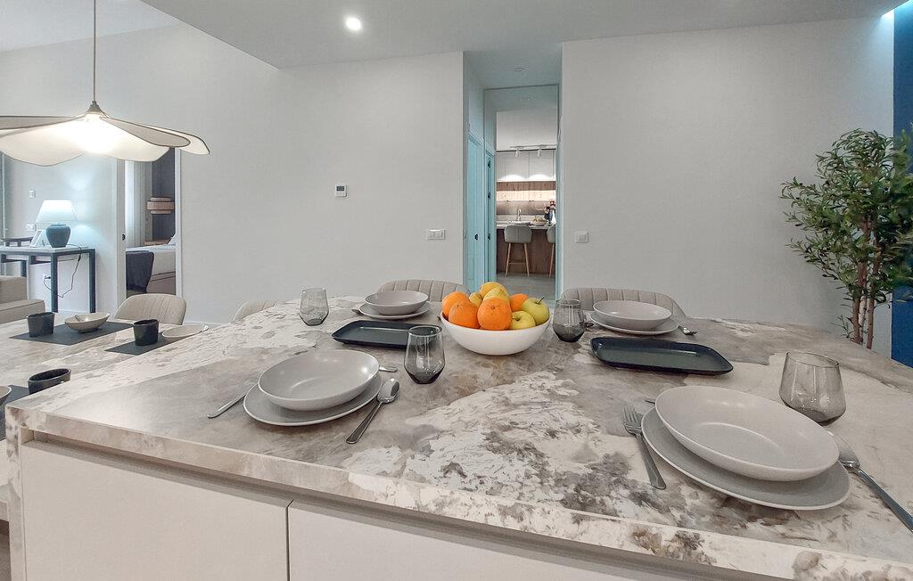 Denne lejlighed er perfekt til at undslippe hverdagens travlhed. En komfortabel sofa lægger op til at tilbringe hyggelige timer med at snakke eller nyde en filmaften sammen. I det moderne, fuldt udstyrede køkken kan I tilberede lækre måltider til jer selv og familien, som I kan servere med et glas vin. Uanset om I lytter til musik eller bare slapper af, glider I hurtigt ind i ferietilstand her.