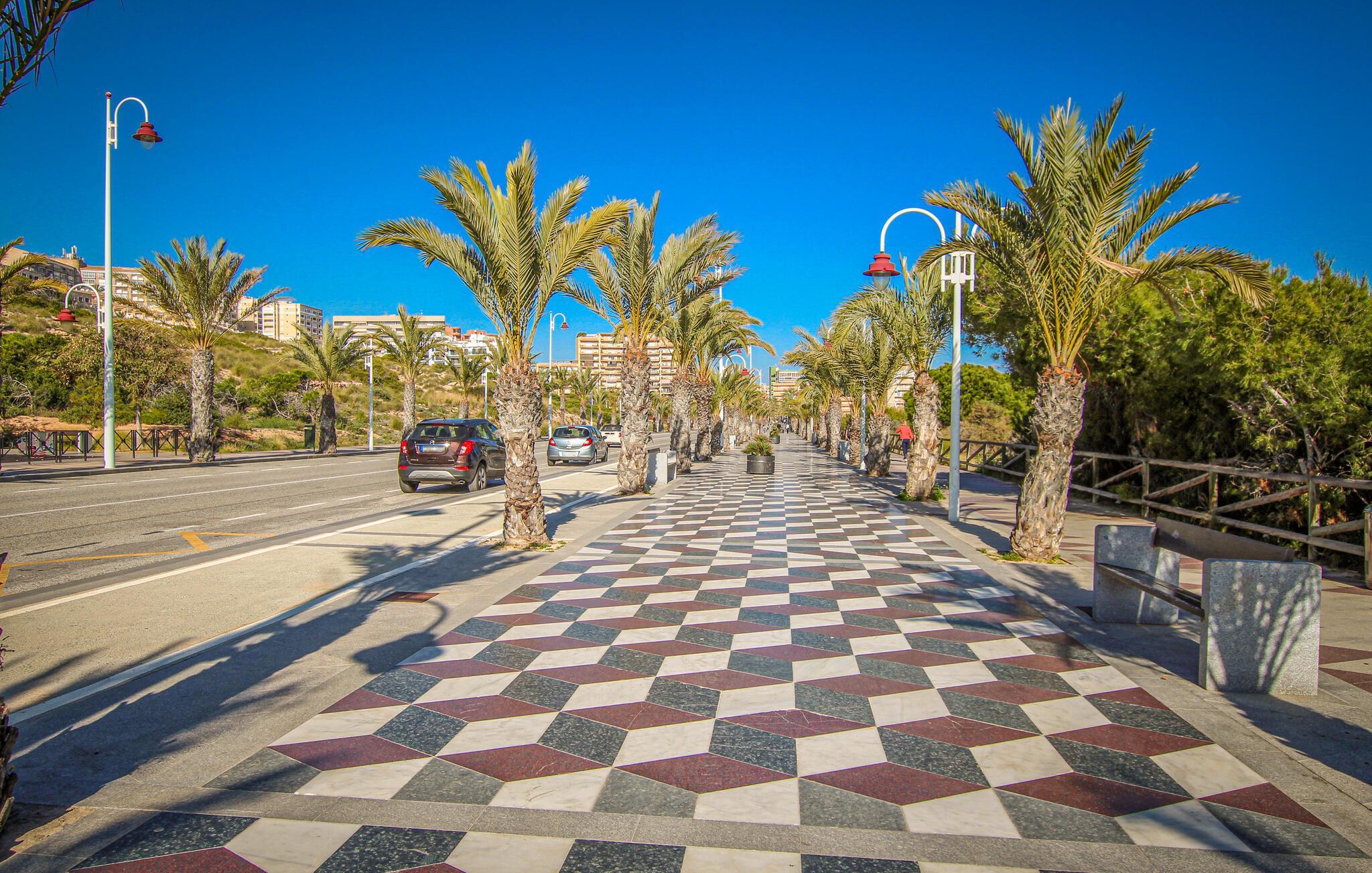 Arenales del Sol giver jer de perfekte rammer for en varieret ferie. Den brede sandstrand ligger kun en kort gåtur væk og lover afslappende badedage for hele familien. For naturelskere er det oplagt med en udflugt til de nærliggende naturreservater, som Salinas de Santa Pola, hvor I kan opleve flamingoer og andre fuglearter. Den livlige by Alicante er også tæt på og byder på kulturelle højdepunkter, en historisk bydel og den imponerende borg Santa Barbara.