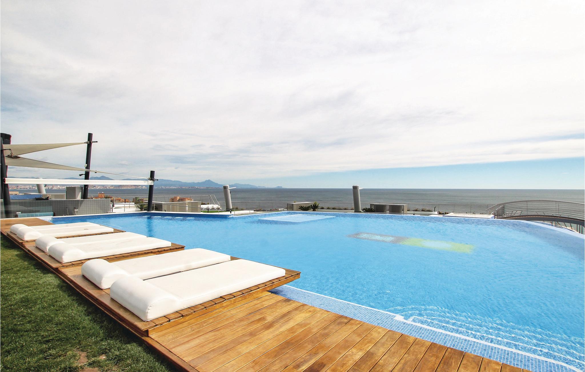 Denne luksuøse ferielejlighed ligger i den eksklusive bebyggelse Arenales del Sol ved Costa Blanca, kun 350 m fra den skønne sandstrand. I boliganlægget er der tre whirlpools, en pool med varmt vand, fitnessområde, sauna, legeplads, tennis- og paddlebane, sportscentrum, cafeteria og en fantastisk udsigt over havet. Den elegante lejlighed er komfortabelt udstyret, bl.a. med en stor terrasse, som sikrer jer en uforglemmelig dejlig ferie. På 66 smagfuldt indrettede m² er der god plads til op til fem heldige feriegæster. På de herlige sandstrande kan I slappe af og dyrke mange former for vandsport i havet – smag på regionens lækre gastronomi på en af de mange gode restauranter i nærheden.