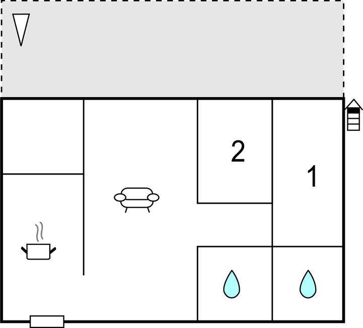 Opholdsstue/køkken - 1 Soveplads. (Sofa, madras eller lignende).