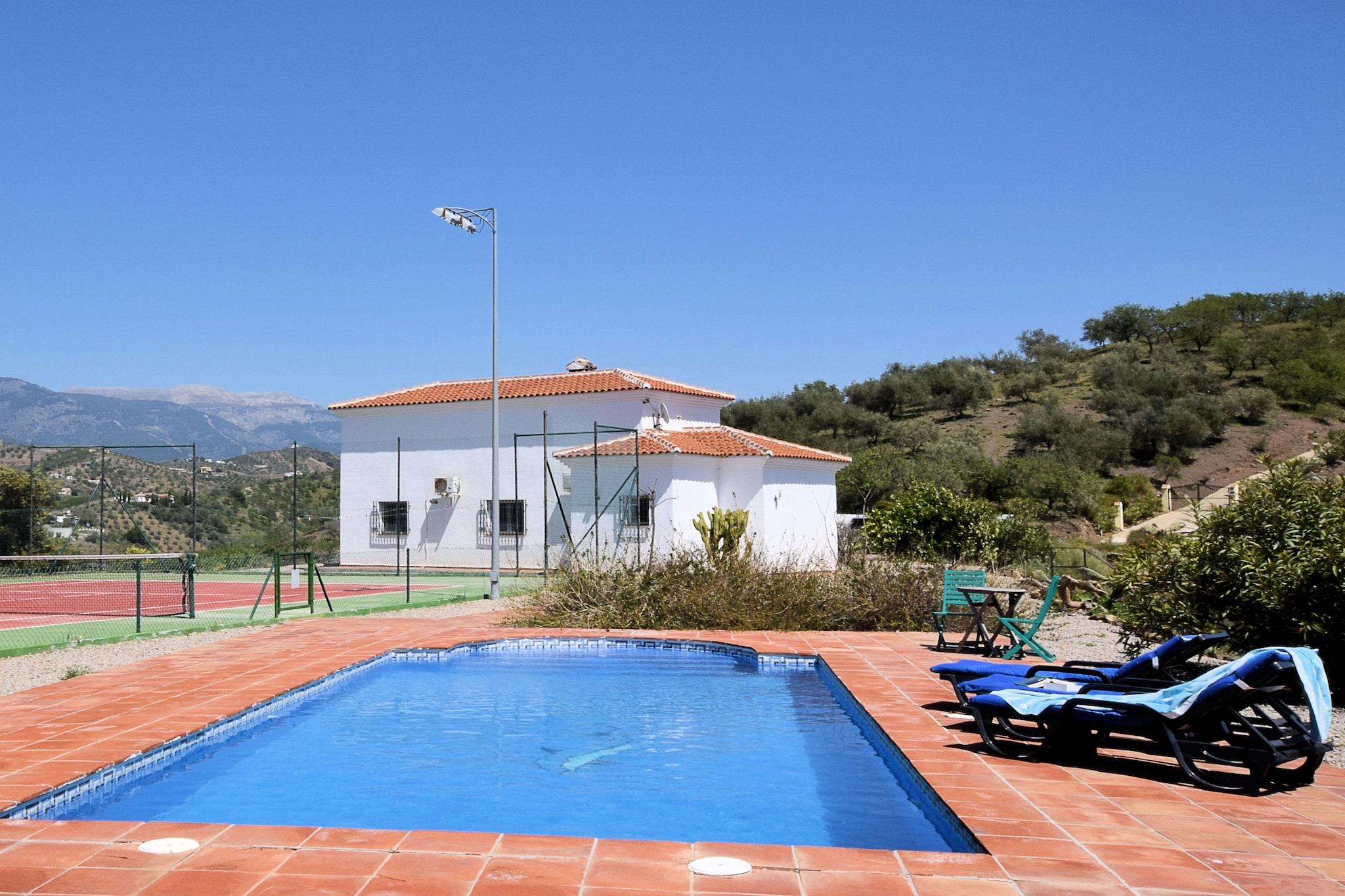 Privat Pool Villa Dette fritliggende feriehus lige udenfor Arenas tilbyder plads, privatliv og komfort for familier eller venner. Villaen har 5 soveværelser med en-suite badeværelser, et fuldt udstyret åbent køkken, opholds- og spisestue med tv, stereoanlæg og pejs, plus aircondition og gulvvarme. Udendørs kan du nyde en privat 10x5 m swimmingpool, have med møbler, terrasser til BBQs og en tennisbane. Parkering er tilgængelig på stedet, og kæledyr er velkomne, hvilket gør det ideelt for lodne ledsagere at deltage i det sjove. Udforsk udendørs Ejendommen er omgivet af bjerge og udsigt over Middelhavet og giver nem adgang til vandreture i naturen, vandrestier og naturskønne køreture. Kæledyrsejere kan udforske nærliggende stier og haver, hvor hunde er velkomne. Torre del Mars børnevenlige strande ligger kun en kort køretur væk, mens kulturelle dagsture til Vélez-Málaga, Málaga by eller kystbyerne byder på sightseeing, shopping og historiske oplevelser. Familier kan nyde palme- og olivenlunde omkring villaen, der kombinerer afslapning med udendørs eventyr. Lokale bekvemmeligheder Landsbyen Arenas (2 km) byder på et bageri, et supermarked, et apotek og 3 lokale restauranter. Vélez-Málaga (8 km) tilbyder større supermarkeder, spisning og væsentlige tjenester. Málaga Lufthavn ligger 40 minutters kørsel derfra, hvilket sikrer nem adgang. Med privat pool, terrasser, have og kæledyrsvenlige rum tilbyder denne villa en behagelig base for at nyde Andalusiens natur, kultur og middelhavskyst.
