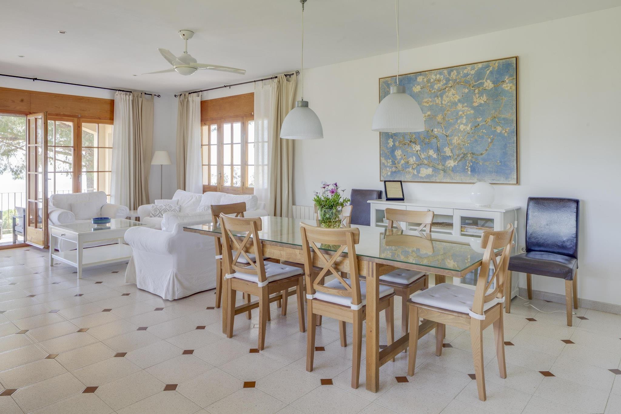 Villa med swimmingpool og smuk udsigt over havet. Denne villa har 4 soveværelser, så den kan rumme i alt 8 personer. Villaen er ideel til solferier med større familier. Ferievillaen ligger i gåafstand fra stranden i Arenys de Mar, hvor du kan tilbringe en dejlig rolig dag på dit håndklæde. Denne by er kendt for sin fiskerihavn, der er anerkendt som den vigtigste i Catalonien, hvor auktionen over friskfanget fisk finder sted hver aften. Et bredt udvalg af restauranter i havnen tilbyder førsteklasses fisk og skaldyr og andre typiske retter fra området. I stueetagen finder du en kombineret stue og spisestue, et fuldt udstyret køkken, et soveværelse med dobbeltseng og et badeværelse. På 1. sal finder du et soveværelse med dobbeltseng, badeværelse og en privat terrasse med meget smuk havudsigt. Valgfri forsynings- & servicepakke