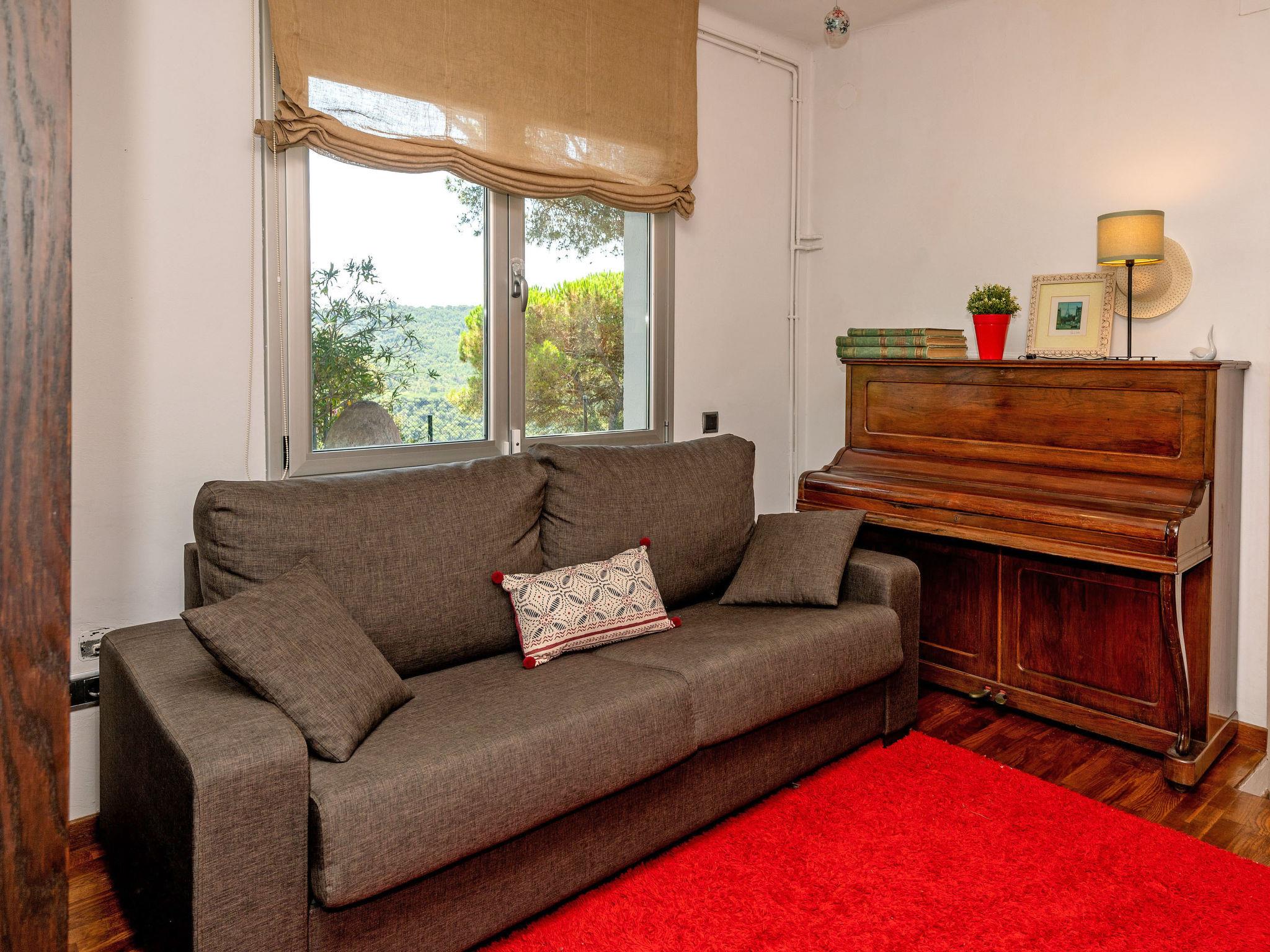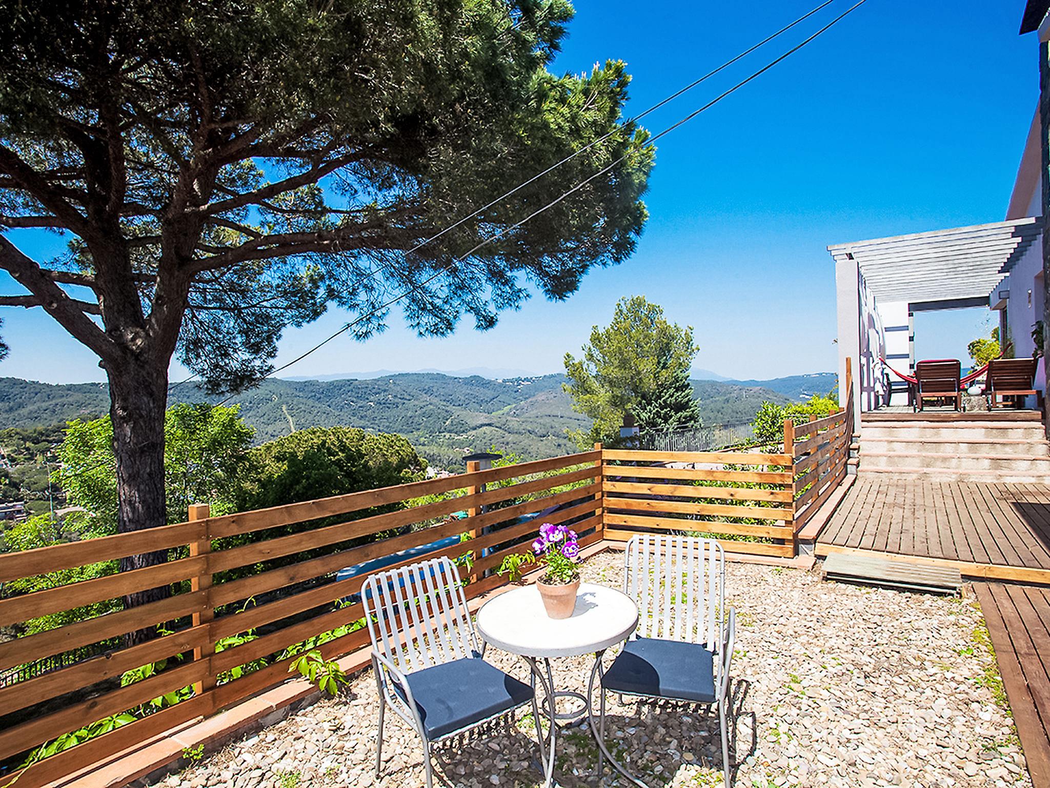 Modern, beautiful house "Ginesteres". Outside the resort, 3 km from the centre of Argentona, in a quiet position on a slope, 7 km from the sea, 7 km from the beach. Private: property (fenced), terraced garden, natural garden, swimming pool kidney shaped (12 x 4 m, depth 100 - 250 cm, seasonal availability: 01.Jun. - 30.Oct.). Stepped path (14 steps) to the house. Bus stop "Les Ginesteres" 900 m, railway station "Mataró" 8 km. Nearby attractions: Barcelona 34 km, Serralada del Litoral, La Roca Village 11 km, Costa Brava 46 km, Aquapark 9 km. Hiking paths: Serralada del Litoral 200 m. Please note: car recommended. The owner does not accept any youth groups. Neighbourhood highly sensitive to noise. Quietness and good behaviour expected. On the lower level of the plot there is a small apartment with private entrance and the main apartment is on an upper level of the land without a view to the house.