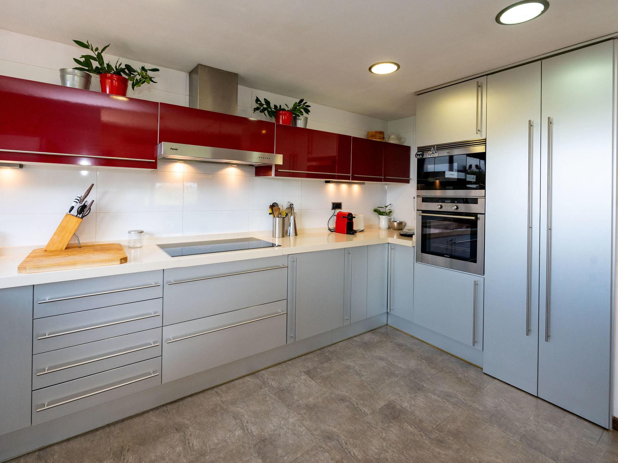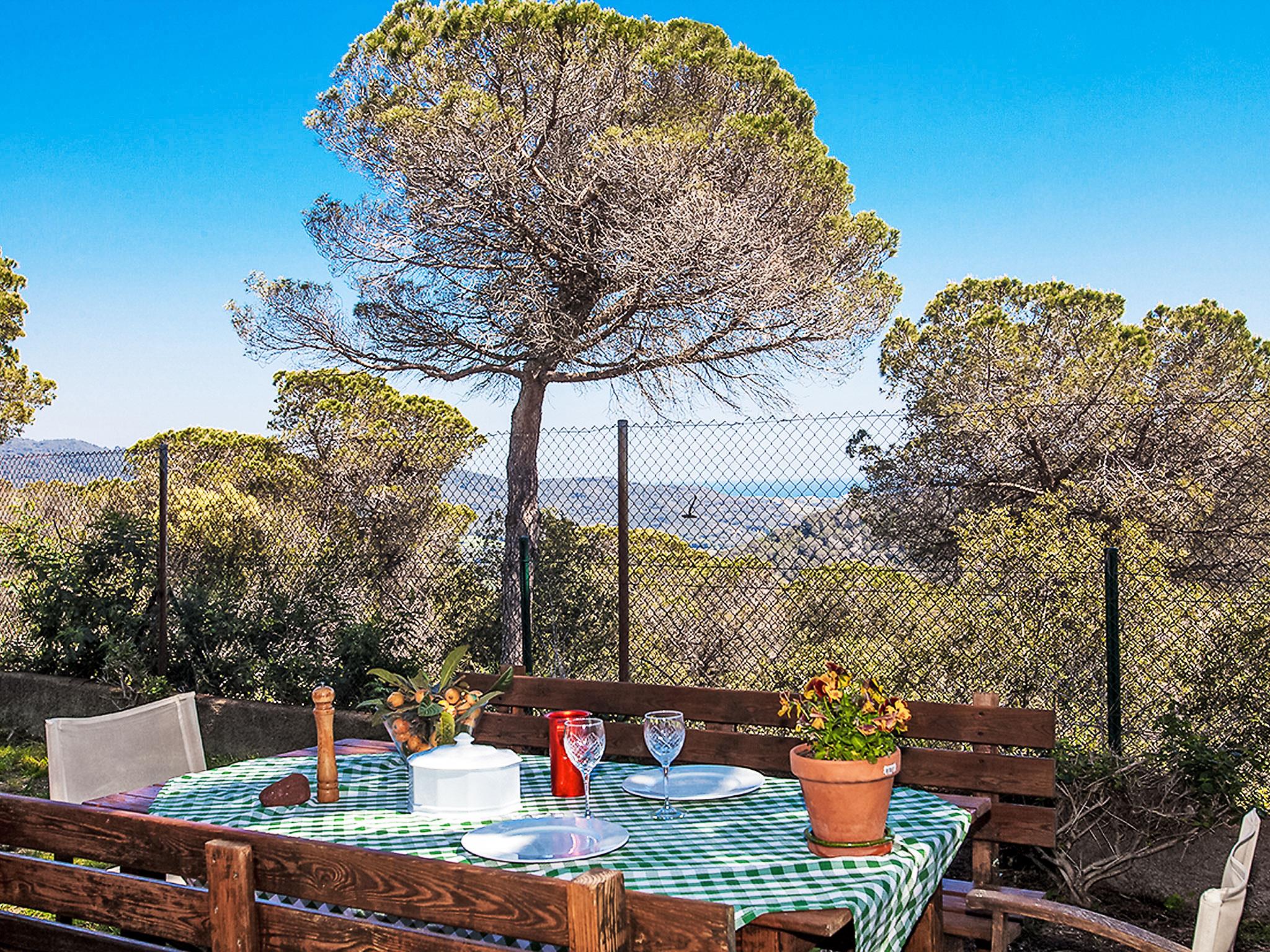 3-room house 180 m2. Spacious and bright, tasteful and cosy furnishings: large living/dining room with open-hearth fireplace and TV. Exit to the terrace. 1 room with 1 bed and 1 x 2 bunk beds. Walk-through room, open with 1 double sofabed. Kitchen (oven, dishwasher, 4 ceramic glass hob hotplates, microwave, freezer, electric coffee machine) with dining table. Shower/WC. Heating. On the lower ground floor: 1 room with 1 french bed and bath/WC. Terrace furniture, barbecue, deck chairs (4), covered balcony. Marvellous view of the sea, the mountains and the countryside. Facilities: washing machine, iron, hair dryer. Internet (WiFi, free). Please note: suitable for families. Non-smoking house. HUTB015874 // Reg. Nr.: ESFCTU000008096000024735000000000000000000HUTB0158746