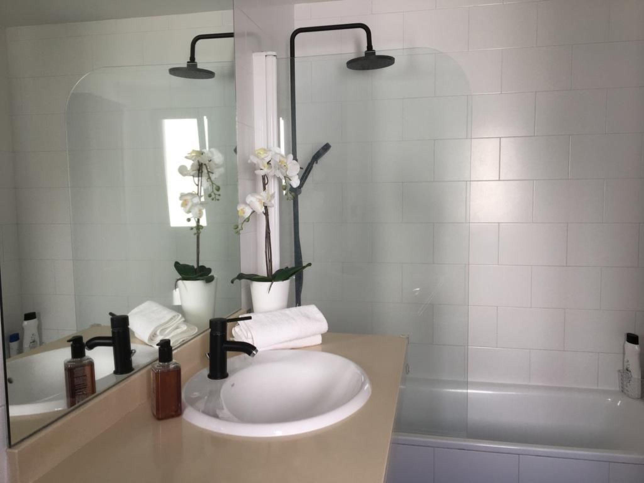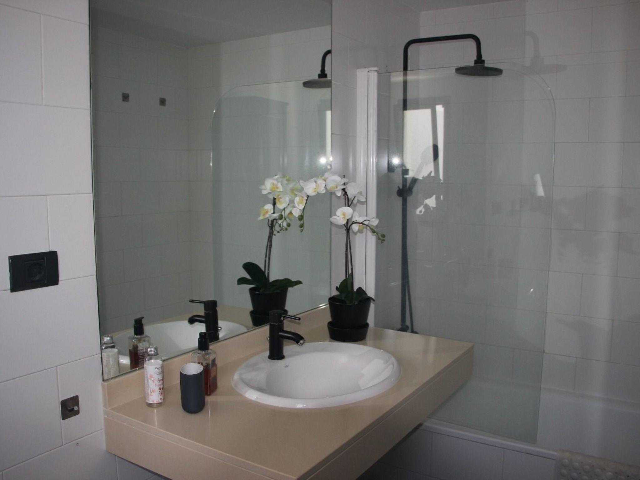 The apartment complex is fenced with access via an automated gate. A covered garage is included with a lift connecting to the flat floor and the complex's swimming pool. The shared pool is heated and the sun terrace is equipped with sun loungers and a shower.