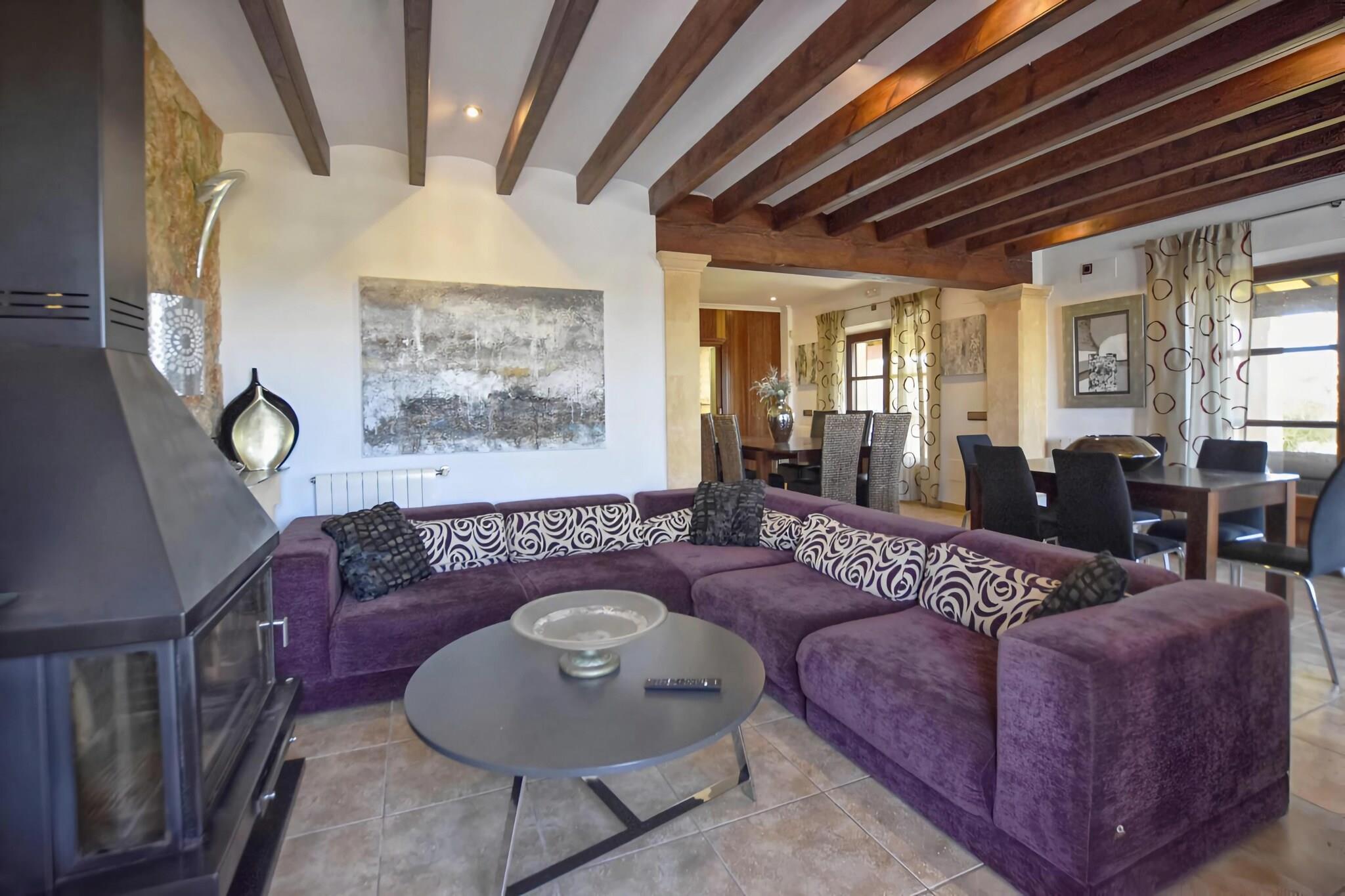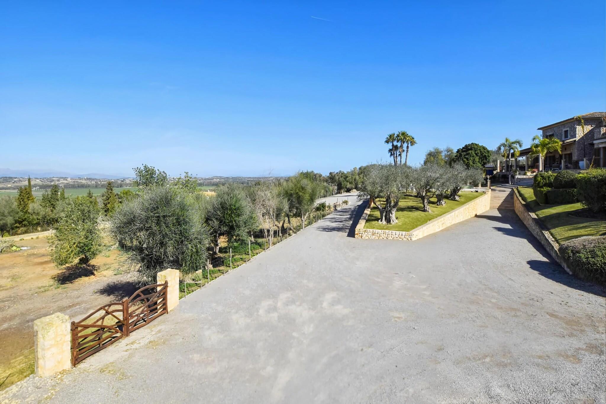 Elegant Countryside Escape Beliggende på en fredfyldt ejendom nær Ariany, tilbyder dette rummelige landsted en unik balance mellem komfort og stil. Huset strækker sig over 400 m² og har otte soveværelser med dobbeltsenge, seks badeværelser - to med hydromassage-brusere og badekar - en stor stue og spisestue med pejs og et fuldt udstyret moderne køkken. Omhyggeligt dekoreret med elegante møbler skaber interiøret en indbydende atmosfære til sammenkomster, mens terrasser og verandaer udvider boligarealet ud i det fri. Private haver og udsigt Huset er omgivet af anlagte haver, skyggefulde terrasser og en privat pool med udsigt over landskabet og bjergene. Gæsterne kan slappe af på liggestolene, nyde udendørs spisning ved grillen eller se solnedgangen fra verandaen. De rolige omgivelser gør det nemt at afbryde forbindelsen, men dens nærhed til Ariany betyder, at caféer, bagerier og lokale butikker er kun få minutter væk. Strande såsom Can Picafort og Son Serra de Marina er kun en kort køretur, der byder på gyldent sand og middelhavsvand. Spisning og lokalliv Ariany og nærliggende landsbyer fremviser autentisk mallorcansk spisning, fra familiedrevne restauranter, der serverer paella og tapas, til rustikke spisesteder, der fremhæver årstidens råvarer fra øerne. For større variation tilbyder kystbyerne Santa Margalida og Artà livlige markeder og traditionelle bagerier. Palma, knap en time væk, inviterer til udforskning med sine historiske gader, livlige restauranter og kulturelle vartegn.