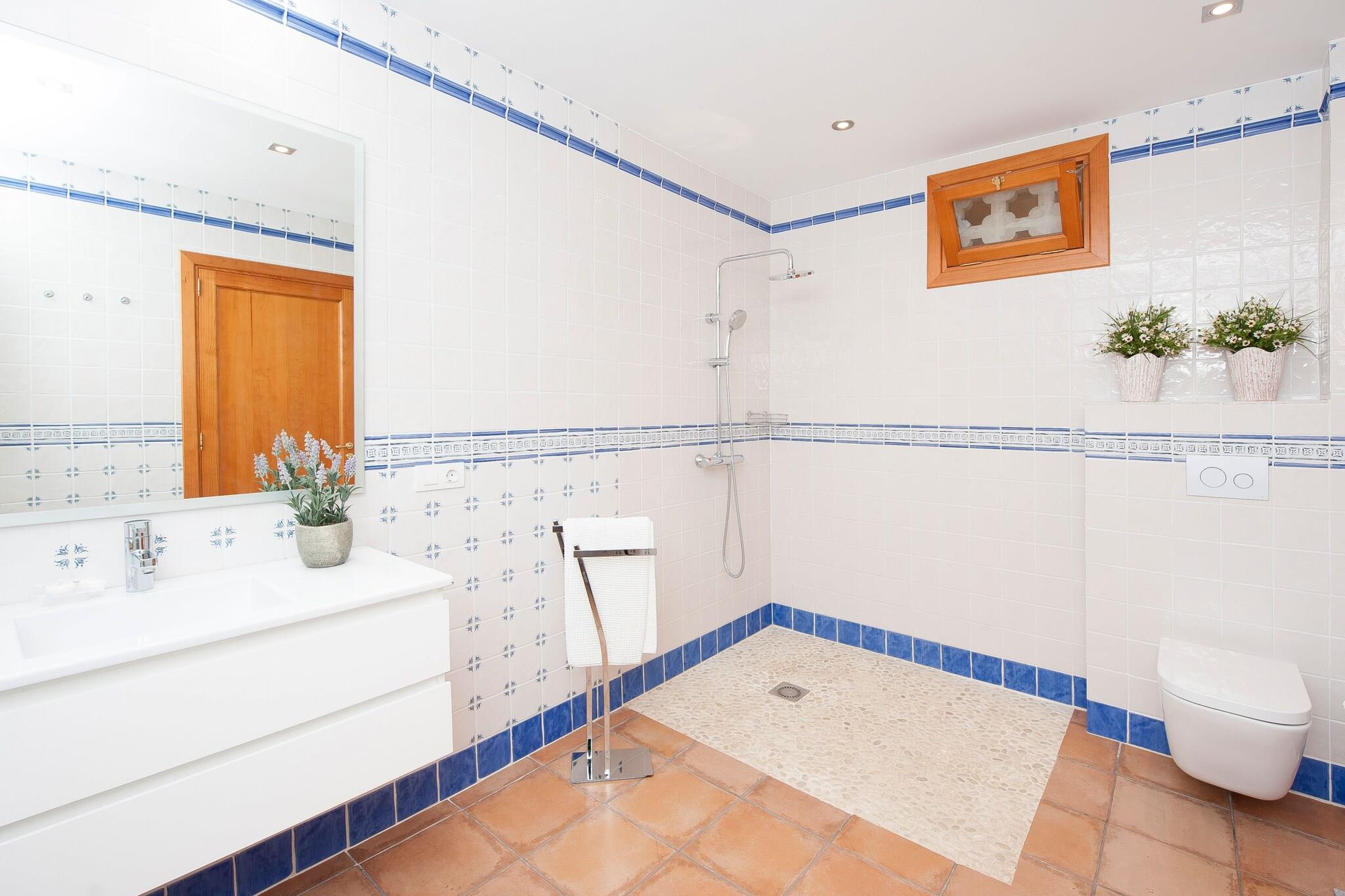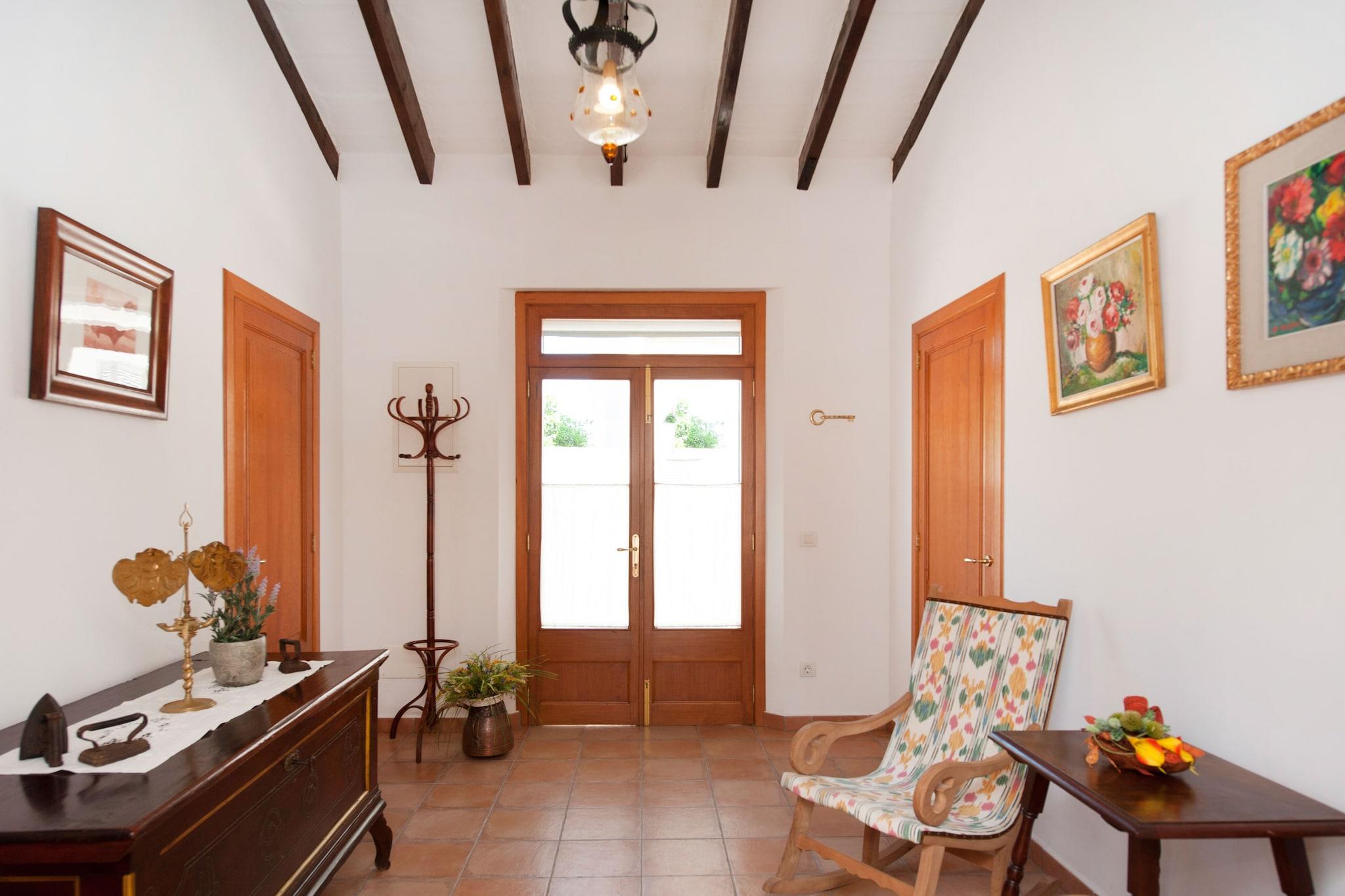 Afslappende Pool Retreat Træd ind i en fredfyldt flugt i Ariany, hvor den private saltvandspool (6,5×3,5m, 1,5m dybde) inviterer dig til at køle af efter en morgen med aktiviteter. Fire liggestole og en udvendig bruser giver et perfekt setup til solbadning og skylning af, inden du nyder en grill på verandaen. Den øverste terrasse byder på et hyggeligt hjørne til at slappe af med et glas vin, mens du nyder udsigten over poolen og den charmerende landsby nedenfor. Komfortabel moderne livsstil Indenfor har villaen en stue med tv og en pejs, ideel til at slappe af med en bog på køligere aftener. Den uafhængige spisestue har plads til seks, og det fuldt udstyrede køkken inkluderer en keramisk kogeplade og alle nødvendige apparater. To dobbelte soveværelser med skabe deler et brusebadeværelse i stueetagen, mens det tredje soveværelse ovenpå har to enkeltsenge, en-suite bruser og direkte adgang til terrassen. Yderligere bekvemmeligheder omfatter gulvvarme, vaskemaskine, strygefaciliteter, barneseng og høj stol. Charmerende landsby beliggenhed Ariany er en lille landsby, der tilbyder grundlæggende tjenester, dagligvarebutikker og flere restauranter inden for gåafstand. De landlige omgivelser er ideelle til vandreture, cykling eller fredelige gåture gennem marker. Son Serra de Marina-stranden og Golf de Rotana ligger cirka 20 km derfra, mens Palma Lufthavn ligger 45 km fra ejendommen. Kæledyr er ikke tilladt, arrangementer er forbudt, og lokale regler kræver en Ecotasa turistskat.