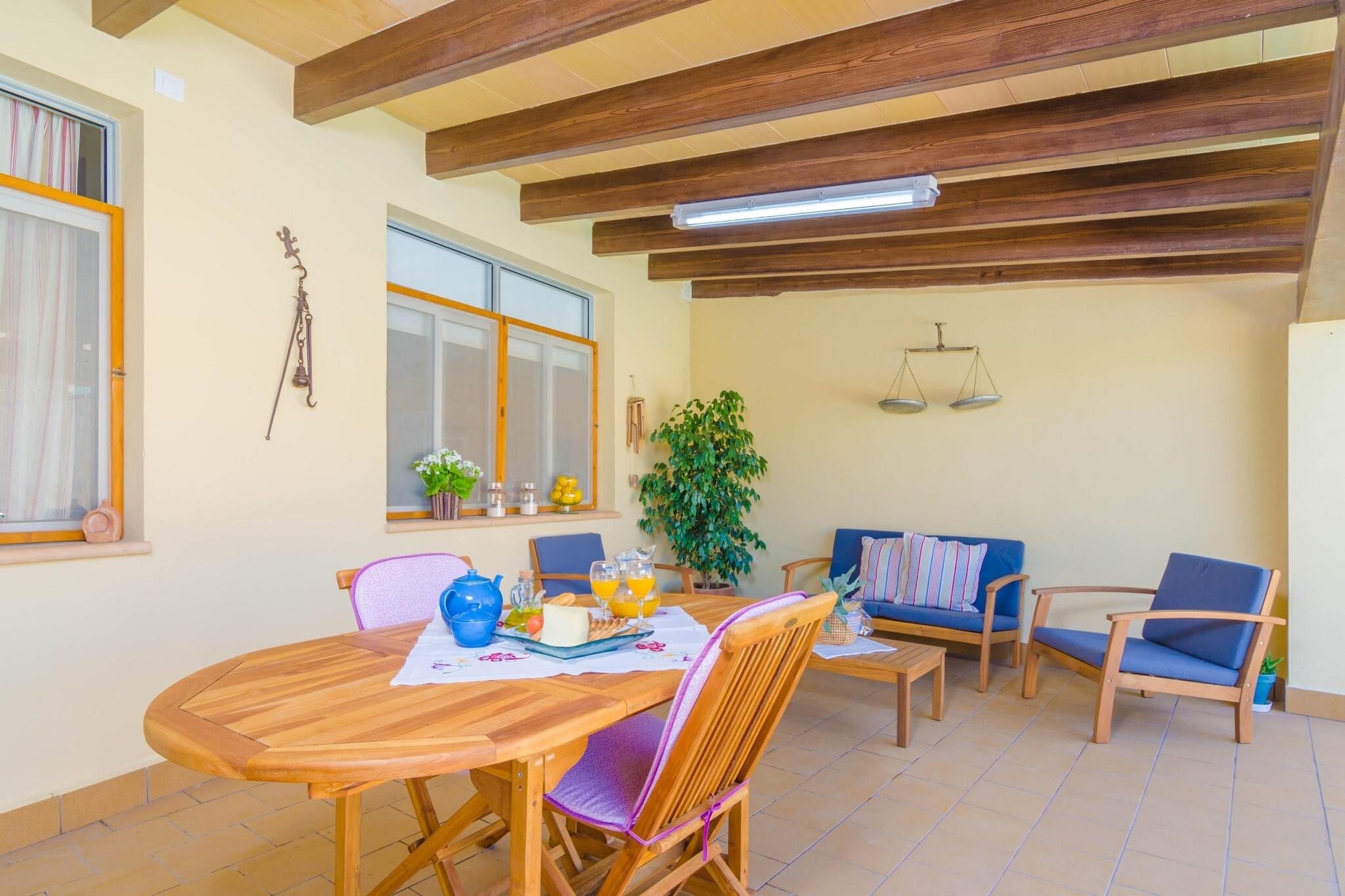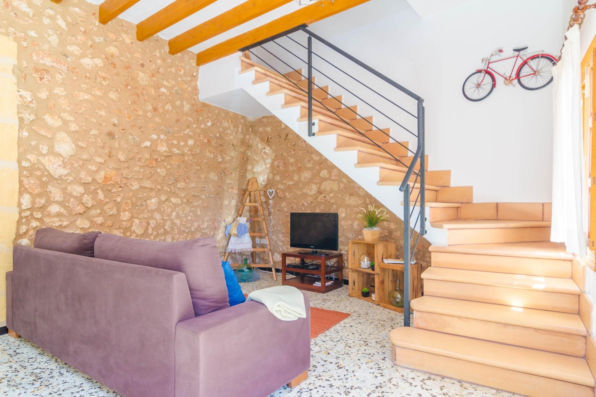 Afslappet Poolside Living Dette rækkehus i Ariany tilbyder en privat saltvandspool omgivet af en møbleret terrasse, perfekt til lange sommerdage under den baleariske sol. Gæsterne kan nyde morgenkaffe på verandaen, slappe af på liggestole eller dele en grillmiddag efter en forfriskende svømmetur. Med alt på ét niveau kombinerer hjemmet rustik charme - stenvægge, træbjælker og hyggelige hjørner - med moderne bekvemmeligheder som aircondition, satellit-tv og et fuldt udstyret køkken. Komfortabelt landsbyophold Indvendigt sikrer tre soveværelser med aircondition en afslappende nat: to med dobbeltsenge og et med to enkeltsenge. Et lyst opholdsrum forbinder problemfrit til spiseområdet, hvilket skaber et indbydende sted for afslappede sammenkomster. En anden lounge med sofa og brændeovn giver et alternativt hjørne til at læse eller slappe af. Ejendommen omfatter to badeværelser, et vaskerum og en udendørs bruser for nem ophold ved poolen. Natur, strande og spisning Ariany er en fredelig landsby omgivet af bølgende bakker, landbrugsjord og traditionelle vindmøller. Gå en tur gennem rolige gader, udforsk lokale butikker, eller spis på nærliggende restauranter inden for gåafstand. Til dagsture ligger de gyldne strande i Son Serra de Marina og Cala Millor inden for 20 km, mens vandre- eller cykelstier fører til Puig de Bonany med panoramaudsigt over øen. Gæsterne vil også finde nem adgang til Alcúdias havn, golfbaner og Manacors markeder. Kæledyr er ikke tilladt, og respektfuldt ophold er påkrævet.