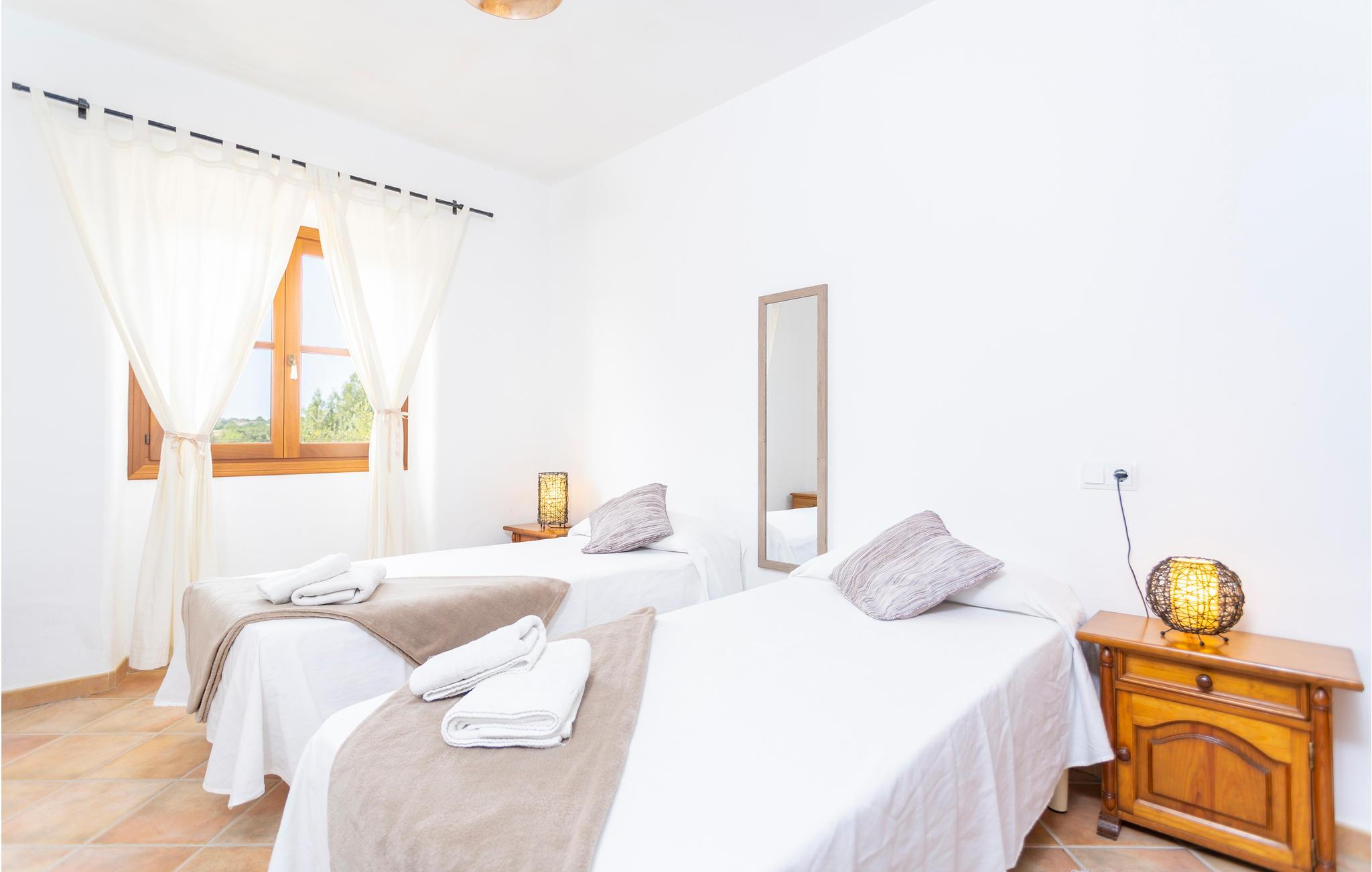 Nyd den rene afslapning, lyt til fuglenes kvidren, fårekyllingerne og fårenes klokker - her bor I som i en anden verden. Alligevel er der heller ikke langt herfra til de dejlige, levende strande ved Colonia Sant Pere, Canyamel og Cala Radjada, som I når på kun 20 minutters kørsel, ligesom naturstrandene ved Cala Torta og Cala Mitjana. En af regionens mange golfbaner, ved Cap de Pere, ligger knapt 10 km væk.