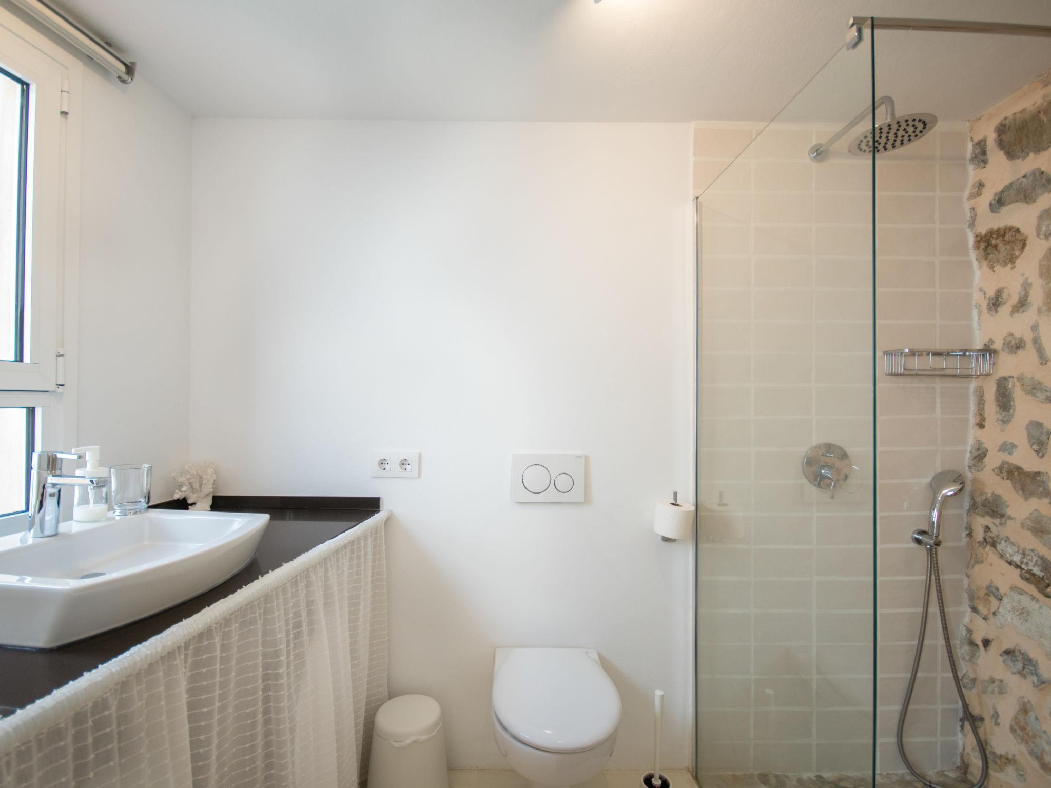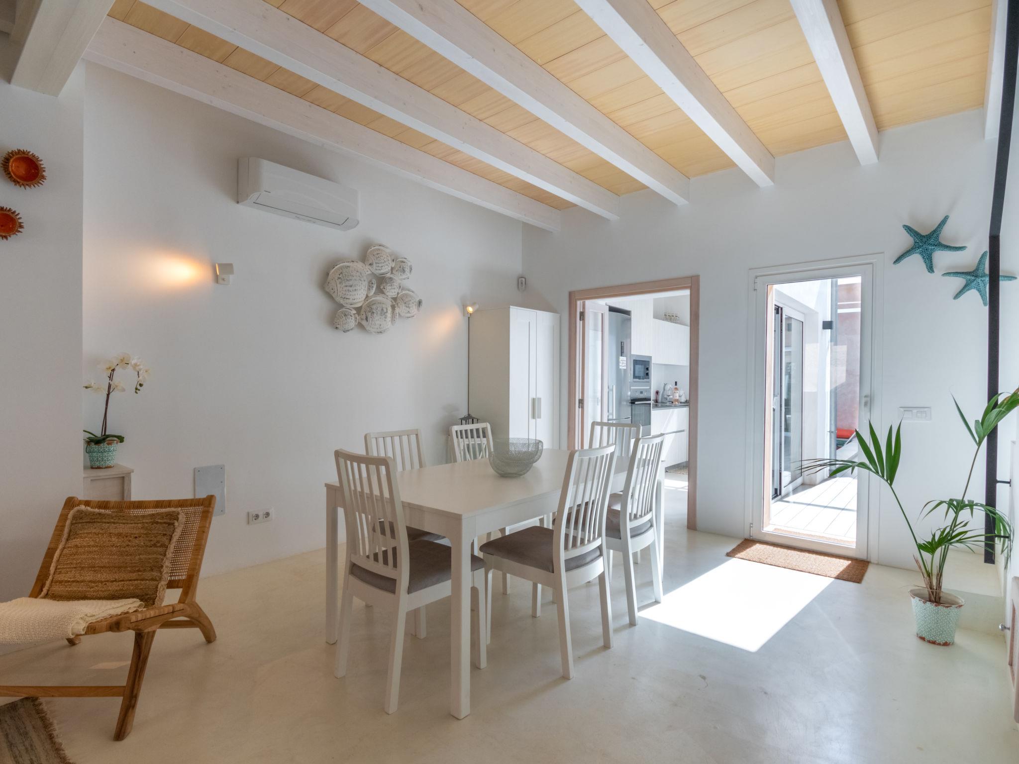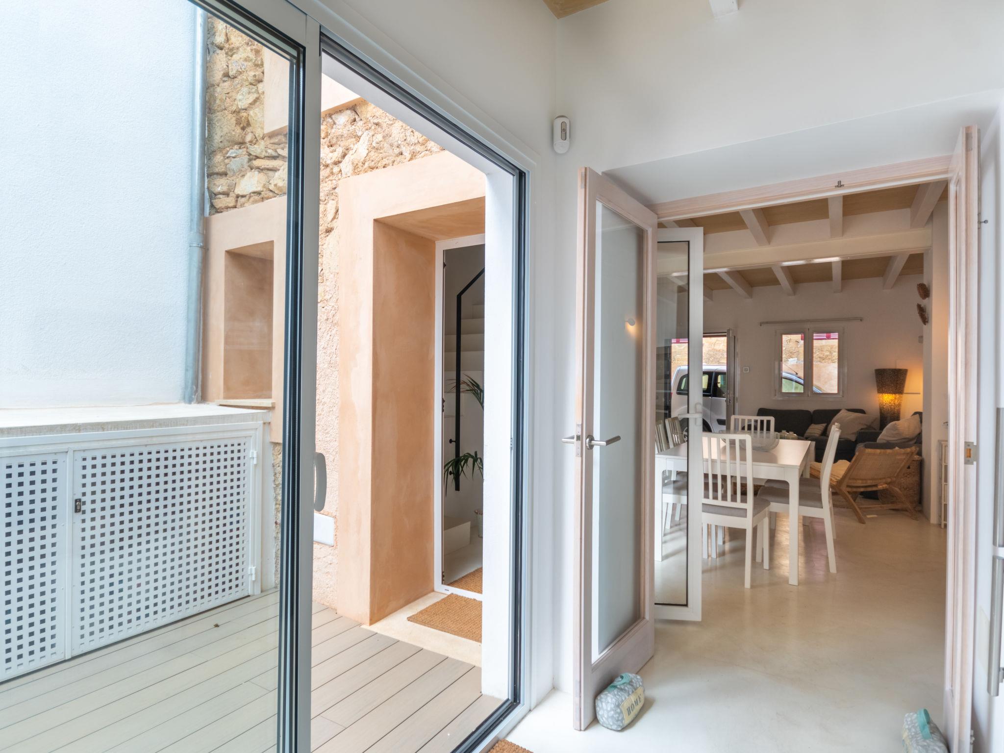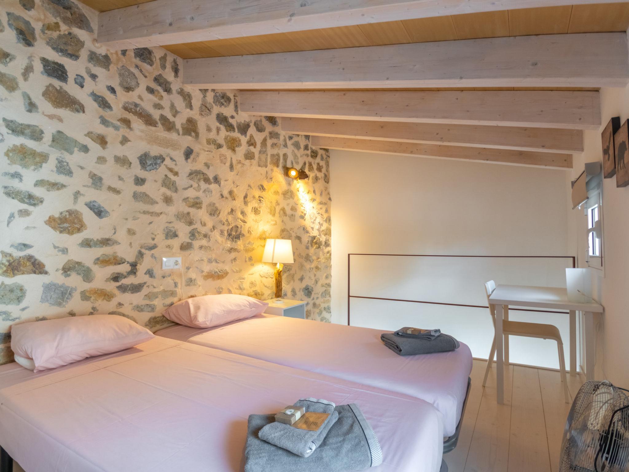 "Can Regalat", 4-room house 130 m2 on 2 levels. Object suitable for 6 adults. Spacious and bright, fully renovated in 2020, very beautiful and cosy furnishings: large living/dining room with panoramic window with dining table, digital TV, flat screen, air conditioning and forced-air heating. Exit to the terrace, to the swimming pool. Kitchen (oven, dishwasher, 3 ceramic glass hob hotplates, toaster, kettle, microwave, freezer, electric coffee machine). Exit to the terrace, to the swimming pool. Shower/WC, sep. WC. Upper floor: 1 large double bedroom with panoramic window with 1 french bed (150 cm, length 190 cm), digital TV, flat screen, air conditioning and forced-air heating. Exit to the balcony. 1 large double bedroom with panoramic window with 2 beds (90 cm, length 200 cm), air conditioning and forced-air heating. 1 open double bedroom with panoramic window with 2 beds (90 cm, length 190 cm), fan. Shower/WC. Balcony, terrace. Terrace furniture, balcony furniture, sitting area. Facilities: washing machine, iron, children's high chair, baby cot, hair dryer. Internet (WiFi, free). ETV15248