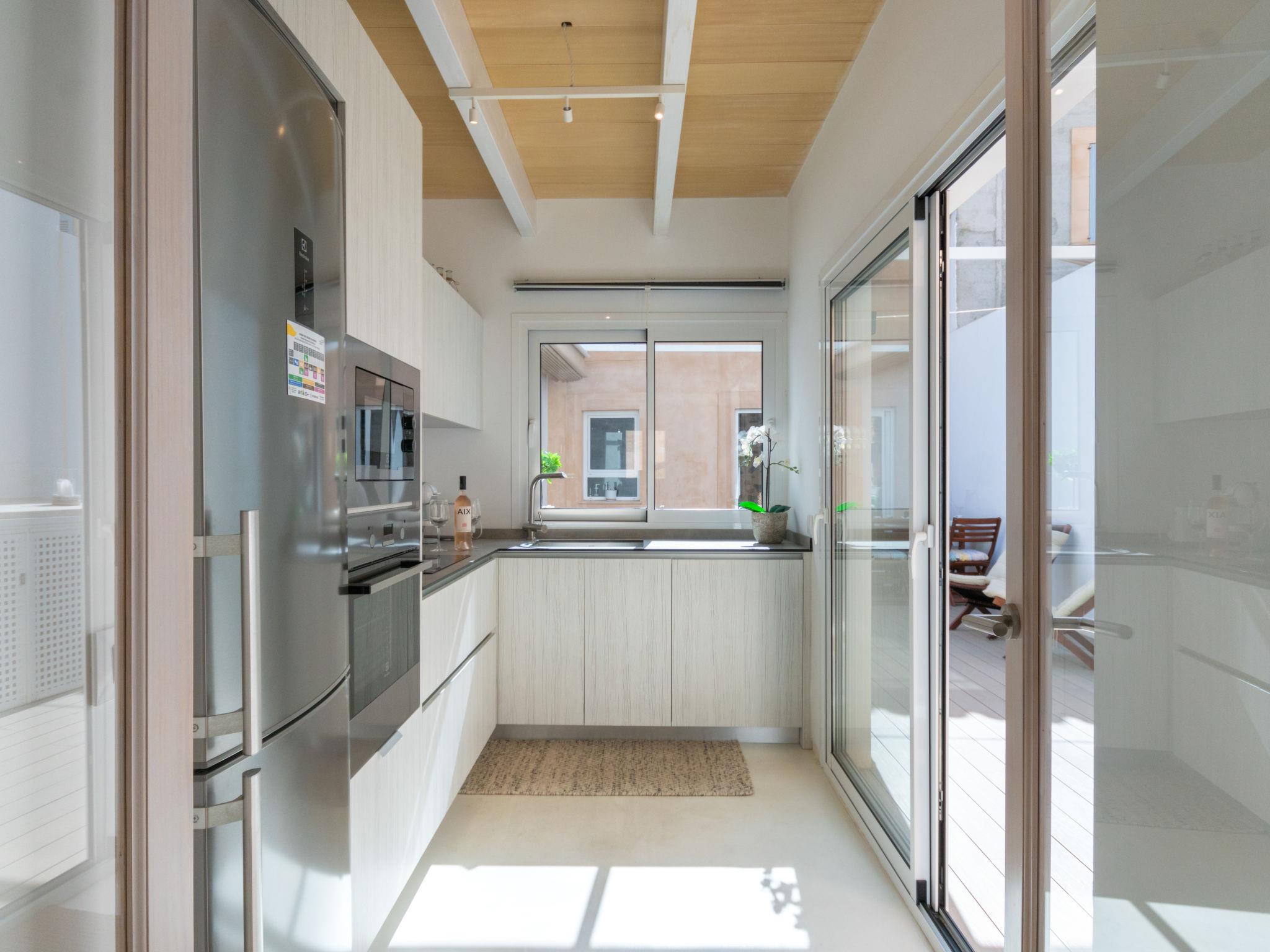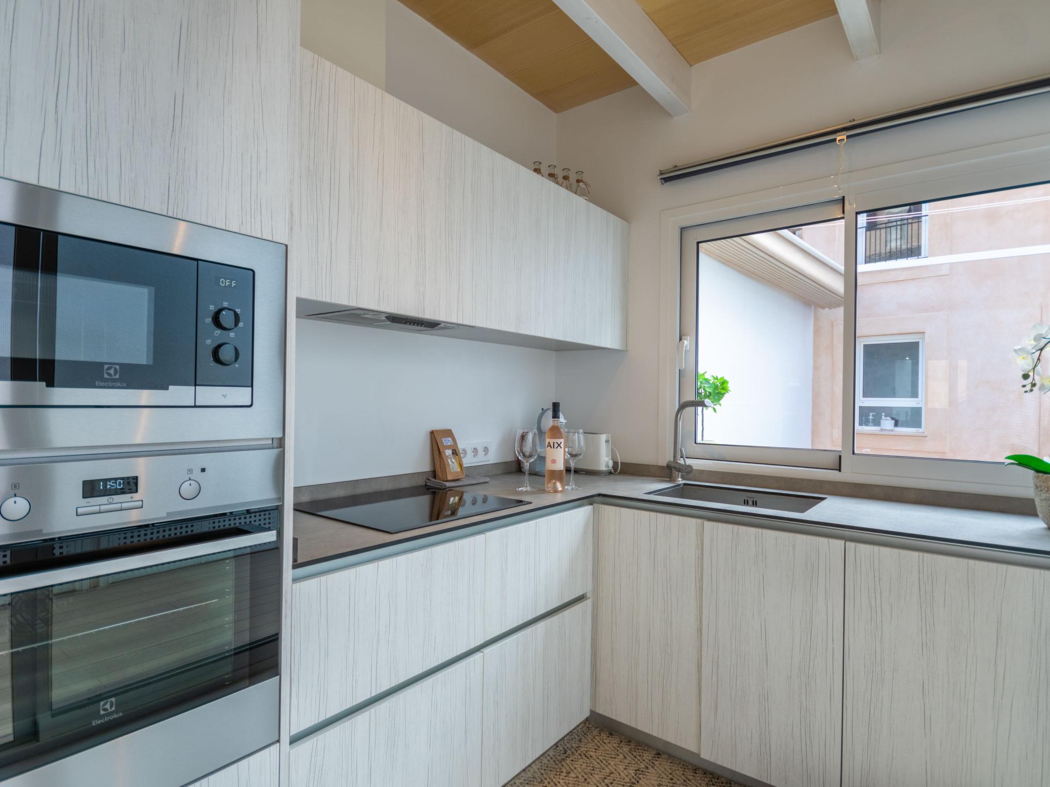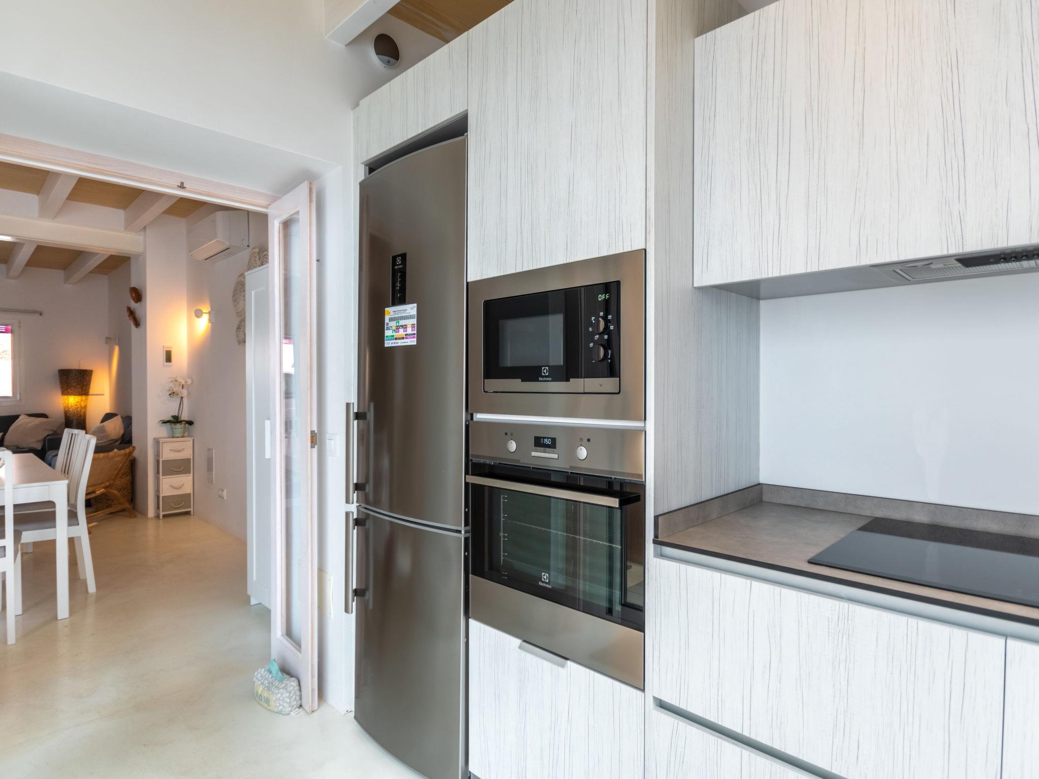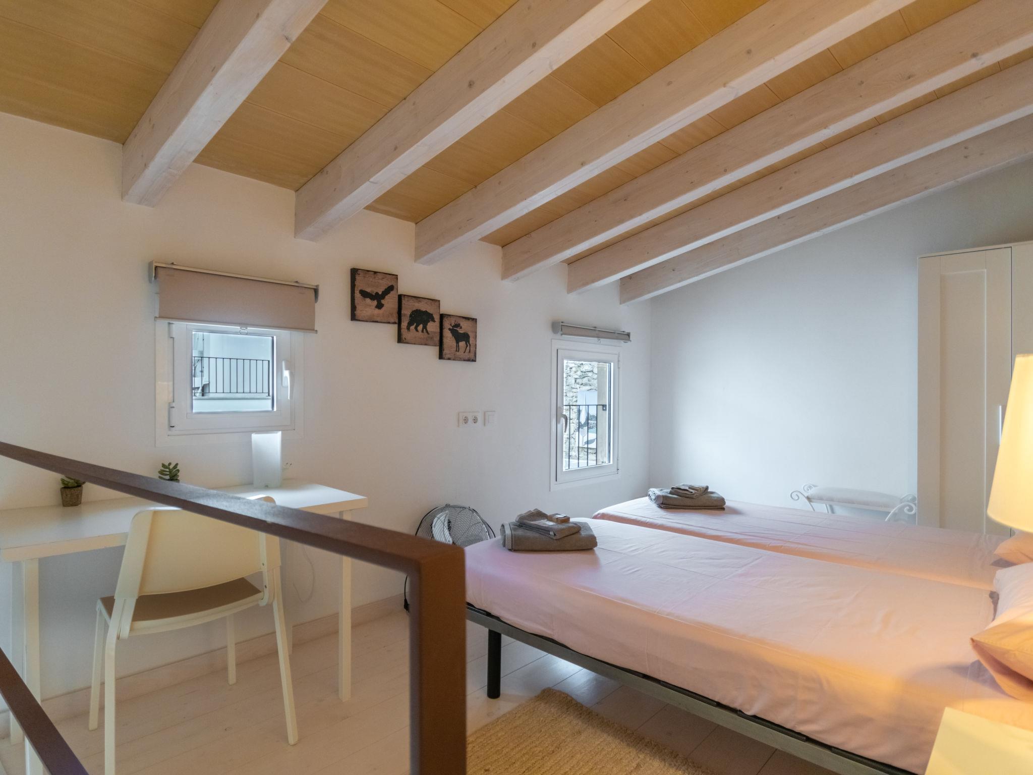 "Can Regalat", 4-room house 130 m2 on 2 levels. Object suitable for 6 adults. Spacious and bright, fully renovated in 2020, very beautiful and cosy furnishings: large living/dining room with panoramic window with dining table, digital TV, flat screen, air conditioning and forced-air heating. Exit to the terrace, to the swimming pool. Kitchen (oven, dishwasher, 3 ceramic glass hob hotplates, toaster, kettle, microwave, freezer, electric coffee machine). Exit to the terrace, to the swimming pool. Shower/WC, sep. WC. Upper floor: 1 large double bedroom with panoramic window with 1 french bed (150 cm, length 190 cm), digital TV, flat screen, air conditioning and forced-air heating. Exit to the balcony. 1 large double bedroom with panoramic window with 2 beds (90 cm, length 200 cm), air conditioning and forced-air heating. 1 open double bedroom with panoramic window with 2 beds (90 cm, length 190 cm), fan. Shower/WC. Balcony, terrace. Terrace furniture, balcony furniture, sitting area. Facilities: washing machine, iron, children's high chair, baby cot, hair dryer. Internet (WiFi, free). ETV15248