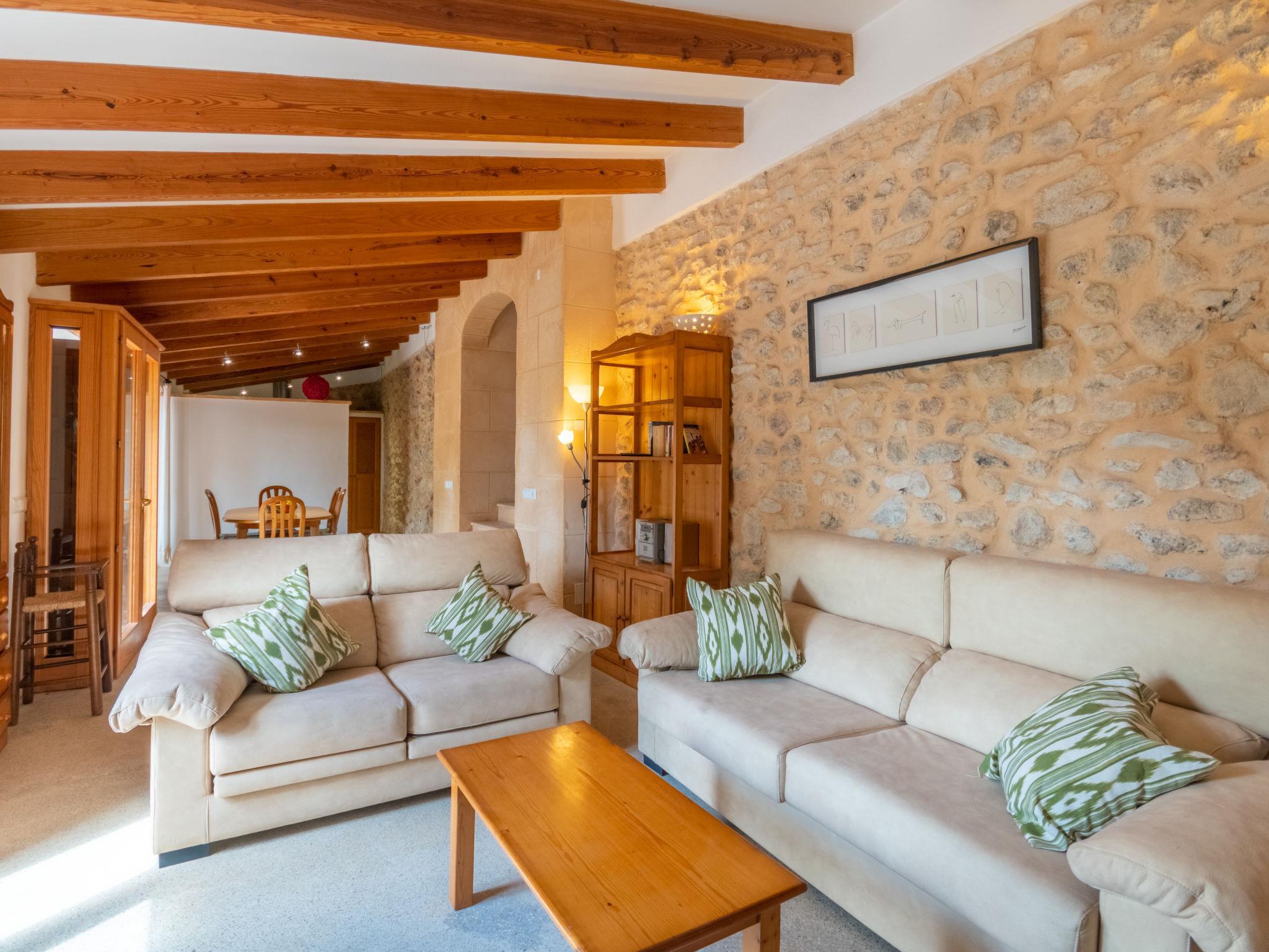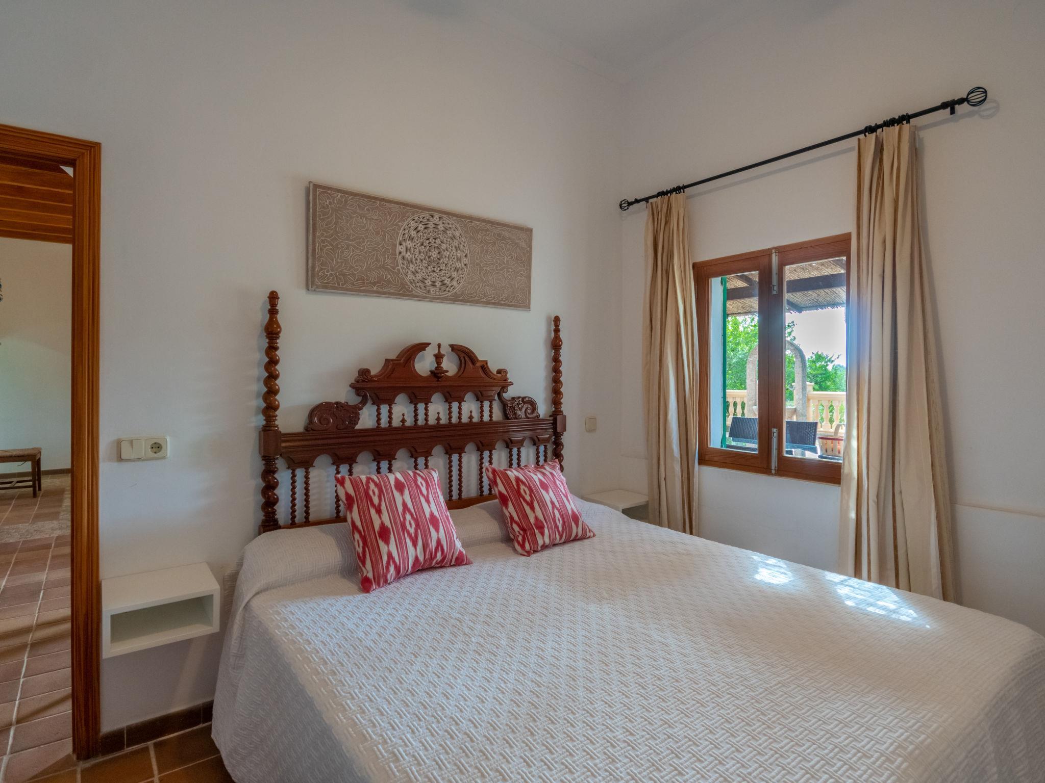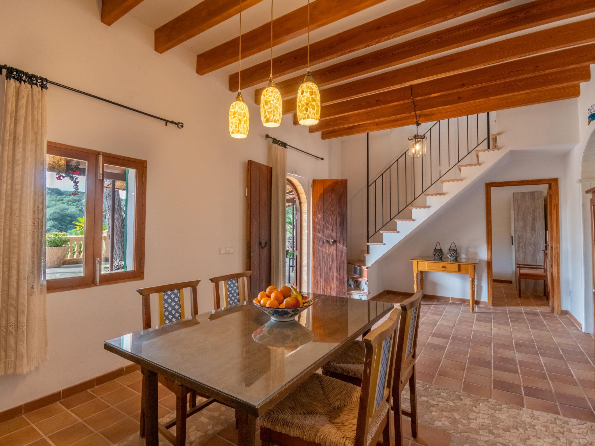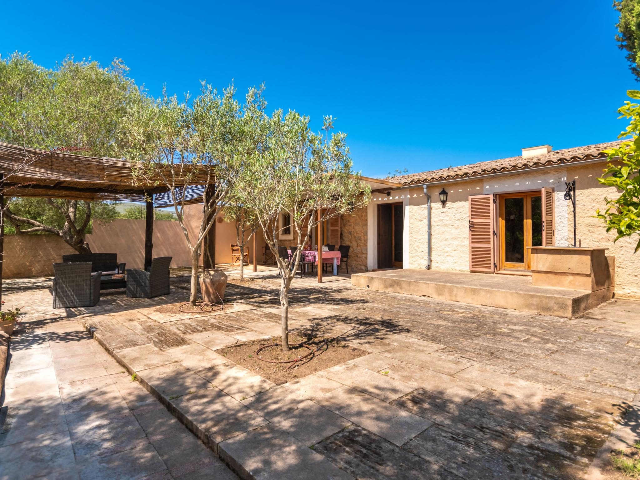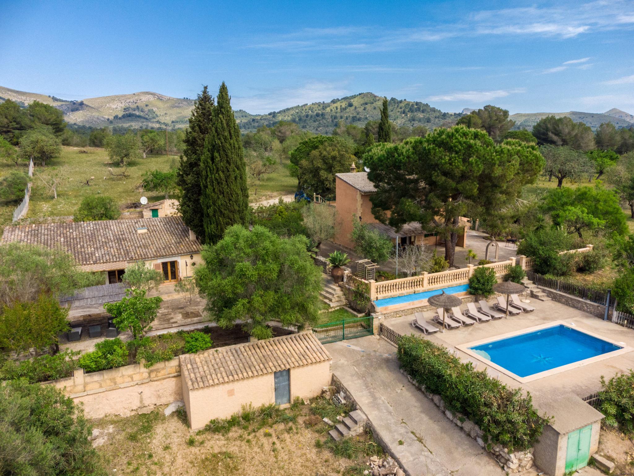 Very large, cosy farm estate "Capella Rubi", 2 storeys, renovated, surrounded by fields. Property composed of main house and outbuilding, outside the resort, 4.2 km from the centre of Artà, in a quiet, sunny position, 11 km from the sea, 11 km from the beach, in the countryside. Private: natural state property (fenced), garden with wildlife garden and trees, swimming pool angular (8 x 4 m, depth 100 - 160 cm, seasonal availability: 01.Jan. - 31.Dec.). WC in the pool area, outdoor shower, patio, arbour, pergola, garden furniture, barbecue, pool maintenance by the owner/gardener. In the house: internet access, WiFi, storage room for bicycles, air conditioning, burglar alarm system, washing machine. Parking at the house on the premises. Shop 4.2 km, supermarket 4.5 km, bakery 4.6 km, bus stop "Artà" 4.1 km, sandy beach "Son Serra de Marina" 11 km, shingle beach "Colònia Sant Pere" 9.3 km. Sports harbour 9 km, golf course (18 hole) 8 km, tennis 4 km, walking paths from the house 3.5 km, cycle lane 500 m. Nearby attractions: Artá Pueblo 4 km, Castillo de Capdepera 11.9 km, Colonia de Sant Pere - Betlem 10 km, Son Serra de Marina 12 km, Playa de Cala Agulla 14.5 km, Playa de Cala Torta - Cala Mesquida 15 km. Hiking paths: Ermita de Betlem 6.5 km, Arenalet d'Aubarca 13 km, Cap de Farrutx 14 km. Please note: car recommended. Object suitable for 9 adults. The owner does not accept any youth groups. Animals in the neighbourhood. Airfield 70 km from the property.