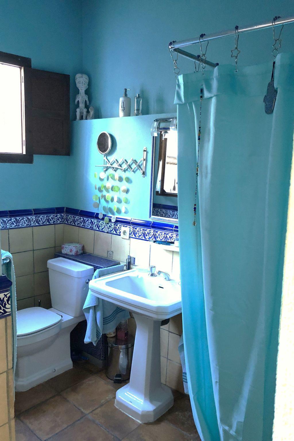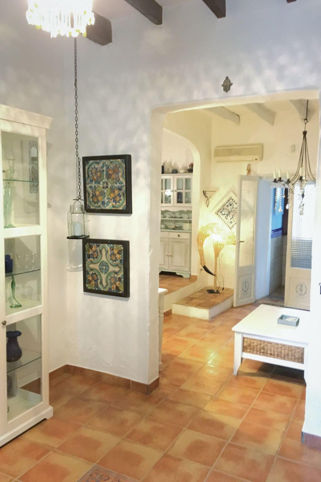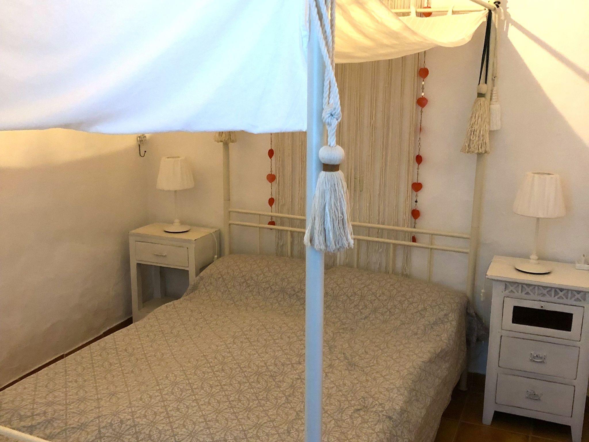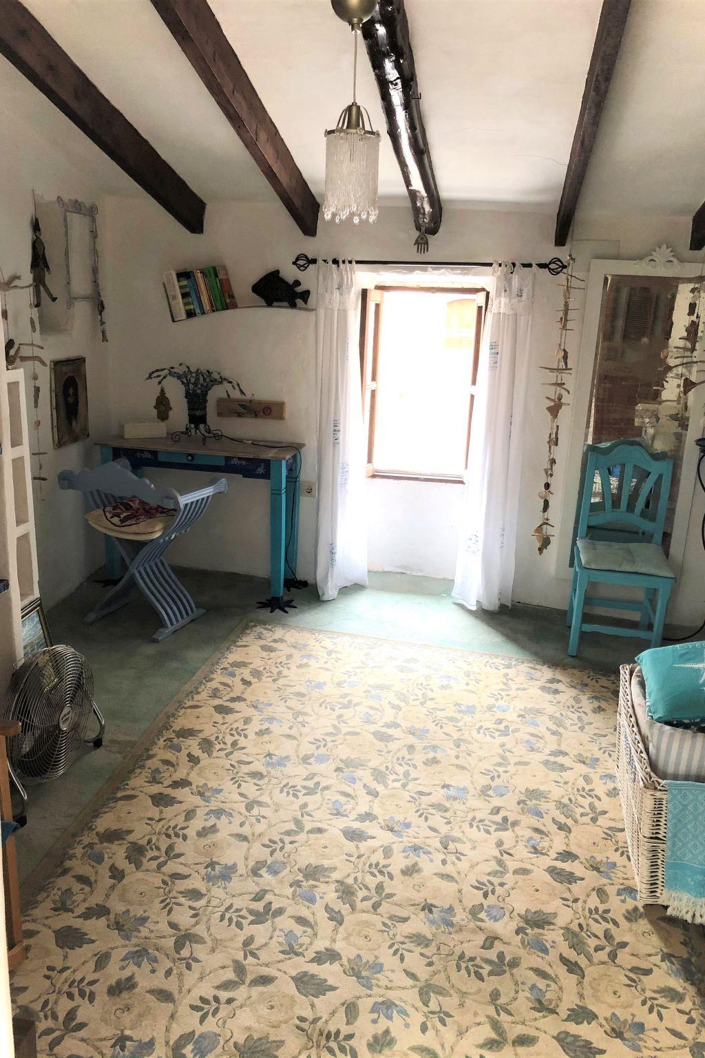 The approximately 120m ² house is lovingly and individually decorated. The ground floor leads to a large entrance area. On the ground floor also a dining and sitting area with satellite TV invites you for a social gathering. The rustic kitchen is equipped with all major kitchen utensils. In addition to a gas stove are also a refrigerator, a toaster, a coffee machine u.v.m. to be found. Also on the ground floor is a separate bedroom with a double bed. Furthermore, the ground floor is the bathroom with shower and toilet and a business patio with washer and dryer. On the first floor you will find a large light-flooded and air-conditioned double bedroom with terrace access. Find here a perfect refuge for a romantic Majorca holiday for couples or for a small family.