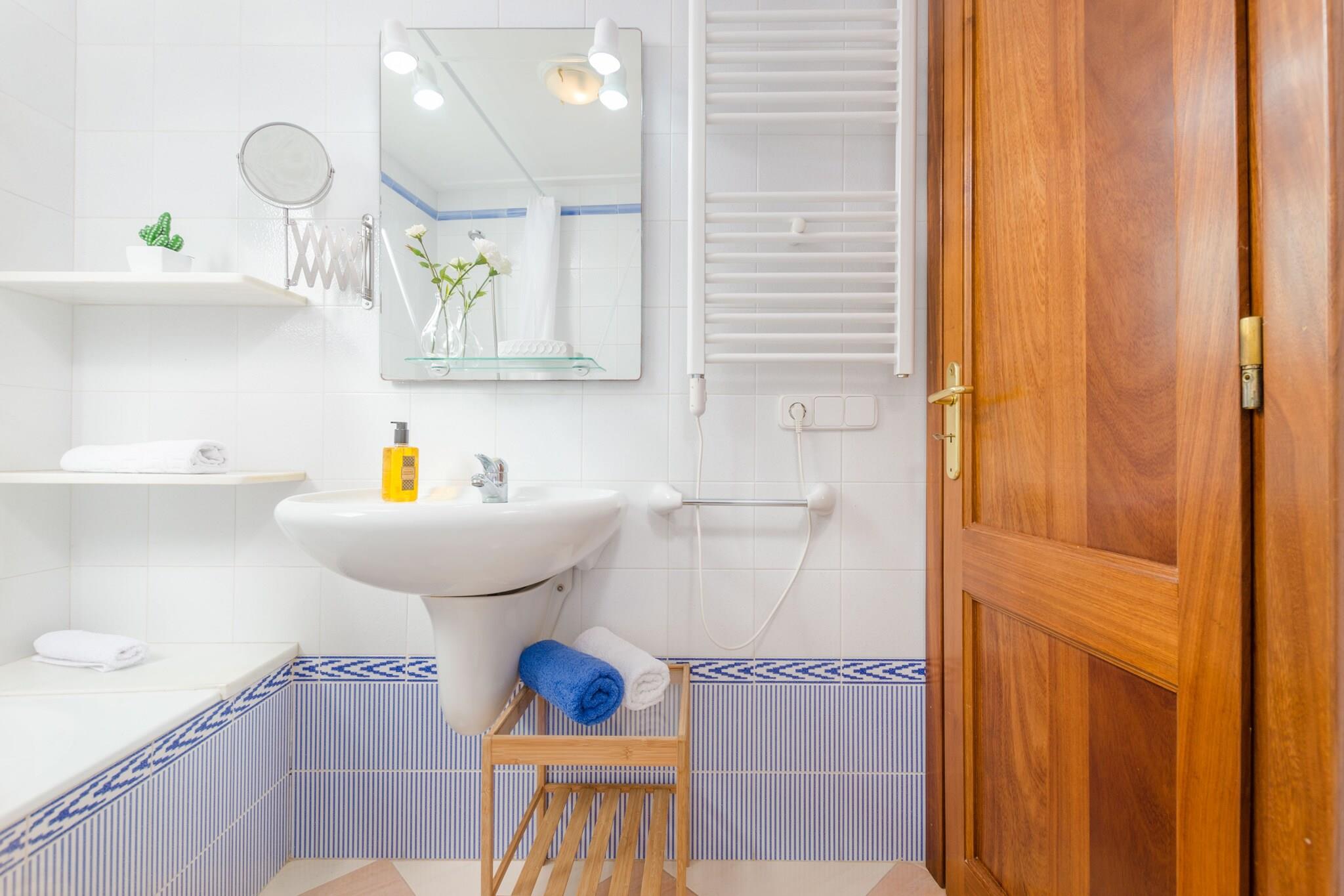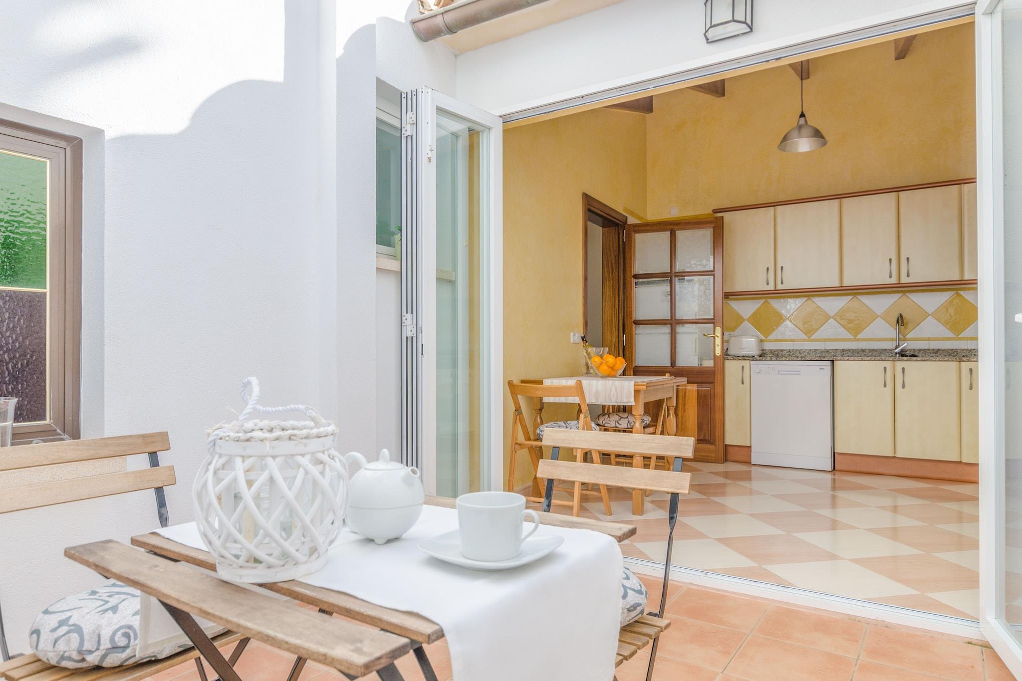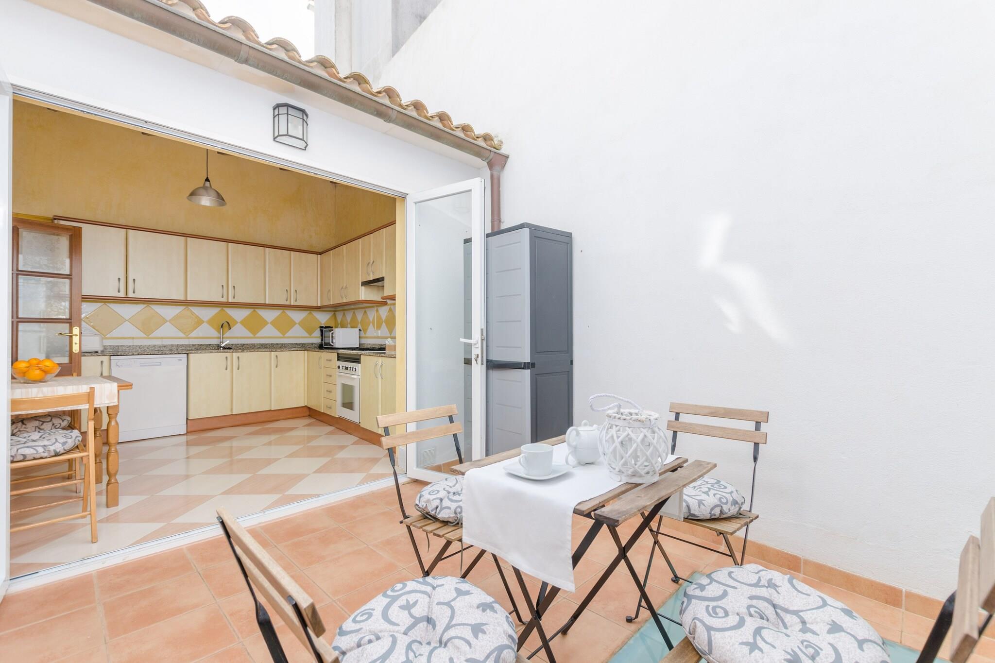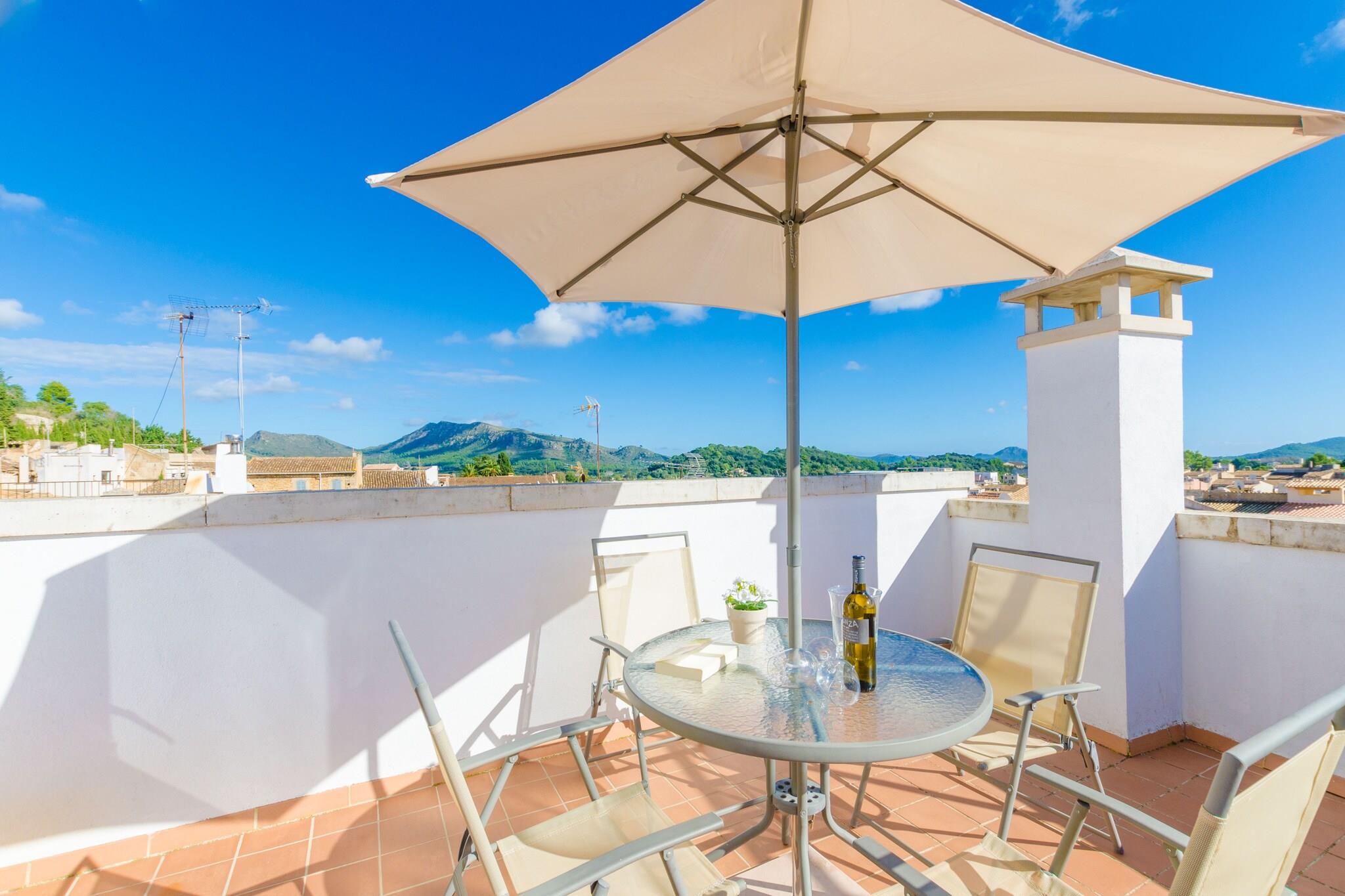 Nyd en flot udsigt over bjergene og landsbyerne fra tagterrassen i dette charmerende 4-etagers rækkehus i hjertet af Artà. Start din dag med morgenmad i solen, slap af med en bog på hængekøjerne, eller nyd vin ved solnedgang. En anden, mere privat terrasse er ideel til hyggelige måltider eller aftendrinks. Den første tilgængelige etage (stueetagen er lukket) har et rummeligt køkken med gaskomfur, ovn, mikroovn, kaffemaskine og meget mere. Glasskydedøre forbinder den med den indvendige terrasse for en problemfri indendørs-udendørs følelse. Stuen/spisestuen byder på plads til at slappe af med satellit-tv og radiator, og der er et komplet badeværelse med bruser på dette niveau. Ovenpå finder du tre soveværelser - et med to enkeltsenge skubbet sammen, et med en dobbeltseng og et med en enkeltseng - alle med skabe, plus et andet badeværelse med badekar. To soveværelser har desuden radiatorer. Fans, en barneseng og en høj stol er tilgængelige. Vaskerummet byder på vaskemaskine, strygejern og strygebræt. Beliggende i det centrale Artà, vil du have butikker, restauranter og kultur lige uden for døren. Strande som Cala Moll og golf ved Capdepera er kun en kort køretur væk.