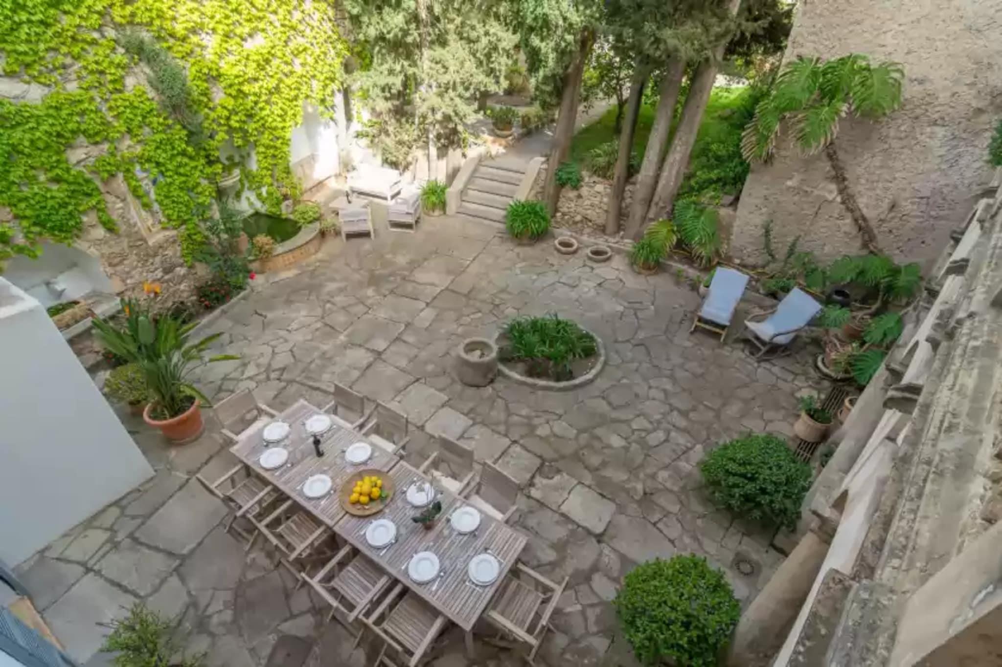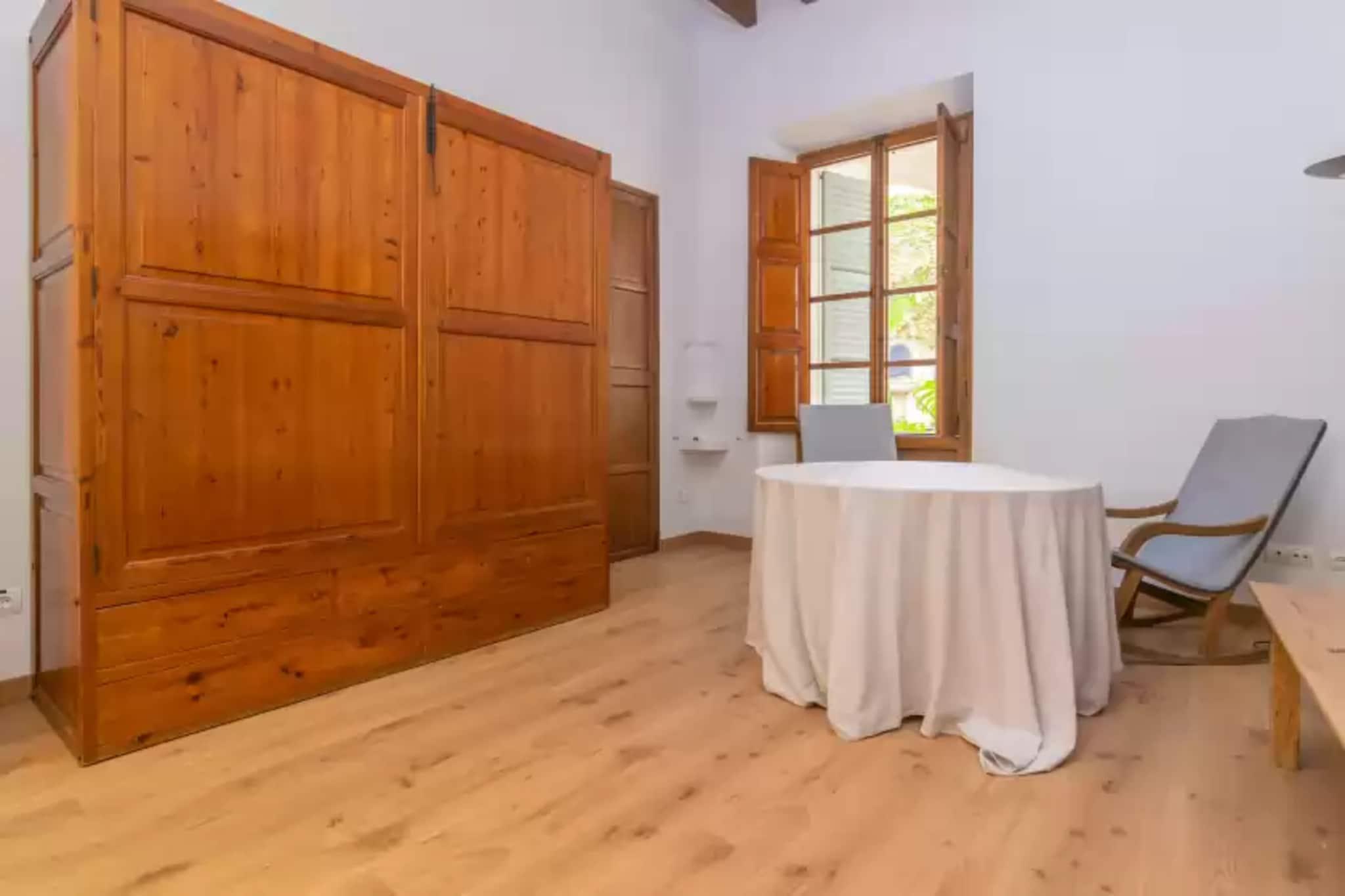 Dette karakterfyldte tre-etagers hjem tilbyder en rolig flugt i hjertet af Artà. Dens frodige indre gårdhave, prydet med planter og hyggelige hjørner, inviterer dig til at slappe af eller nyde al fresco-måltider omkring et stort bord. En grill tilføjer charmen, hvilket gør den perfekt til afslappede sammenkomster. Selvom det er centralt beliggende med nærliggende naboer, føles ejendommen som en privat oase. Indvendigt blander huset moderne stil med traditionelle detaljer. Den rummelige stue har et Smart TV, satellitkanaler og bøger, mens den elegante spisestue sætter scenen for mindeværdige måltider. Det uafhængige køkken er fuldt udstyret, og stueetagen indeholder et badeværelse med badekar. Ovenpå finder du fem soveværelser med aircondition - to med dobbeltsenge og tre med to enkeltsenge - plus fire badeværelser (tre en-suite). To ekstra opholdsområder tilbyder fleksibel plads, og babyfaciliteter er tilgængelige efter anmodning. Beliggende i øvre Artà nær rådhuset, kan huset prale af udsigt over Puig de Sant Salvador og nem adgang til lokale markeder, restauranter og kulturelle steder. Inden for en kort køretur kan du nå fantastiske strande som Cala Mesquida og Cala Torta. Kæledyr og arrangementer er ikke tilladt. Gæster under 25 skal være en del af en familiegruppe. Paskopier er påkrævet for at bestille
