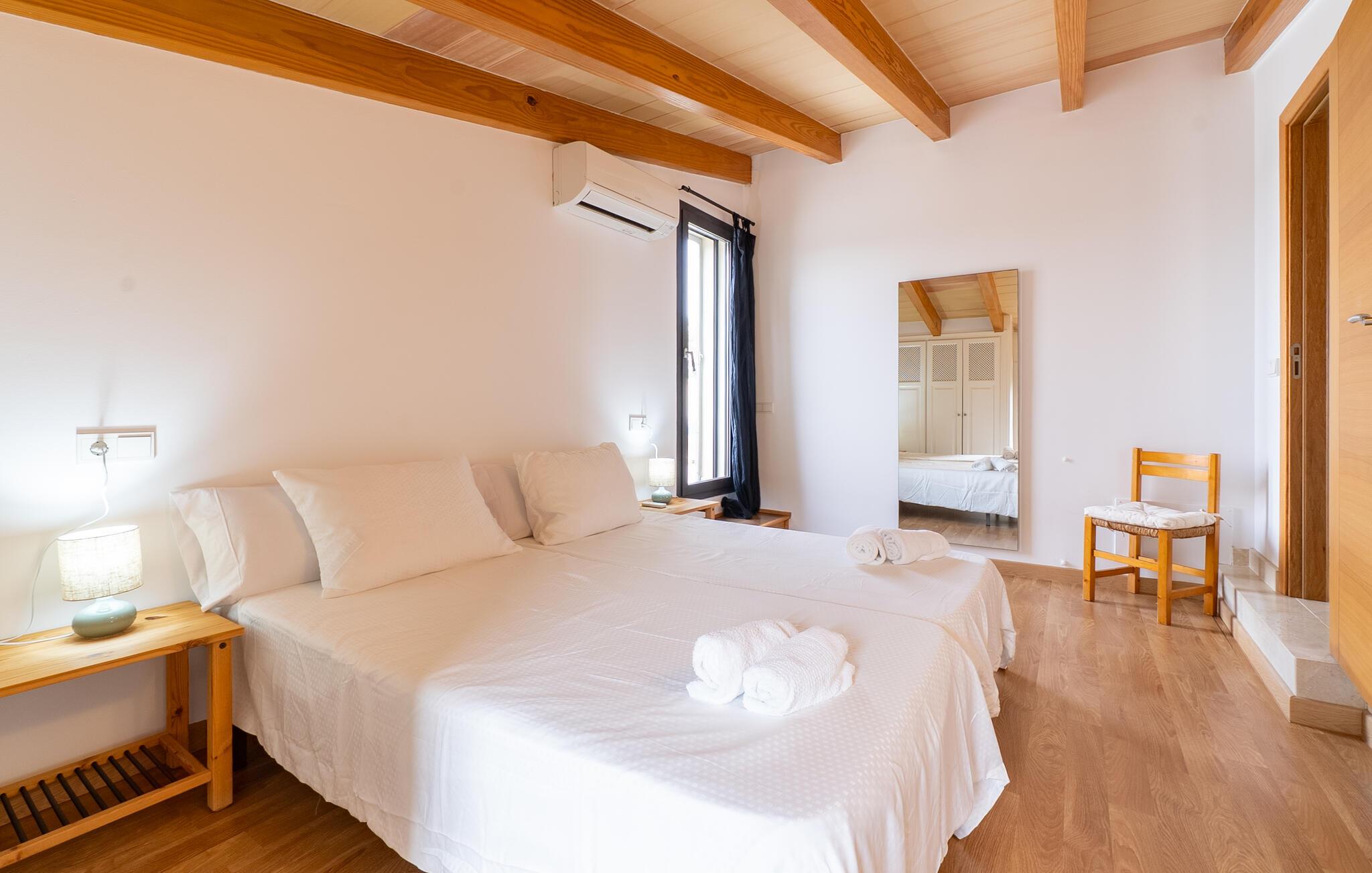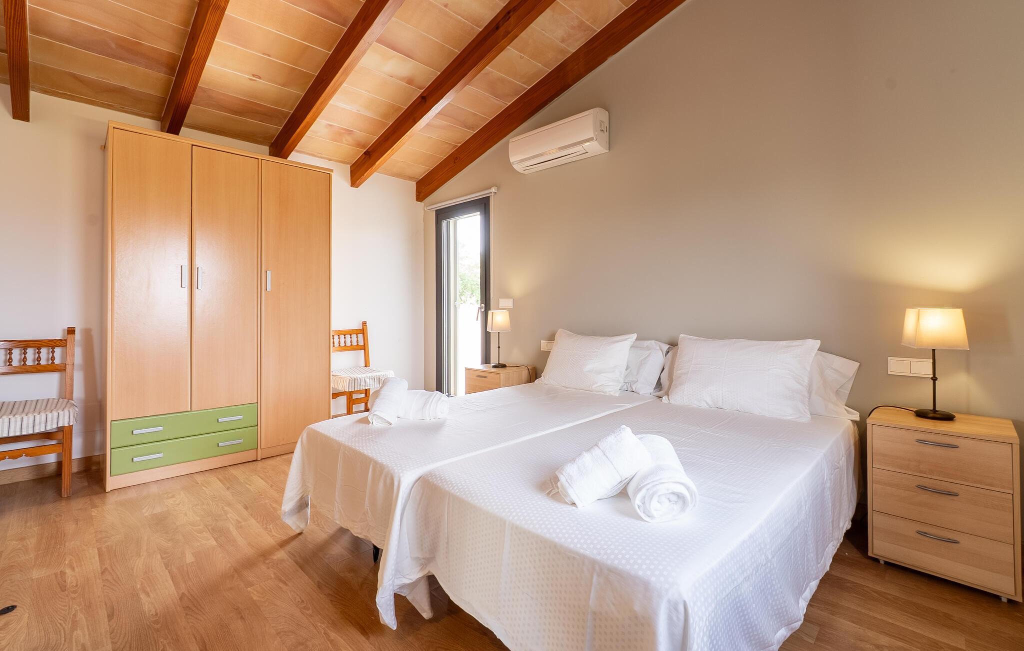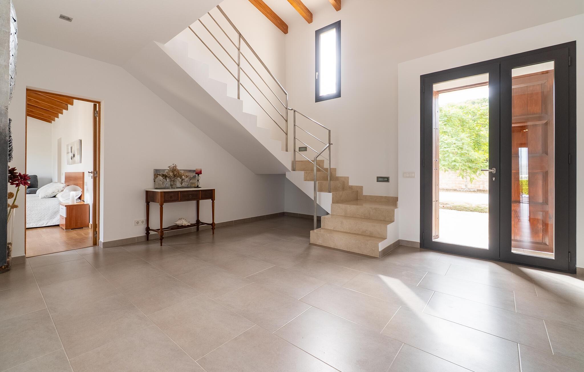 Beliggende i det vidtstrakte mallorcanske landskab kombinerer dette hus enkel elegance med rustikke træelementer. Den lyse opholdsstue lægger op til at snakke over en aromatisk espresso, nyde en eftermiddag med spil eller se en film. I det moderne køkken kan I tilberede lækre måltider sammen og lade jeres kreativitet få frit løb. Server med en fin spansk vin og nyd uforglemmelige aftener i en stilfuld atmosfære.