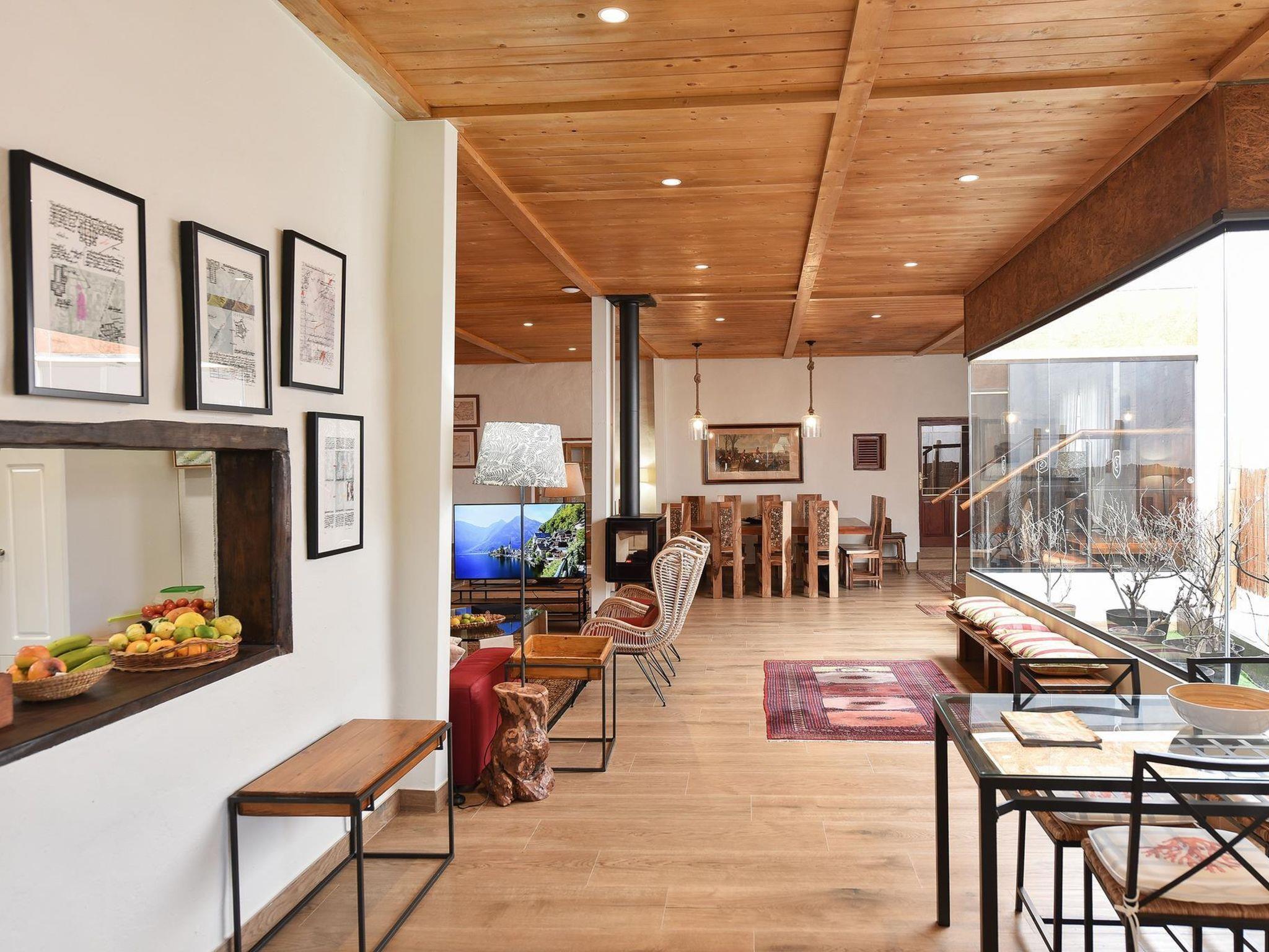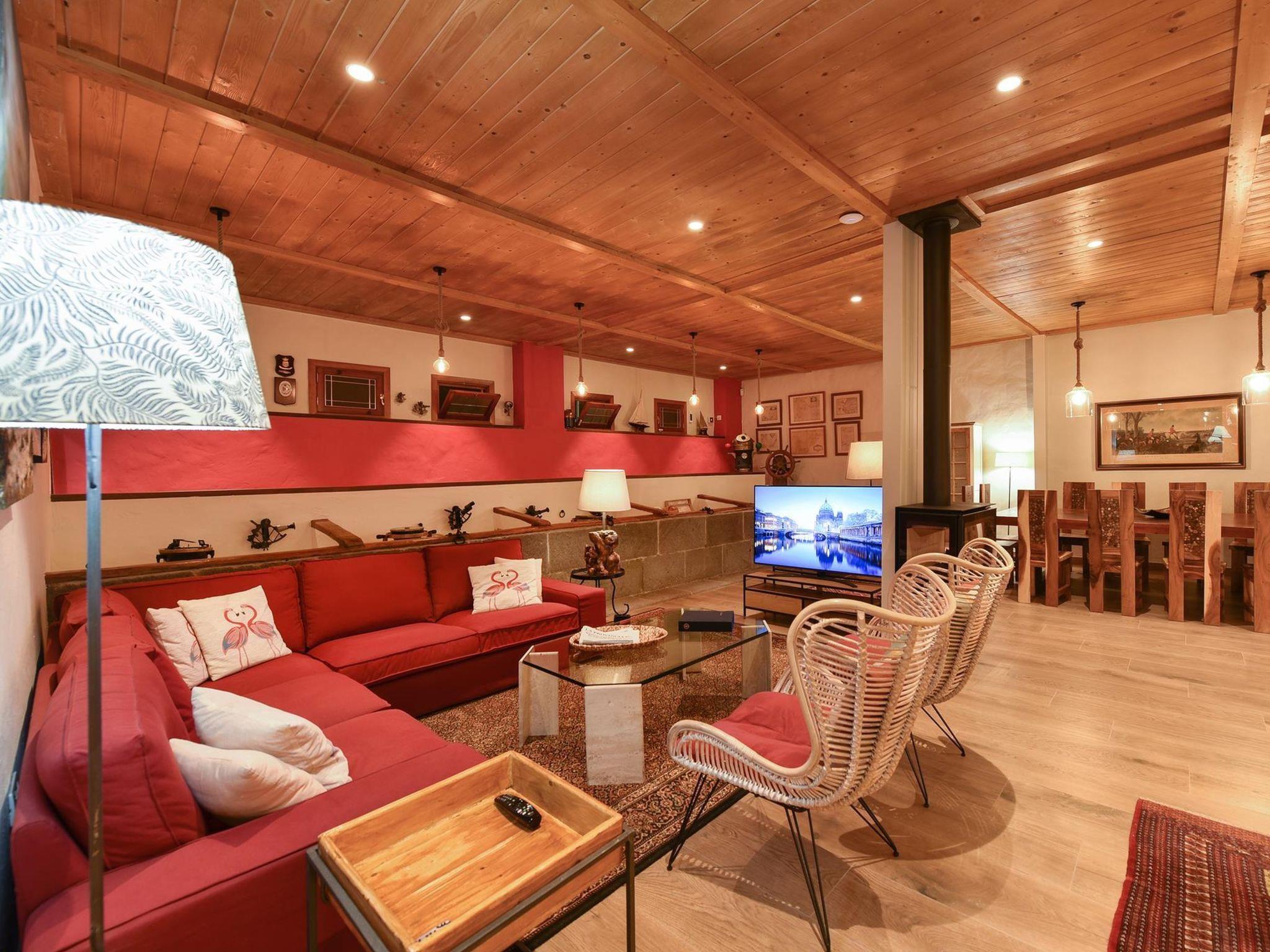 "Finca La Casona de Abajo Arucas", 6-room house 280 m2. Comfortable and rustic furnishings: living/dining room with dining table and digital TV. Exit to the patio. 4 rooms, each room with 1 french bed and shower/WC. 1 room with 1 french bed. Kitchen (oven, dishwasher, 4 ceramic glass hob hotplates, toaster, kettle, microwave, freezer, electric coffee machine) with dining table. Shower/WC. Patio. Terrace furniture, barbecue, deck chairs. View of the swimming pool and the garden. Facilities: washing machine, safe, iron, children's high chair, baby cot for up to 2 year olds, hair dryer. Internet (WiFi, free). Please note: non-smoking house. 2022-T16283 // Reg. Nr.: ESFCTU0000350100001504340000000000000VV-35-1-00187819