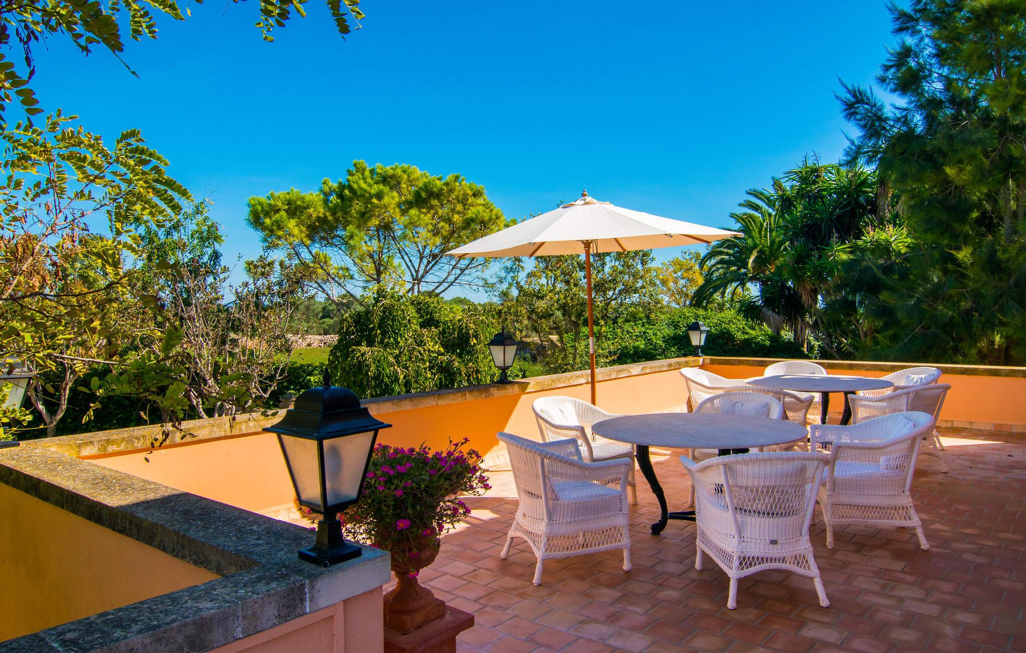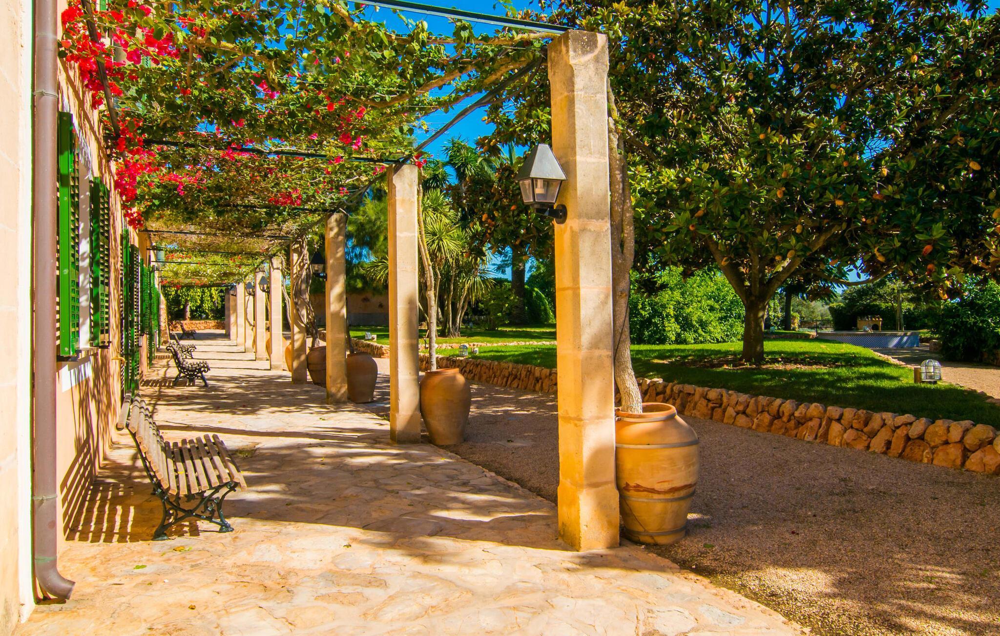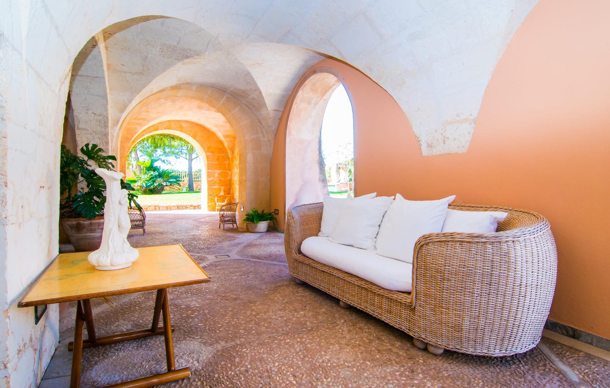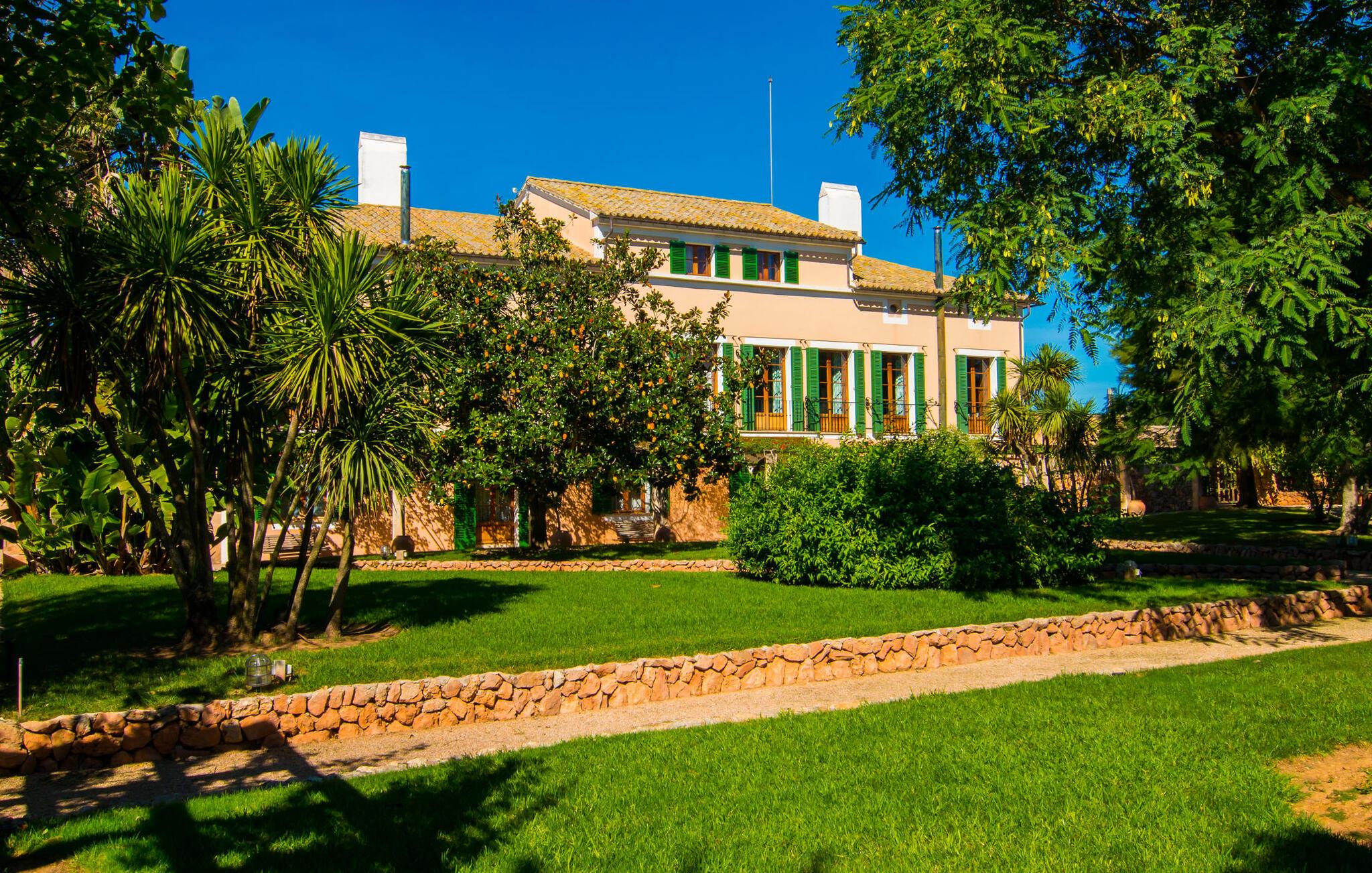 Den imponerende Finca "Atalaia" på det sydlige Mallorca tilbyder en sjælden mulighed for at holde ferie med en stor gruppe i et traditionelt mallorcansk herregård fra 1400-tallet. Denne unikke ejendom er ideel til bryllupper og familiefester for op til 100 personer og kan prale af et omfattende parkområde med modne træer, en stor terrasse og kølige hvælvede områder. Ejendommen har også grillfaciliteter, et bordtennisområde og rigelig plads til vandreture i naturen uden at forlade det 142 hektar store område. Spontane udflugter til øens smukkeste naturstrande, Es Trenc og Sa Rápita, er også mulige. Et diskret rengøringspar står til rådighed for hurtigt og med glæde at hjælpe jer med eventuelle forespørgsler.