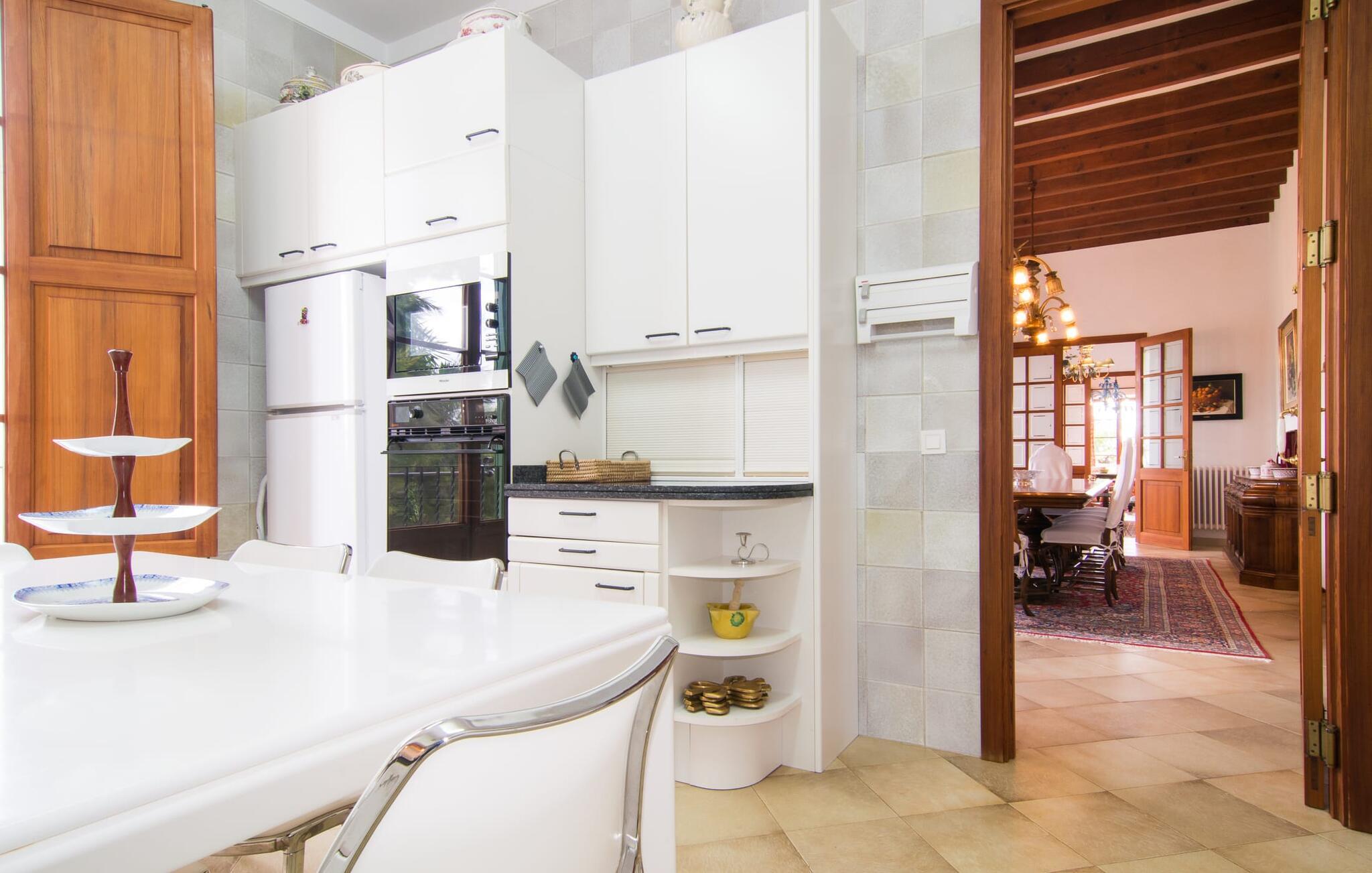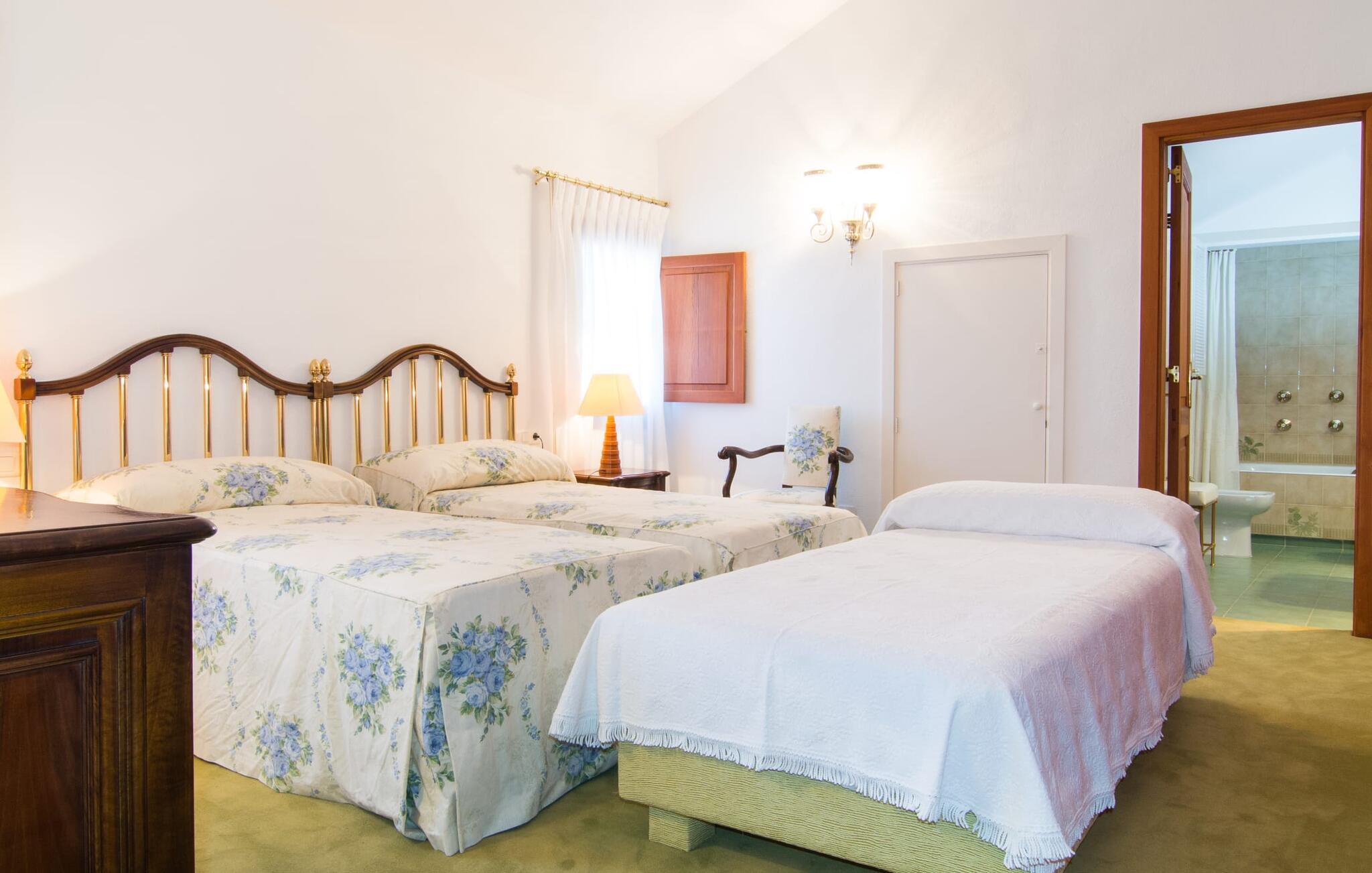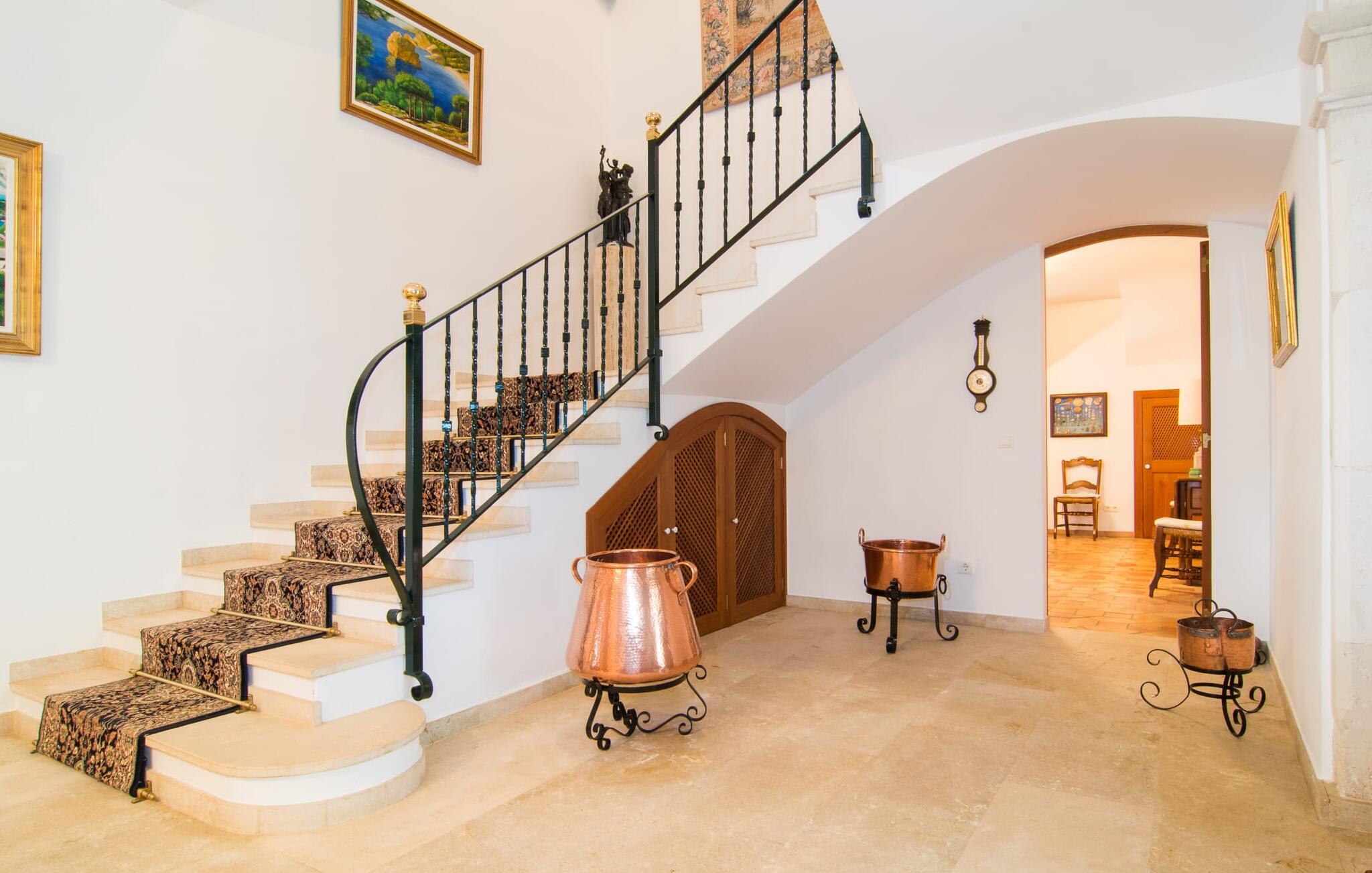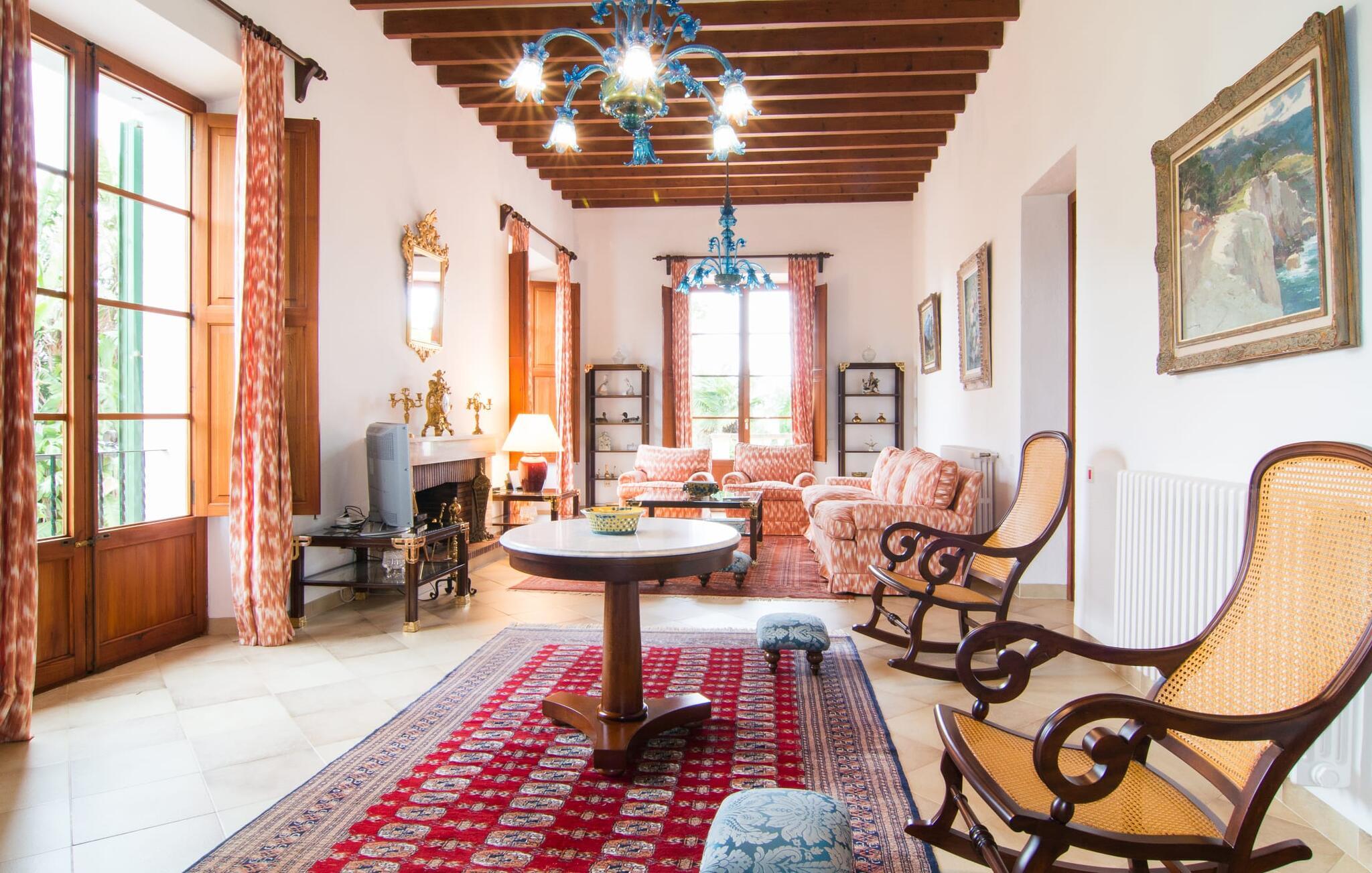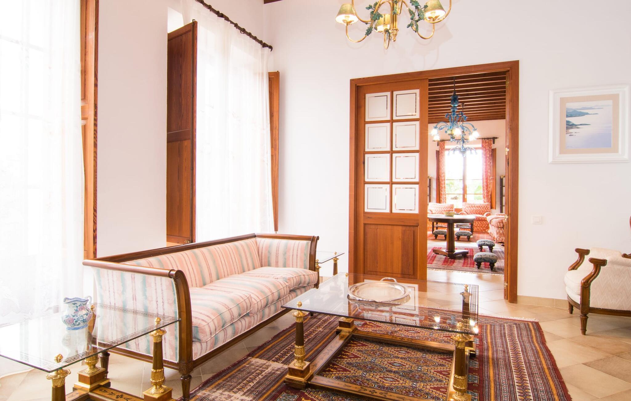 De rummelige værelser er møbleret med møbler af høj kvalitet, delvist antikke. Med et boligareal på næsten 1800 m² fordelt på to rummelige etager er fincaens indre lige så rummeligt som dets ydre. Op til 18 gæster kan sove trygt i i alt ni individuelt møblerede soveværelser. Der er også ni badeværelser med eget badeværelse. Flere lounges tilbyder yderligere retræter. Det lyse, fuldt udstyrede køkken tilbyder moderne bekvemmeligheder og et morgenmadsområde med smuk udsigt over parken. Finca Atalaia har også pålidelig mobiltelefondækning og god Wi-Fi overalt.