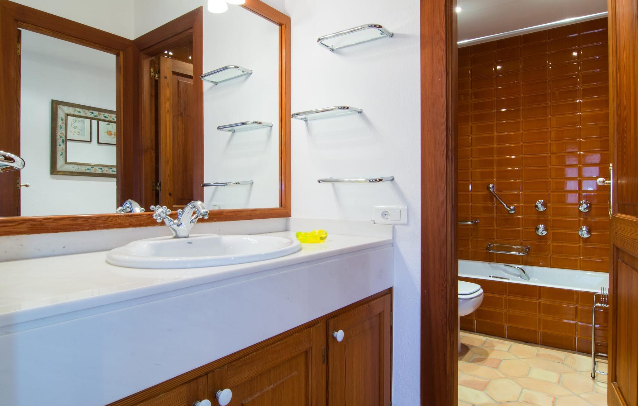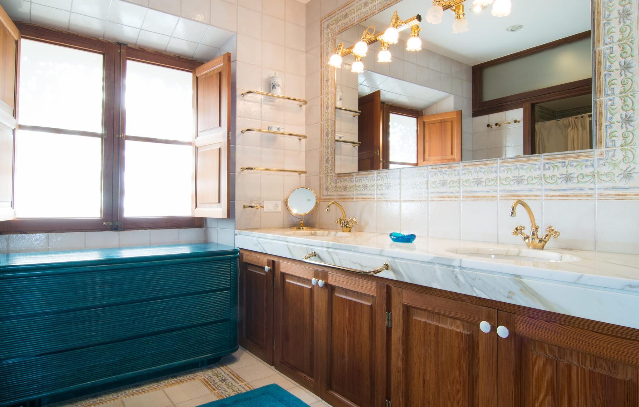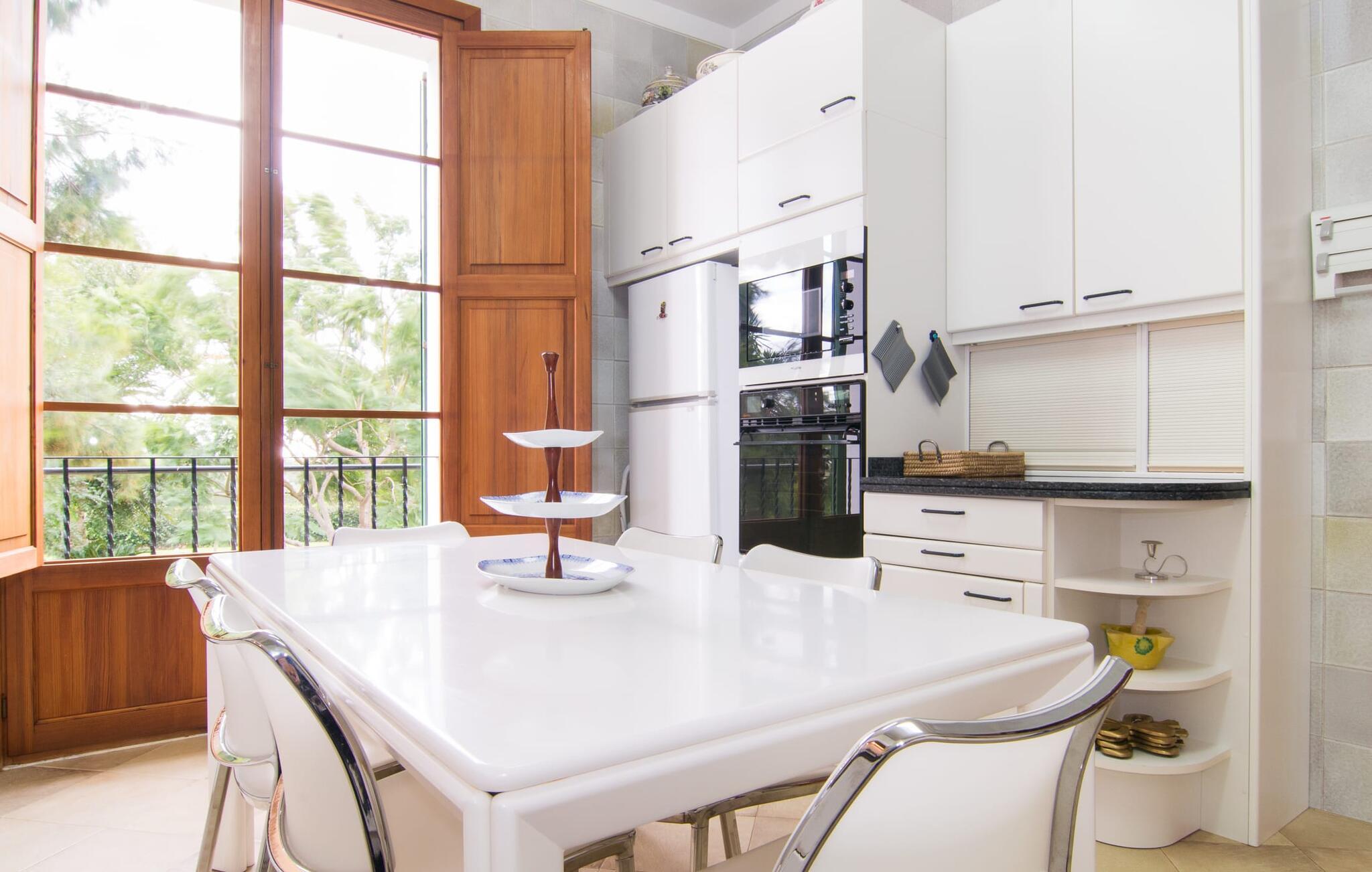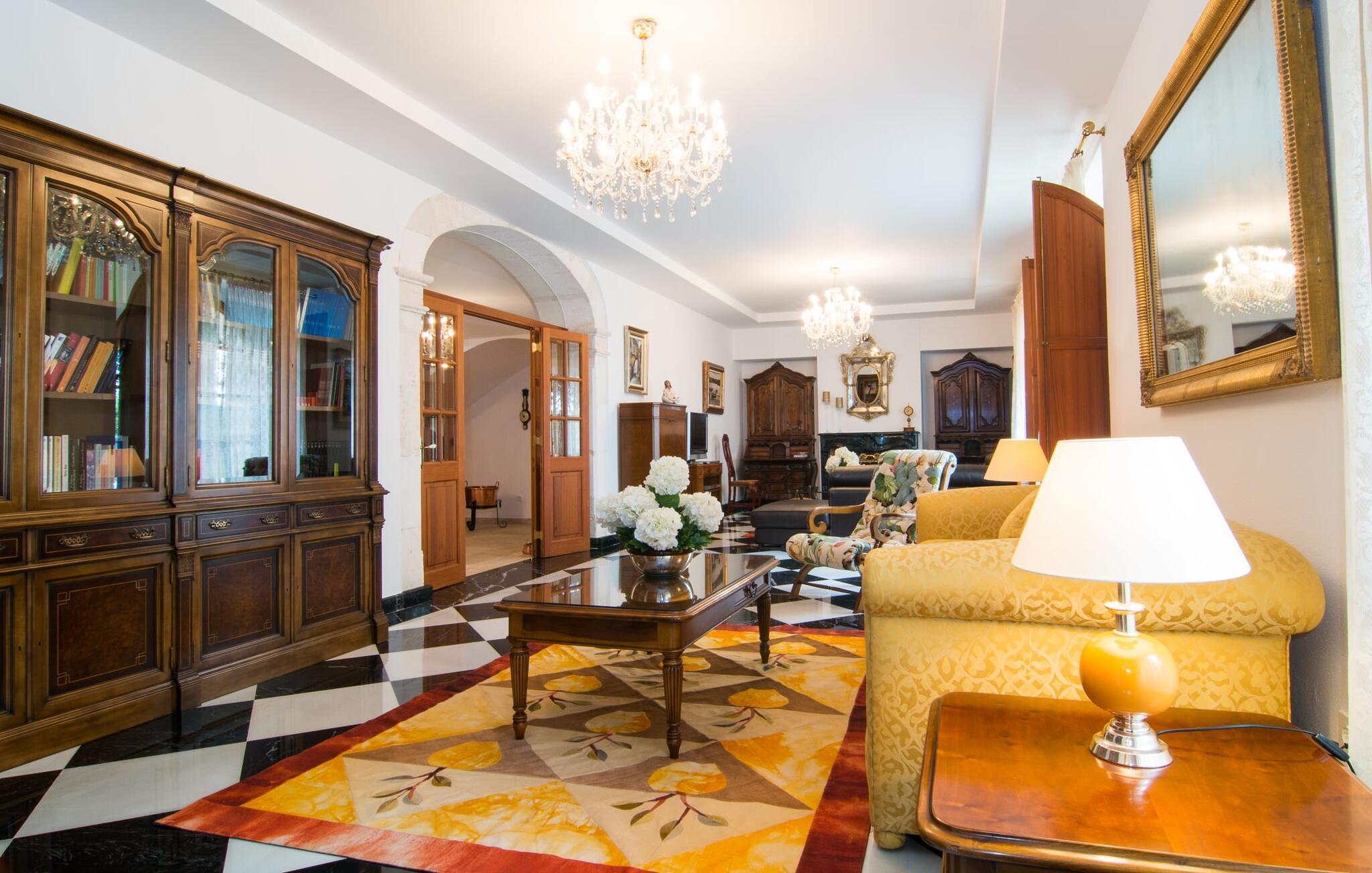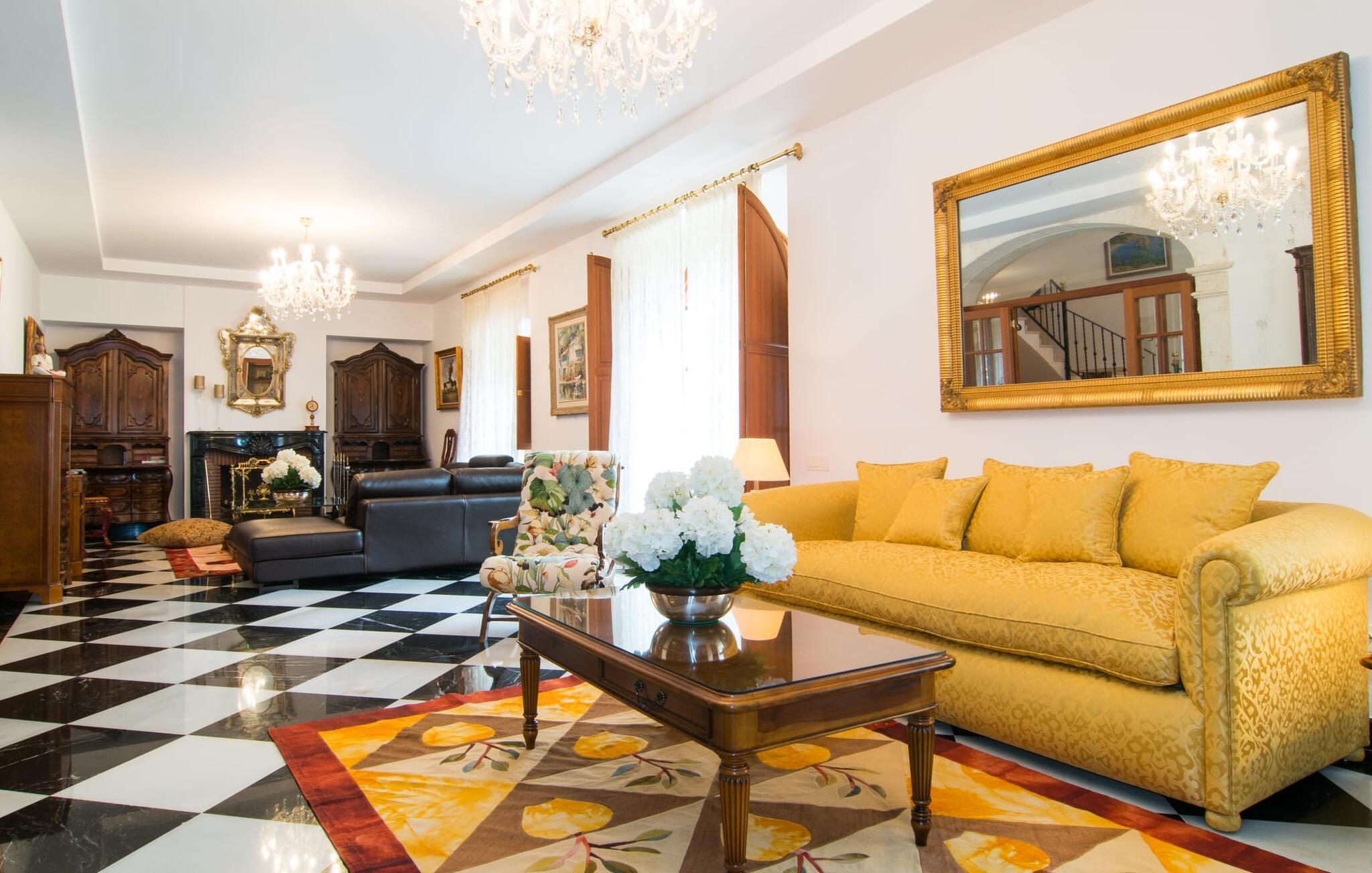 De rummelige værelser er møbleret med møbler af høj kvalitet, delvist antikke. Med et boligareal på næsten 1800 m² fordelt på to rummelige etager er fincaens indre lige så rummeligt som dets ydre. Op til 18 gæster kan sove trygt i i alt ni individuelt møblerede soveværelser. Der er også ni badeværelser med eget badeværelse. Flere lounges tilbyder yderligere retræter. Det lyse, fuldt udstyrede køkken tilbyder moderne bekvemmeligheder og et morgenmadsområde med smuk udsigt over parken. Finca Atalaia har også pålidelig mobiltelefondækning og god Wi-Fi overalt.