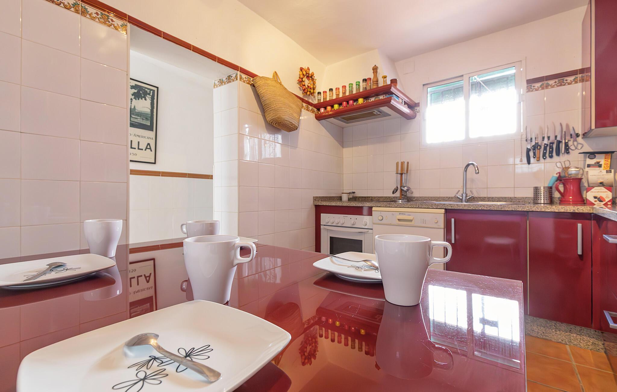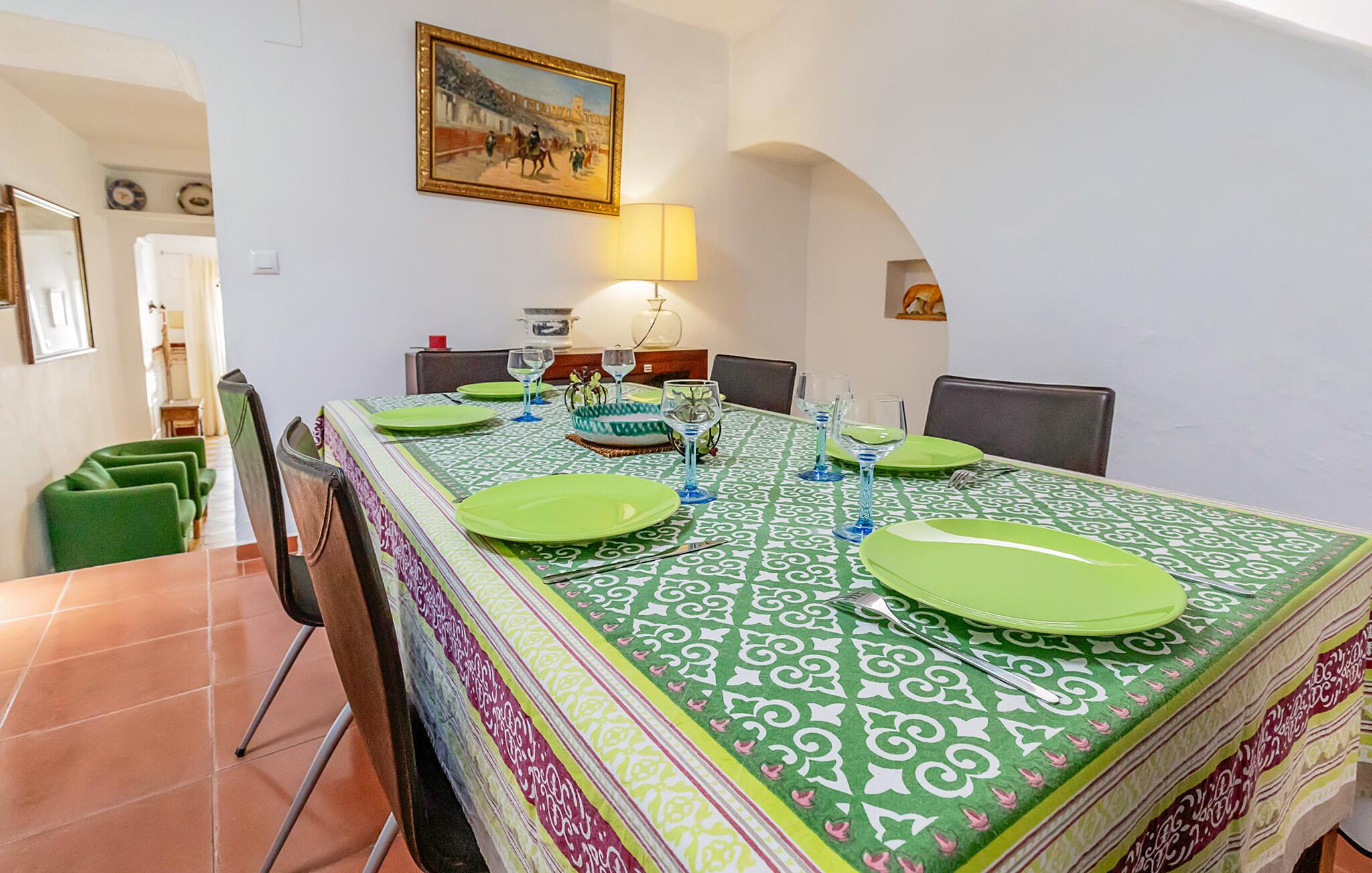 Glæd jer til en afslappende tid ikke langt fra havet i dette feriehus. Hvis I planlægger en ferie kun en kort køretur fra stranden, der også inkluderer masser af spændende aktiviteter, er dette hus det rette valg. Med middelhavsdetaljer tilbyder det en smuk ramme for jeres flugt fra hverdagen. Start dagen med en lækker morgenmad i det farverige køkken og glæd jer til hyggelige aftener i stuen. Den brede sandstrand inviterer jer til at tage lange gåture, slappe af i solen eller tilbringe forfriskende timer i Atlanterhavet. Mærk den blide brise, mens I lytter til bølgerne, eller nyd vandsport - hvad enten det er kitesurfing, sejlads eller stand-up paddleboarding. Oplev den historiske gamle bydel i Ayamonte med dens snoede gader, hvidkalkede huse og små tapasbarer, der serverer friskfanget fisk og regionale specialiteter. Kryds Guadiana-floden, som danner grænsen, med den lille færge og slentr gennem den portugisiske by Vila Real de Santo António.