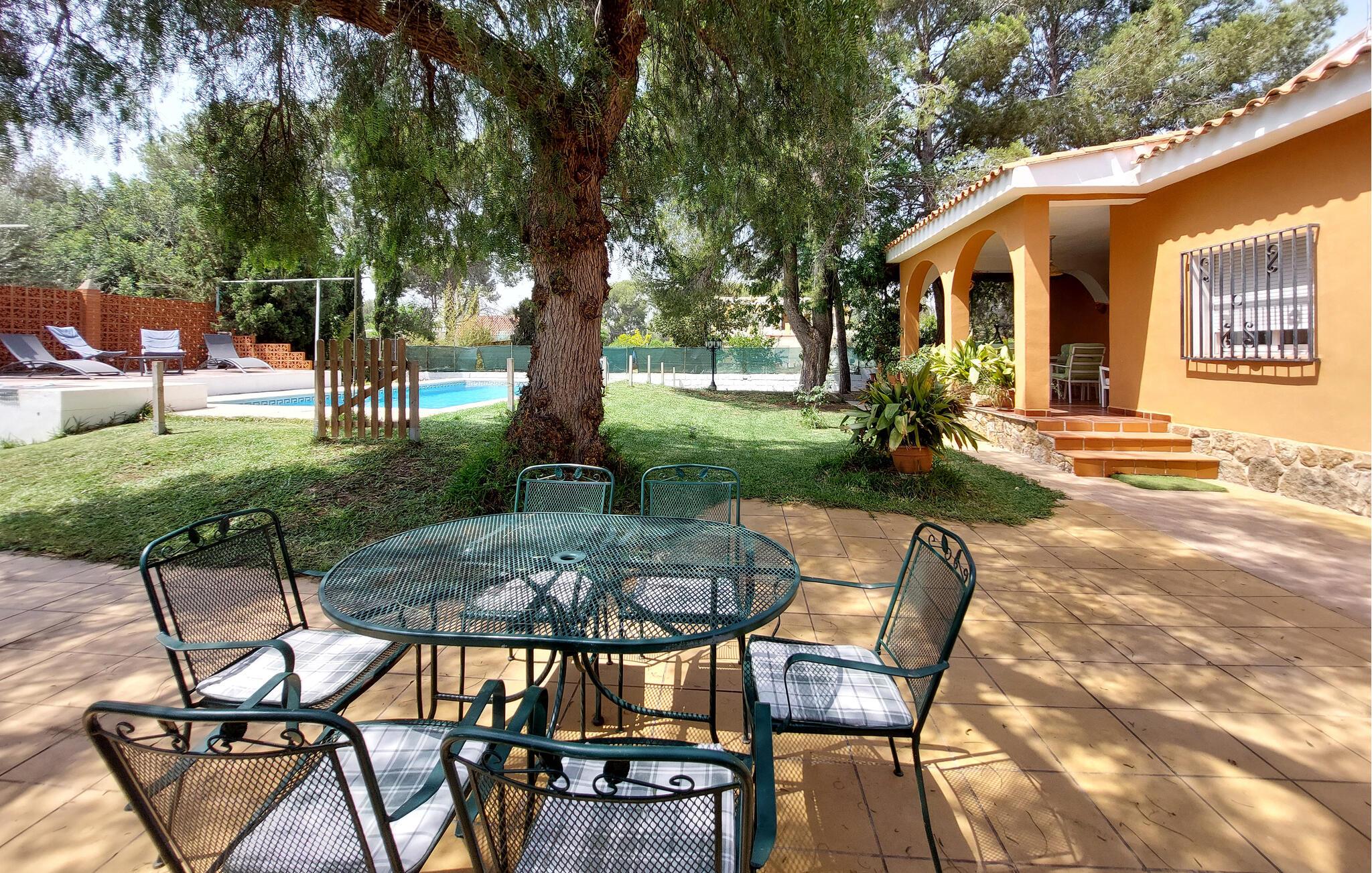 snup en frisk dukkert i poolen, når I har lyst, og genoplad på liggestolene. Efter en basketballkamp kan I samles på terrassen til en dejlig middag.