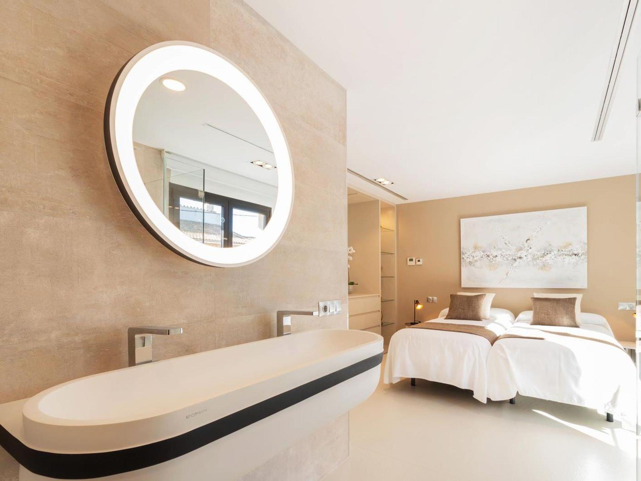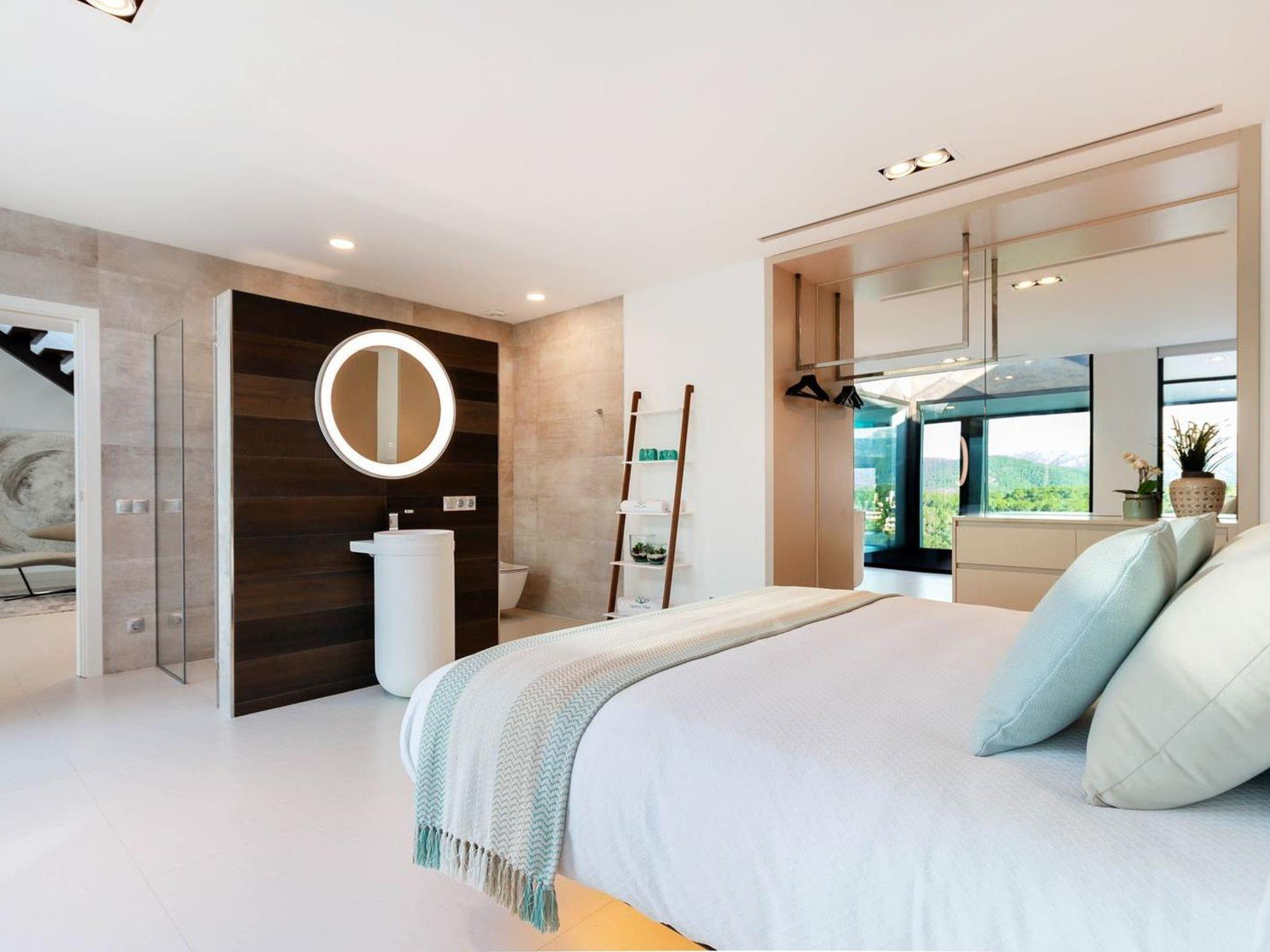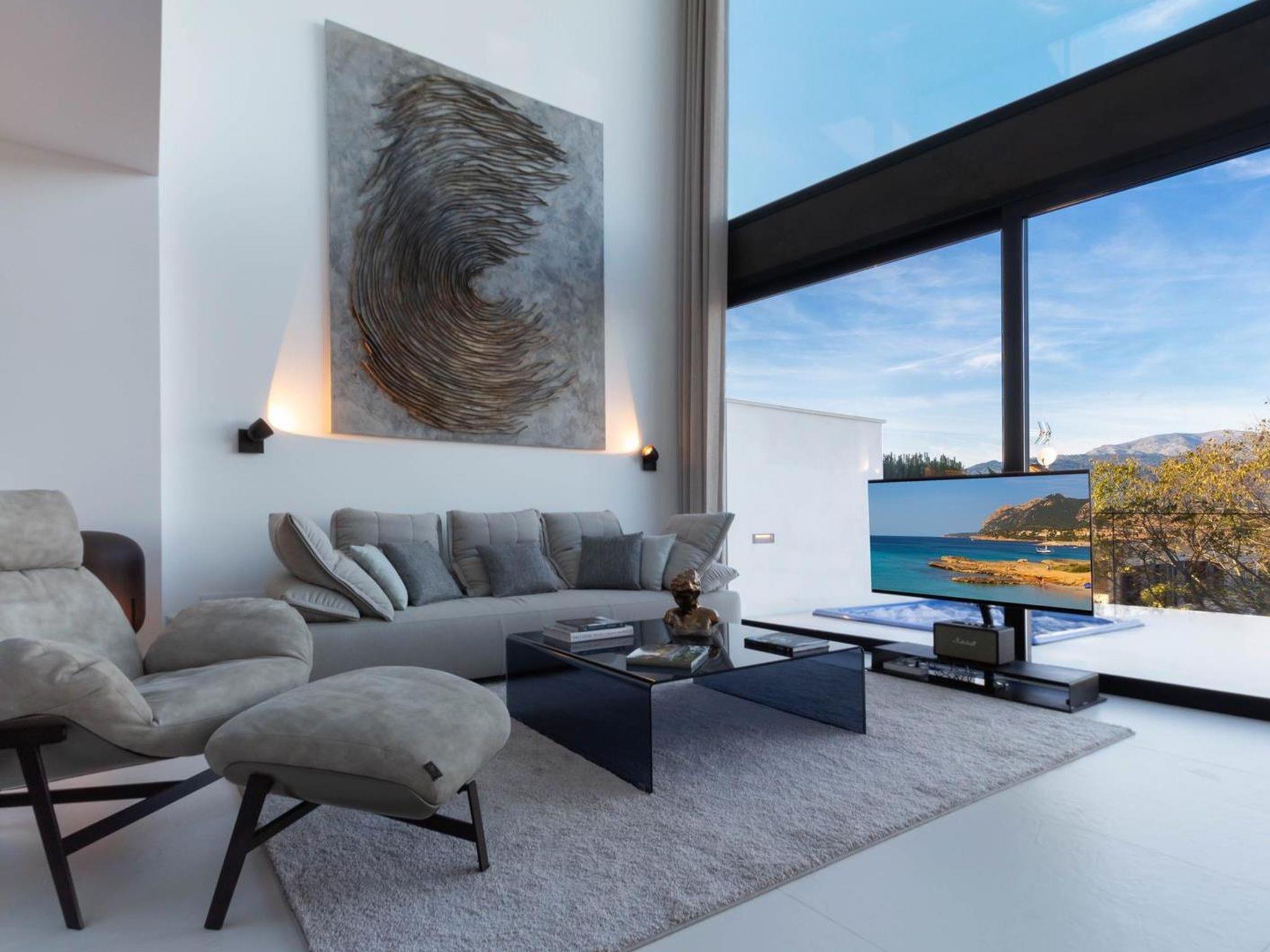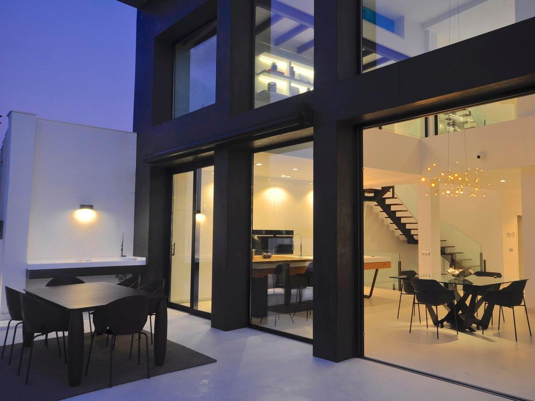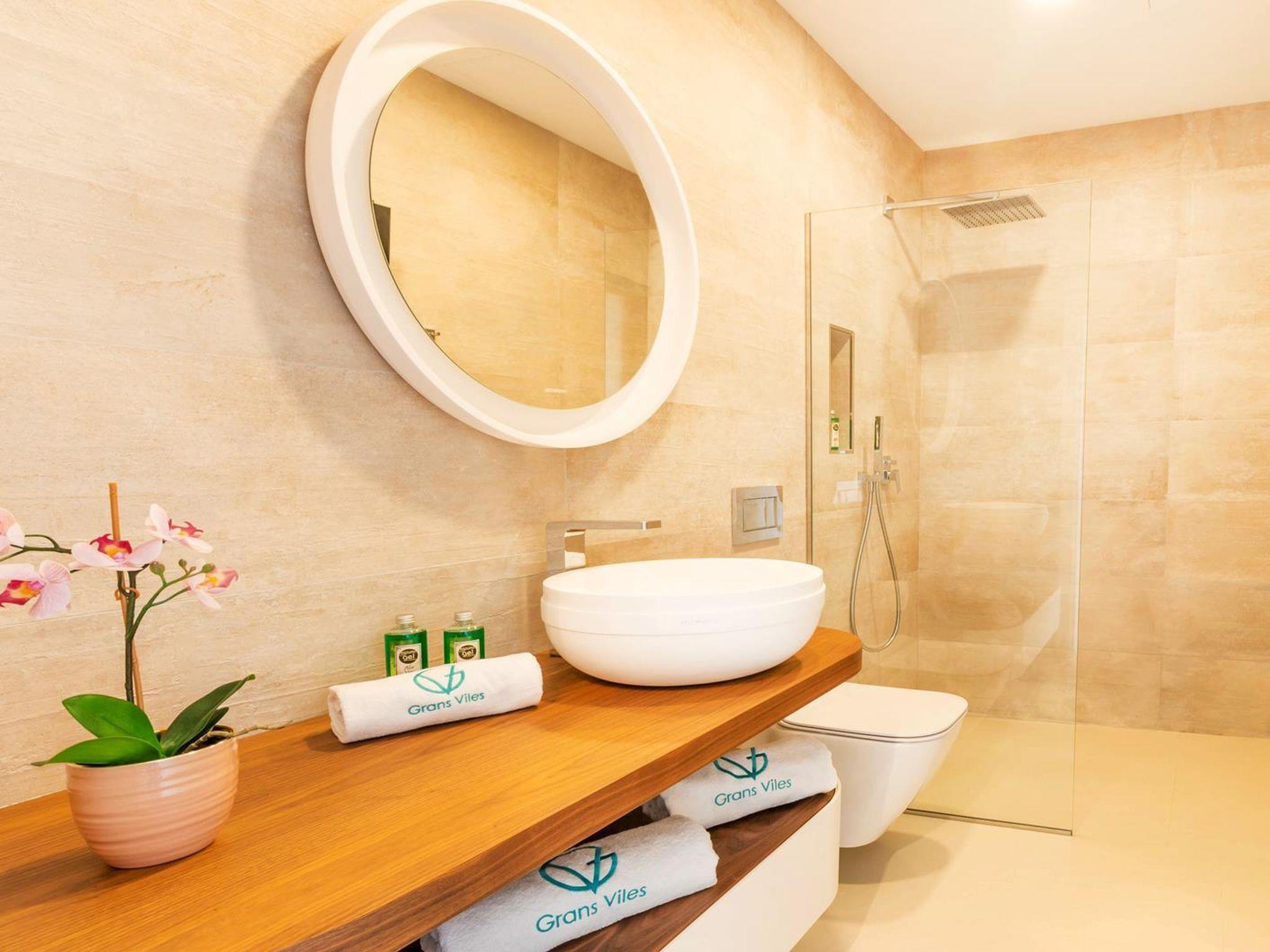 Búger: Large, modern, luxurious villa "Montblau", renovated in 2018. In the centre of Búger, in a quiet, sunny position, 15 km from the sea. Private: property 600 m2, swimming pool angular (5 x 3 m, seasonal availability: 01.Mar. - 31.Oct.). Outdoor shower, pergola, terrace, garden furniture, barbecue. In the house: internet access, WiFi, solarium, hot tub, central heating system, air conditioning, washing machine. Public parking on the road. Shop, restaurant 100 m, bus stop "Buger" 190 m, sandy beach 15 km. Please note: car recommended. Suitable for families, suitable for seniors baby equipment on request (included). Object suitable for 9 adults. The owner does not accept any youth groups. Airfield 40 km from the property.