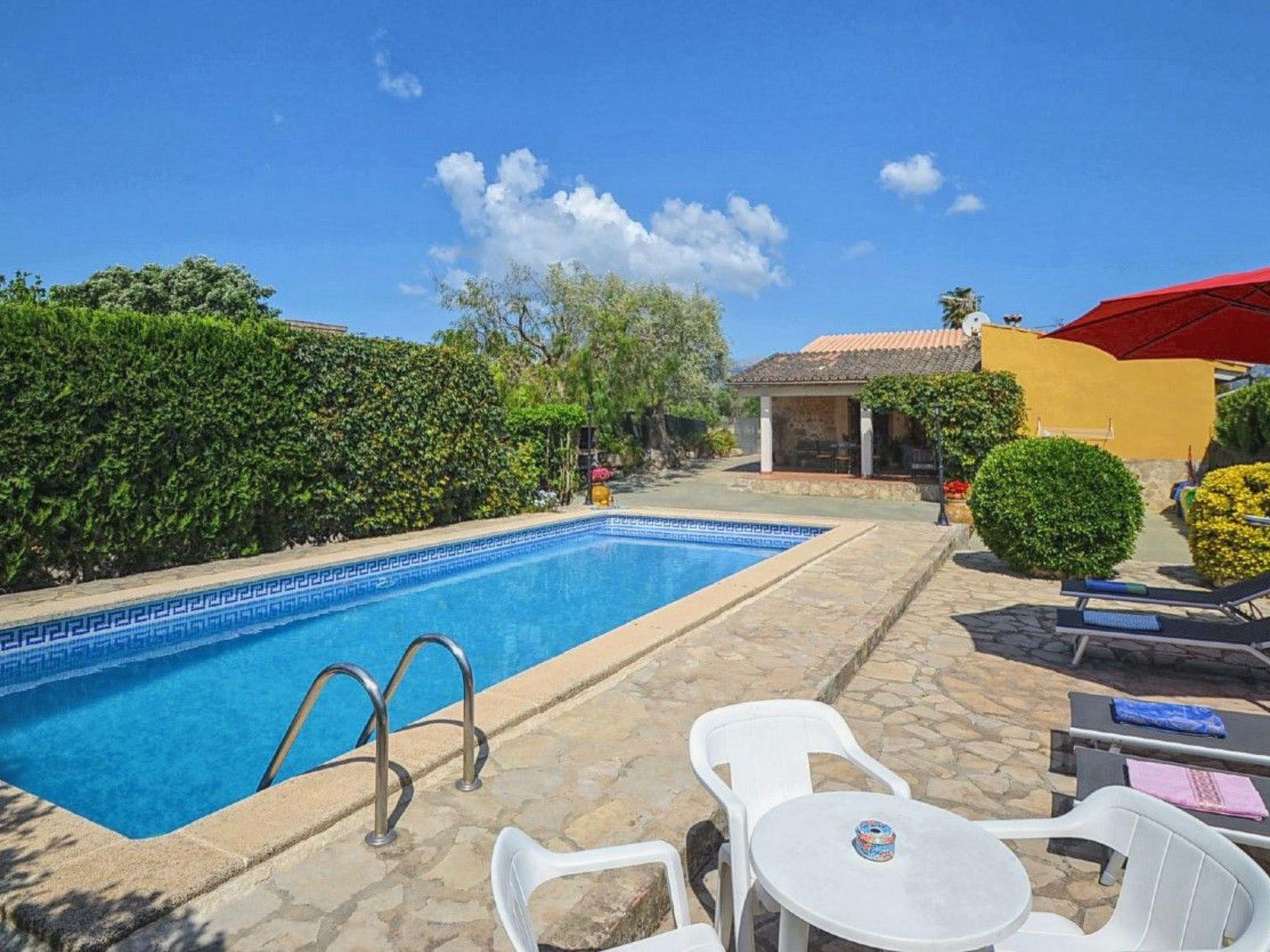The property is surrounded by a garden with fruit trees and offers beautiful views to the countryside and the mountains. It also has a nice veranda and a private swimming pool with solarium.