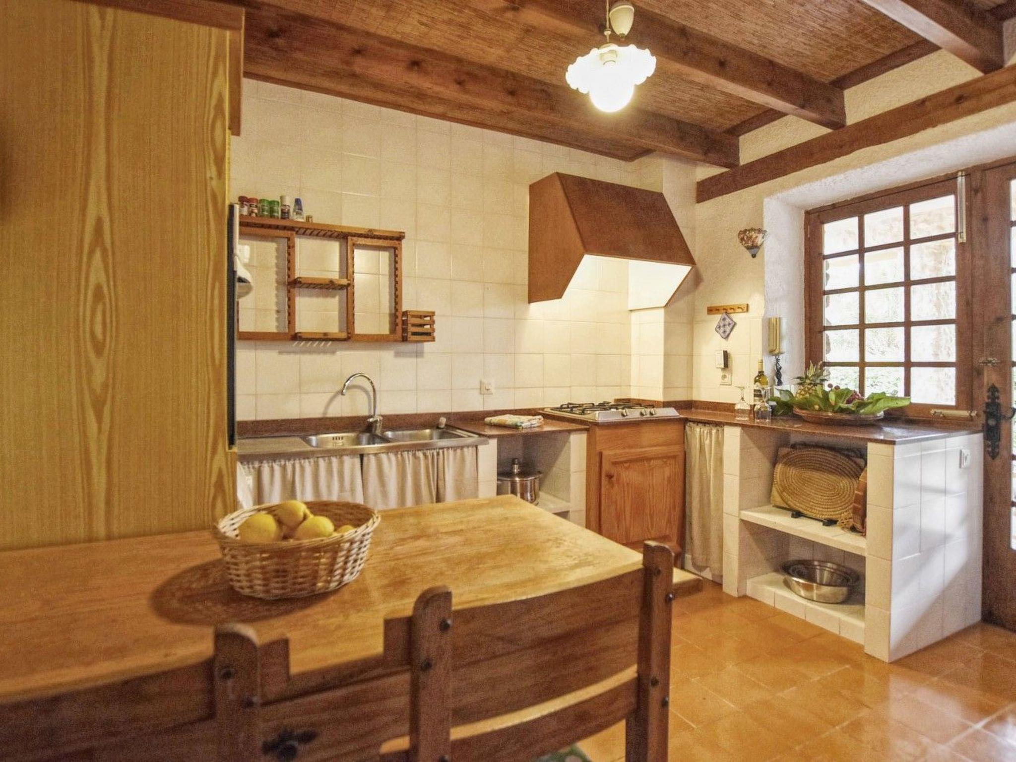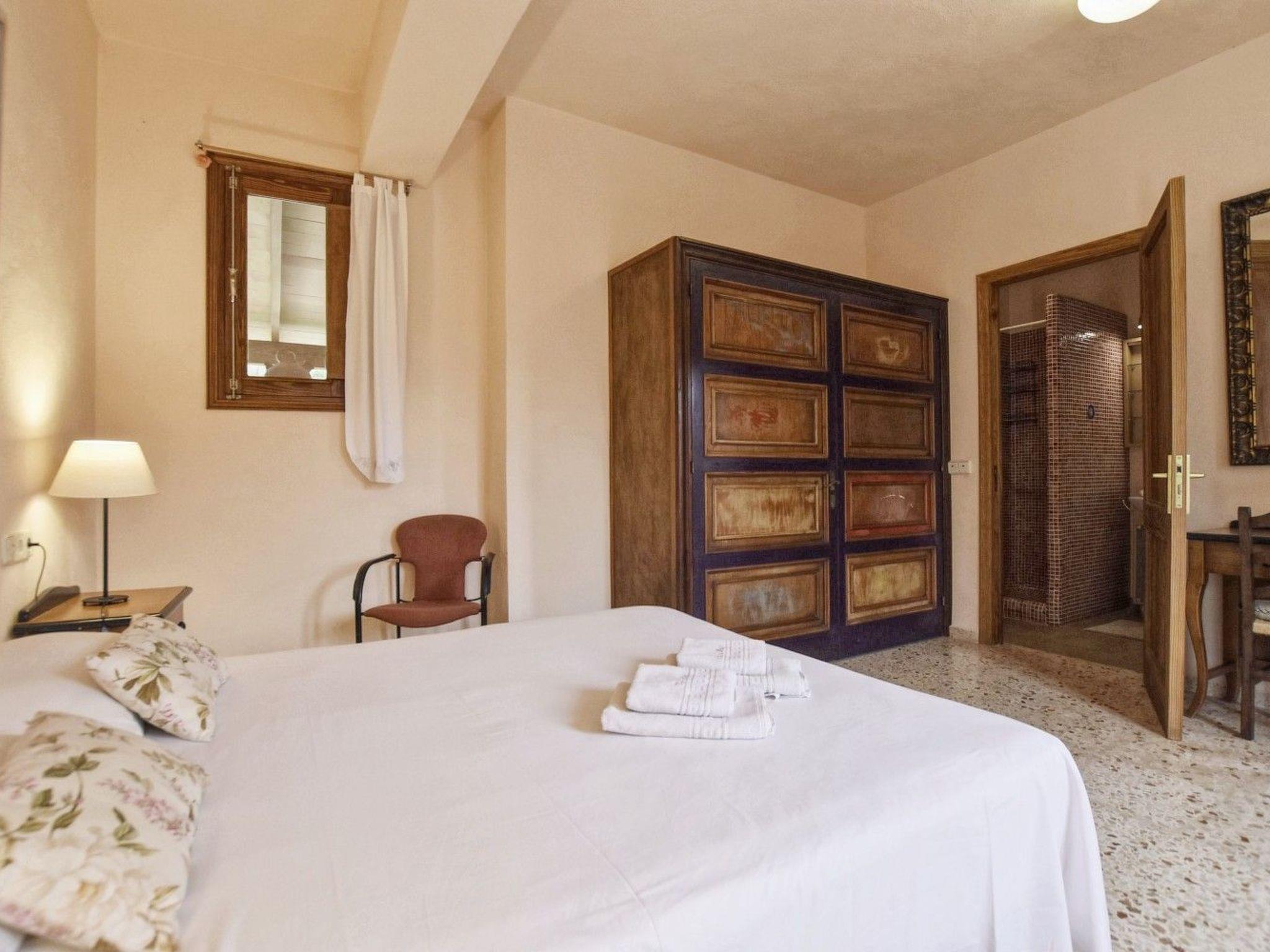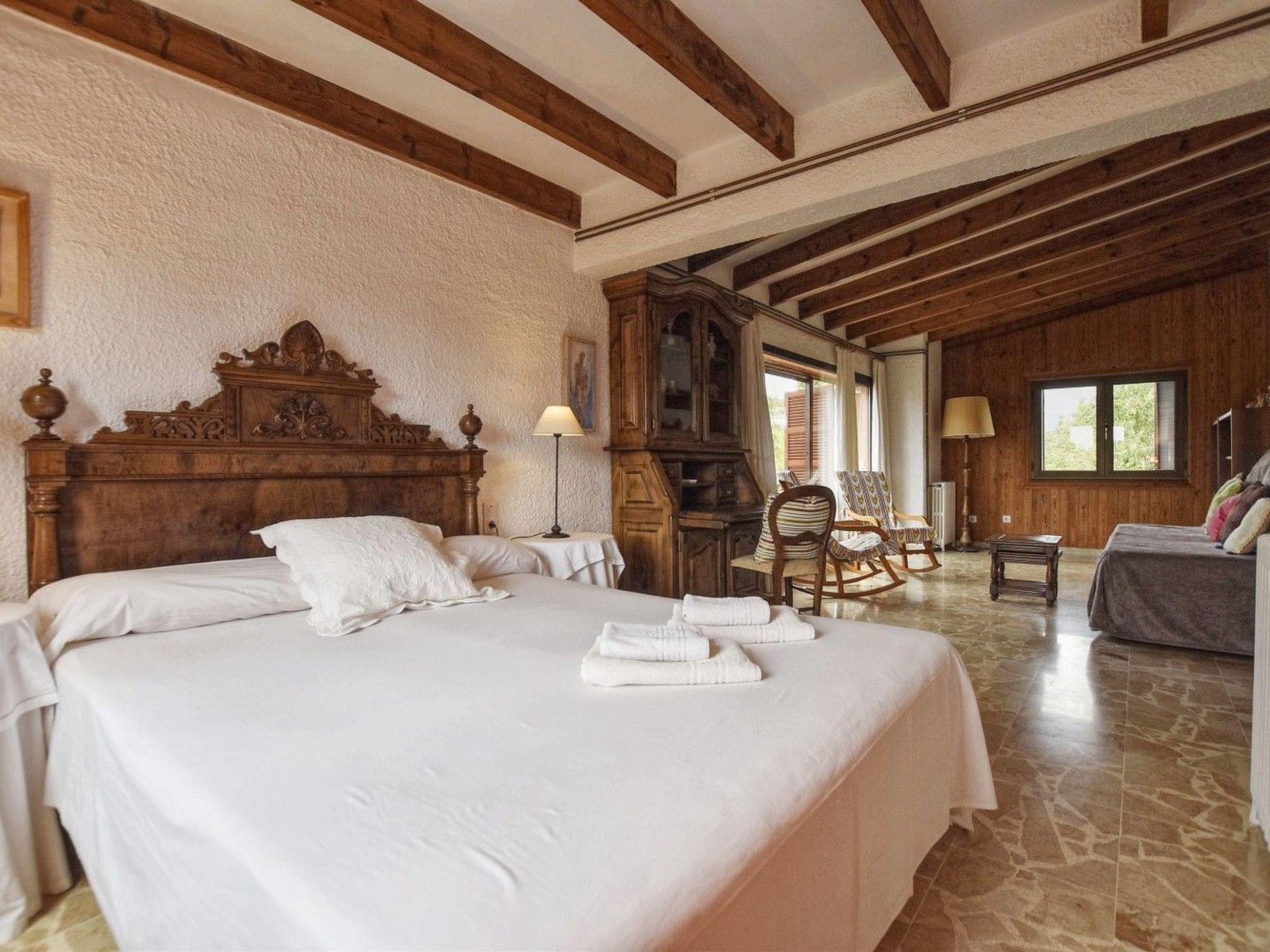 Rustic finca with a lot of character, about 13.000 m2 of extension, with almond trees, olive trees, carob trees, fig trees, orange trees and other fruit trees, rural Mediterranean atmosphere, very quiet, situated in Búger, 500 metres from the village, 35 km from Palma and 15 km from the beach of Alcúdia. Old renovated house, with two floors, 200 m2 of constructed surface, with a capacity for 8 adult persons. This beautiful and stately property has very well furnished interiors and large and spacious rooms. There is a large swimming pool, a solarium and absolute privacy in an atmosphere of peace and rest. Ideal for those looking for the tranquillity of the Majorcan countryside and only 12 km from the beaches of the north of the island.
