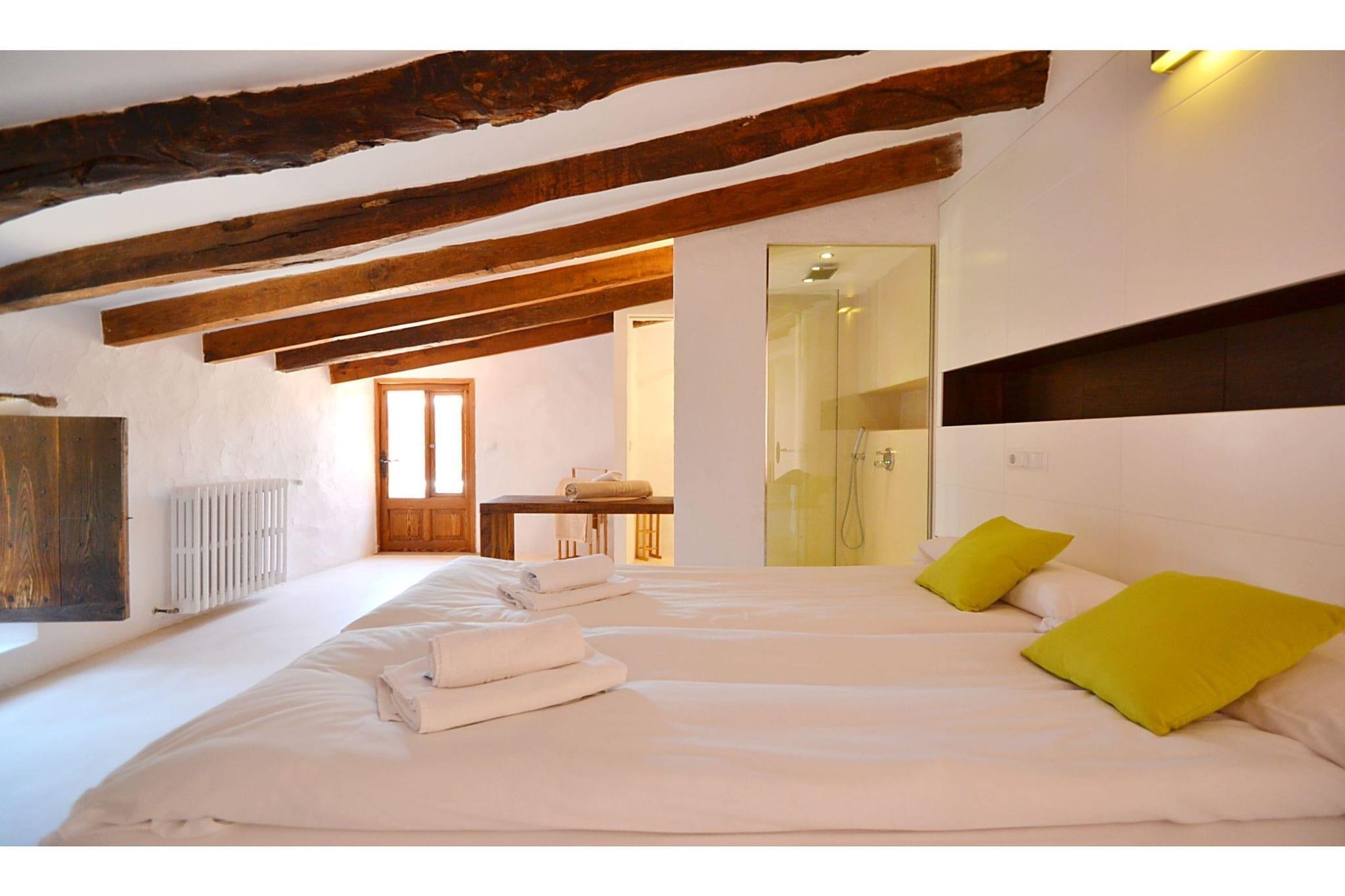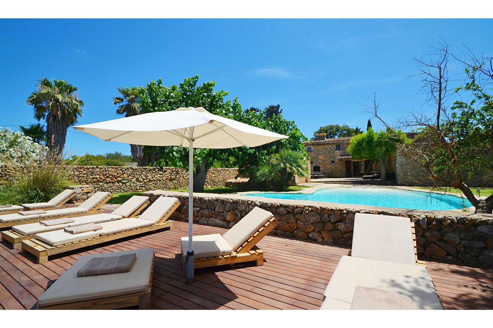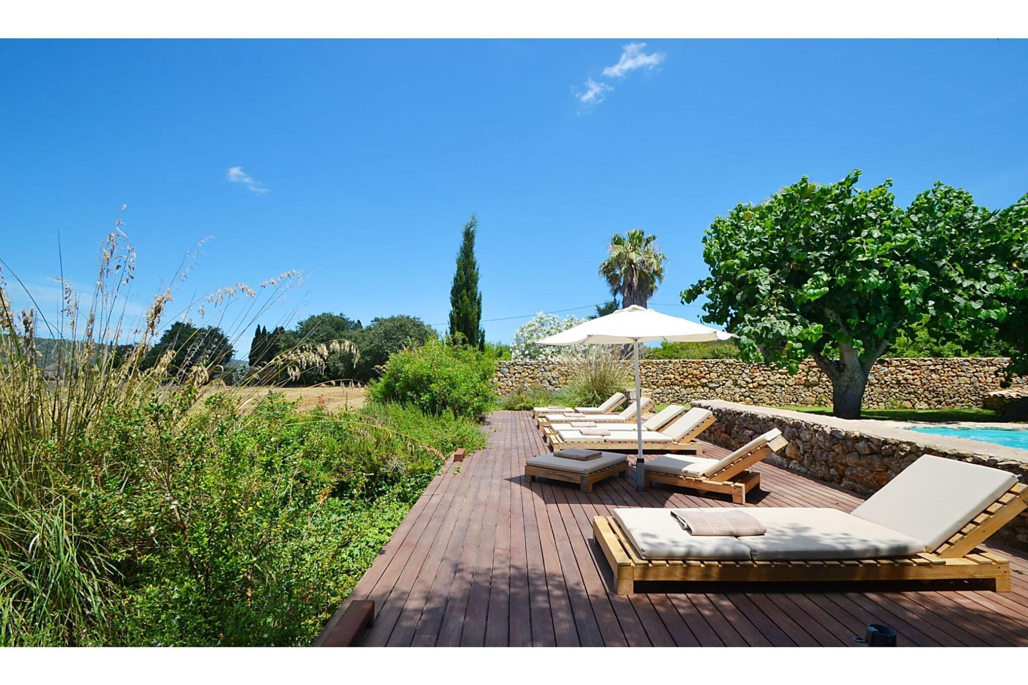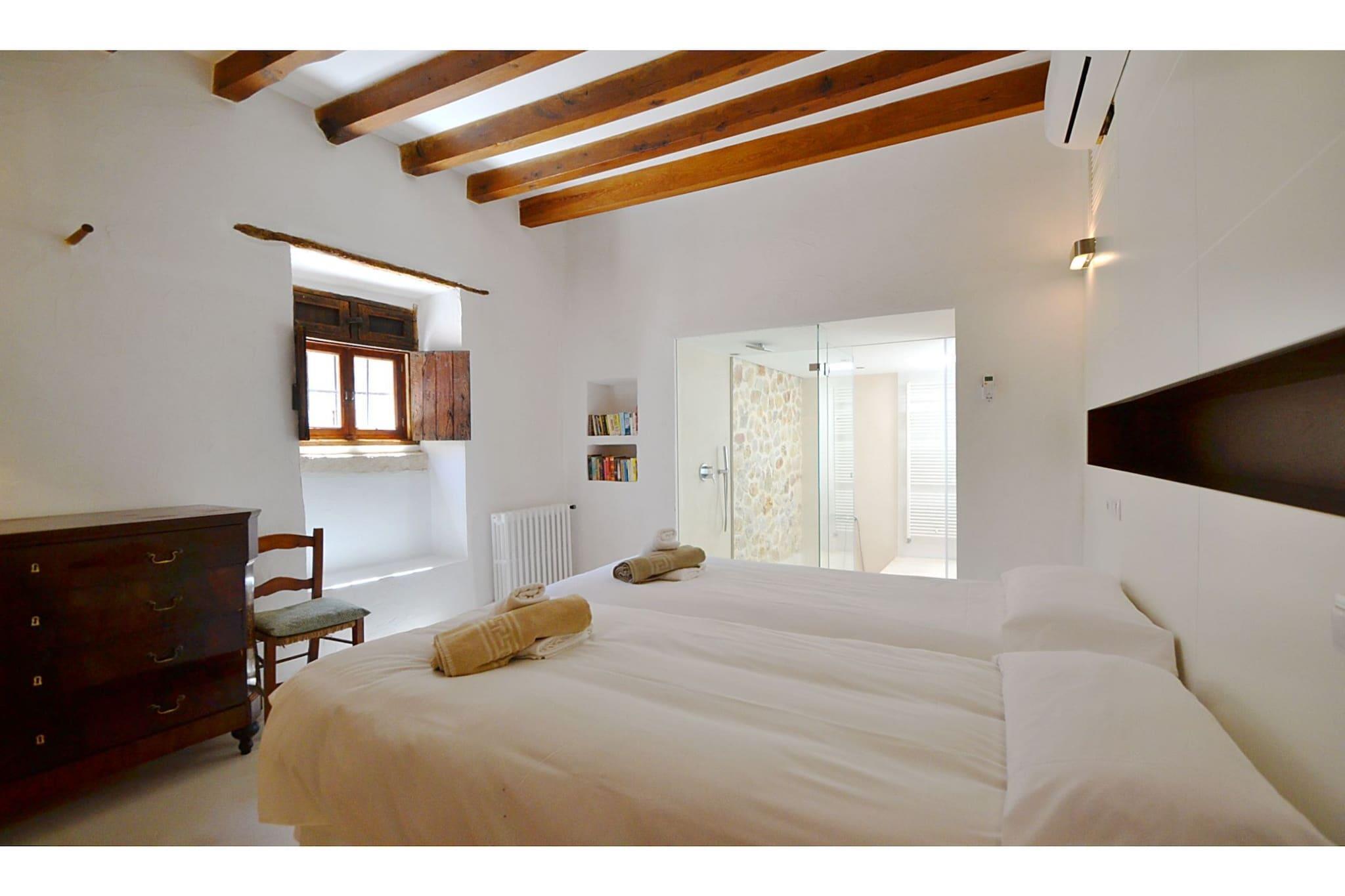 Villaen er beliggende i en meget lille landsby med kun fire huse. Her kan du nyde fuldstændig privatliv takket være den rolige ro, der omgiver området. Den oprindelige finca blev fuldstændig restaureret til et charmerende hus med en dejlig stemning. Gennem en grøn landevej kommer du til den smukke brostensbelagte gårdhave. Indendørs, de brolagte gulve, de originale stenvægge, terracottafliserne og egetræbjælkerne opretholder den smukke karakter af det smukke bondehus. Den rummelige stue på stuen er smuk og rummelig, med en dekorativ åben pejs. Spisestuen har franske døre, der fører til terrassen og swimmingpoolen. Det klassiske køkken med originalt håndvask er udstyret med moderne udstyr. I soveværelserne ses også de originale træbjælker. Badeværelserne er klassisk indrettede og lever op til alle moderne ønsker. På gården er der en stor overdækket terrasse med et stort spisebord og en fast grill / åben pejs. Fra den smukke swimmingpool har du udsigt over det grønne, kuperede område. Bulger er det mindste samfund (8.27 m2) på Mallorca. På grund af sin beliggenhed på Es Pujol-bakken har du en endeløs udsigt udenfor, samt udsigt til den maleriske landsby selv.