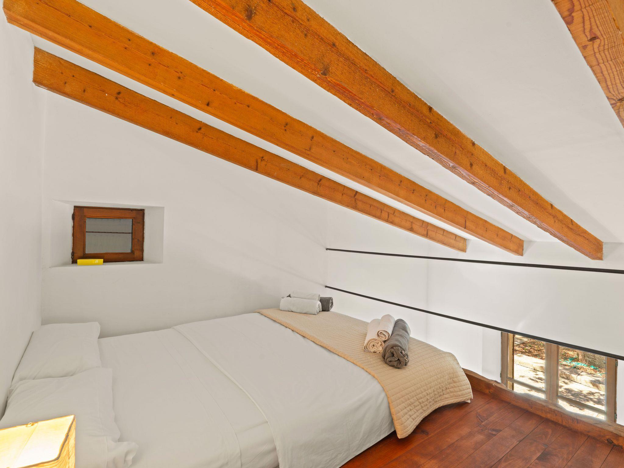 Das Haupthaus verfügt über zwei Schlafzimmer und zwei Badezimmer, während die Casita ein Schlafzimmer in der oberen Etage mit eigenem Bad bietet. Die Finca besticht durch ihre gemütliche Atmosphäre, mit einem hellen Wohnzimmer, geräumigen Schlafzimmern und rustikalen Möbeln, die eine warme und komfortable Umgebung schaffen.
