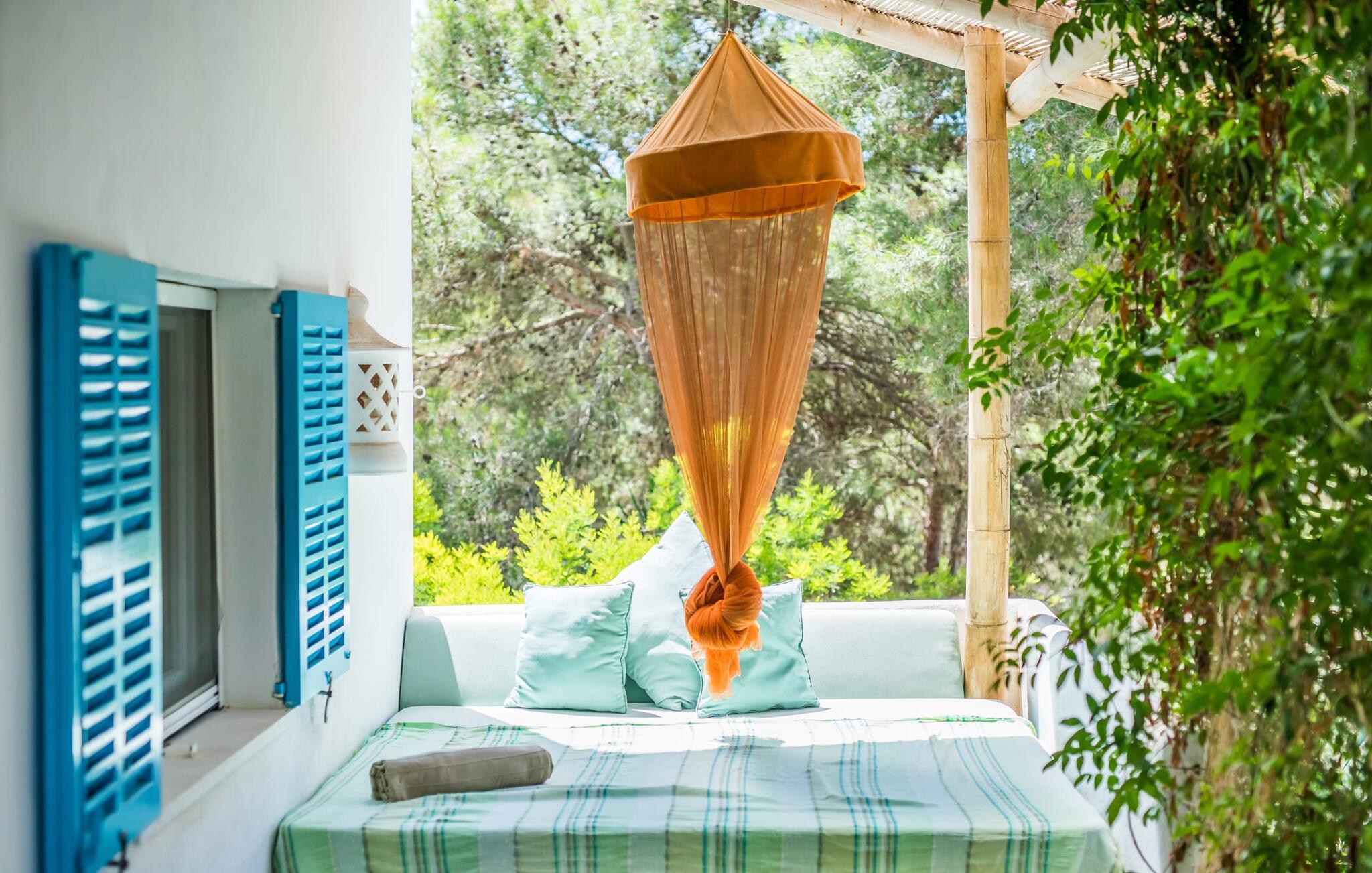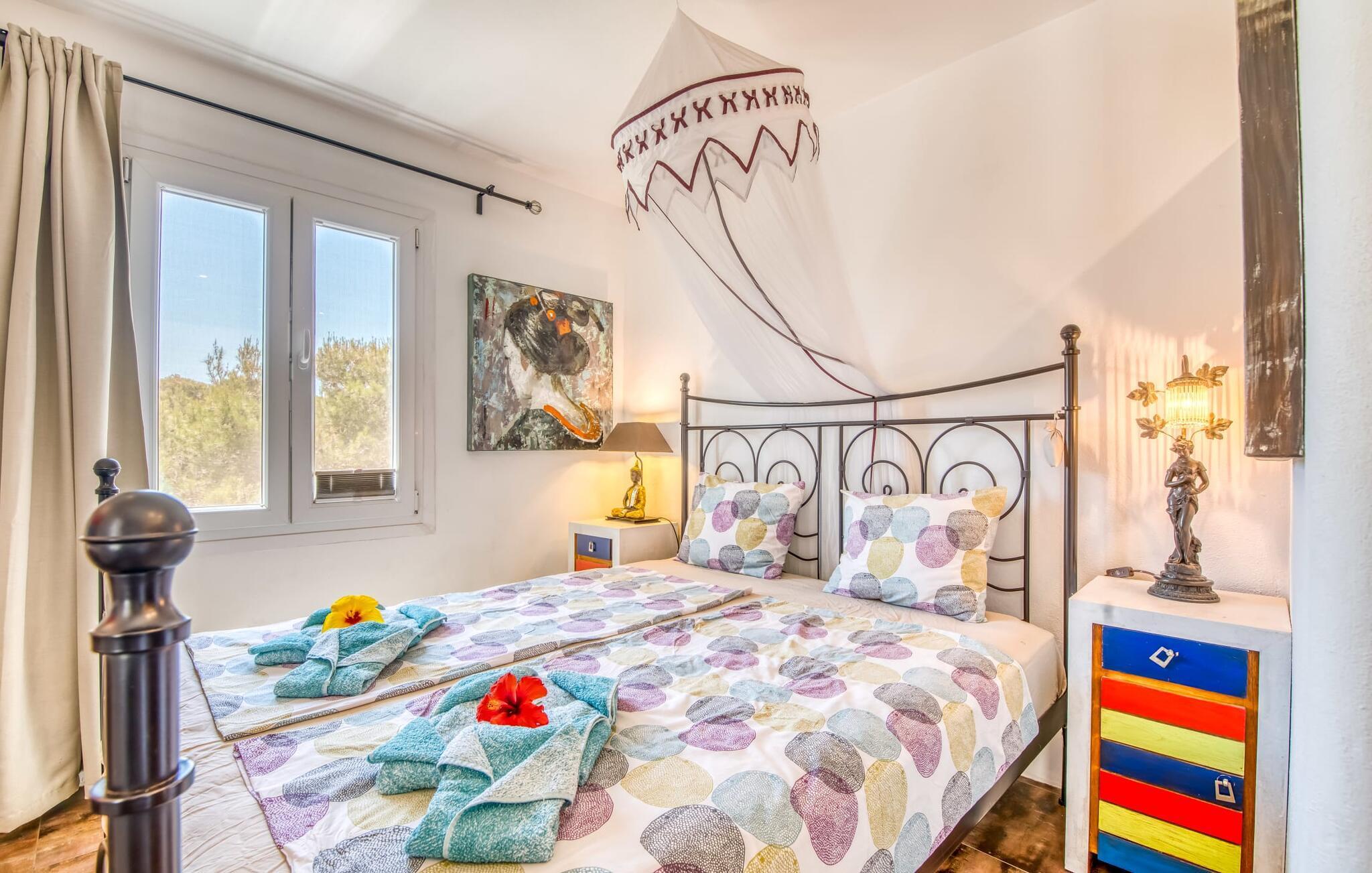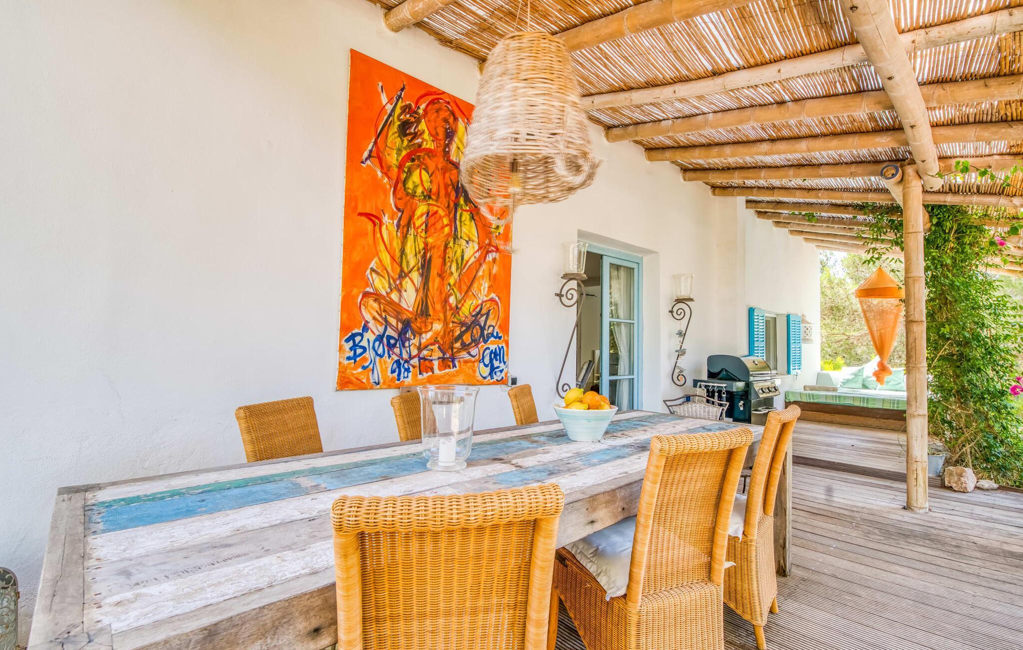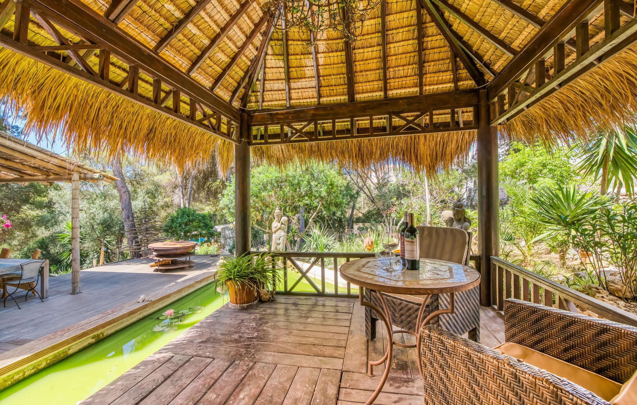 Billederne taler for sig selv: Feriehuset "Bamboo" er omgivet af frodig vegetation nær kysten på det sydlige Mallorca og emmer af ren livsglæde i hvert hjørne. Huset i Ibiza-stil byder på flere komfortabelt møblerede afslapningsområder, hvor du kan blive hængende og slappe af. Takket være taget forbliver den lille pool kølig selv i de varme sommermåneder. Et andet højdepunkt: et par skridt, og du sidder i en kærligt designet asiatisk verden med en dam og en overdækket træterrasse. Det er svært at tro, at det kun er et par minutters gang gennem fyrreskoven til Middelhavskysten. Cala Figuera byder på shopping og spisning med en smuk udsigt over havnen. Interiøret i dette feriehus til 6 gæster er krydret med originale detaljer og nøje udvalgte møbler fra hele verden. Boligarealet er fordelt på tre etager. I stueetagen er der stue med åbent køkken og udgang til terrassen ved poolen, soveværelse med dobbeltseng og badeværelse. En trappe i indgangspartiet fører til anden sal. Her finder du endnu en hyggelig stue med åbent køkken og spiseplads, soveværelse med dobbeltseng og badeværelse samt terrasse med overdækket chill-out område. Fra denne terrasse fører en udvendig trappe op til en rummelig tagterrasse med sommerkøkken, en hyggelig chill-out lounge og liggestole. Det tredje soveværelse ligger lige ved siden af tagterrassen og har eget badeværelse. Fincaen grænser op til naturparken Mondragó og ligger kun få minutters gang fra havnen i Cala Figuera med restauranter og små butikker. Sandstranden S'Amarador kan nås på 10 minutter i bil. Santanyí ligger kun 6 km væk og byder på gode indkøbsmuligheder, supermarkeder og et ugentligt marked. Dette er et Fincallorca feriehus.