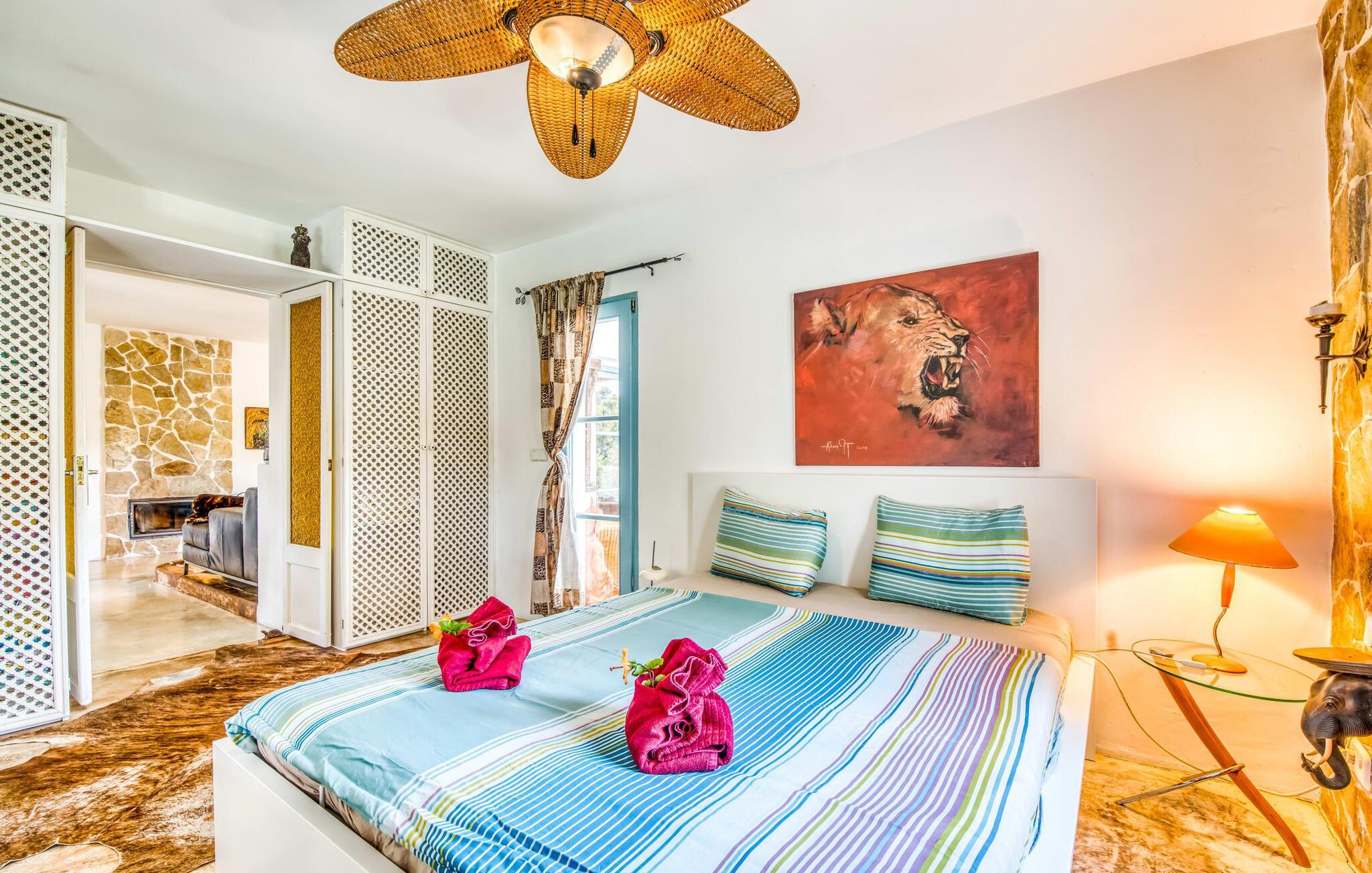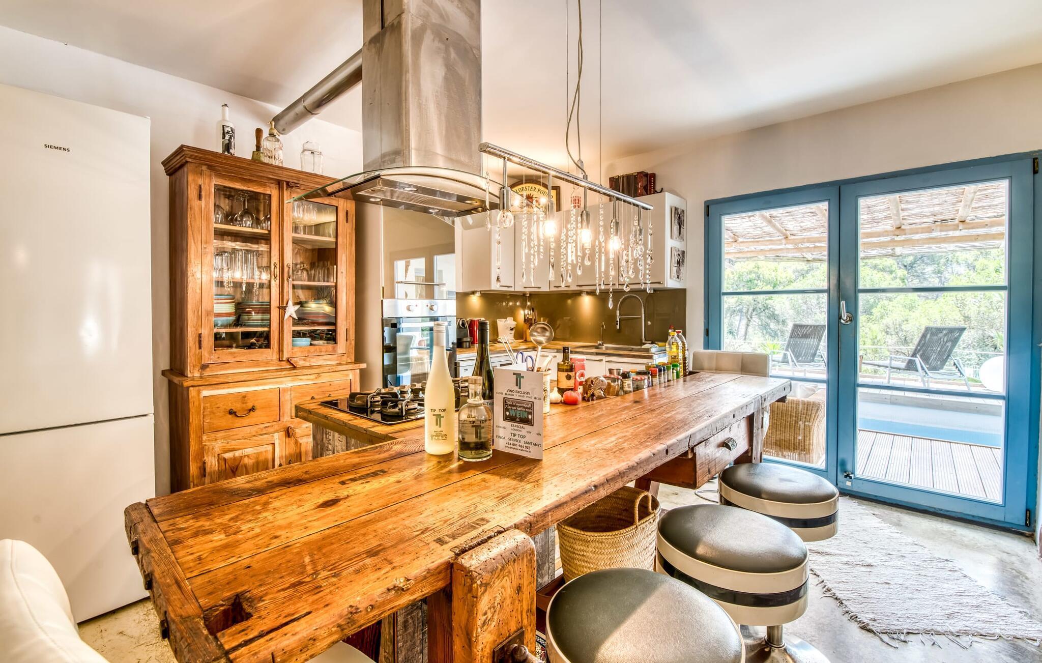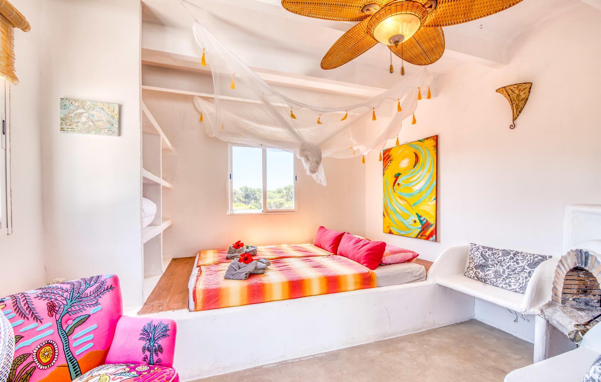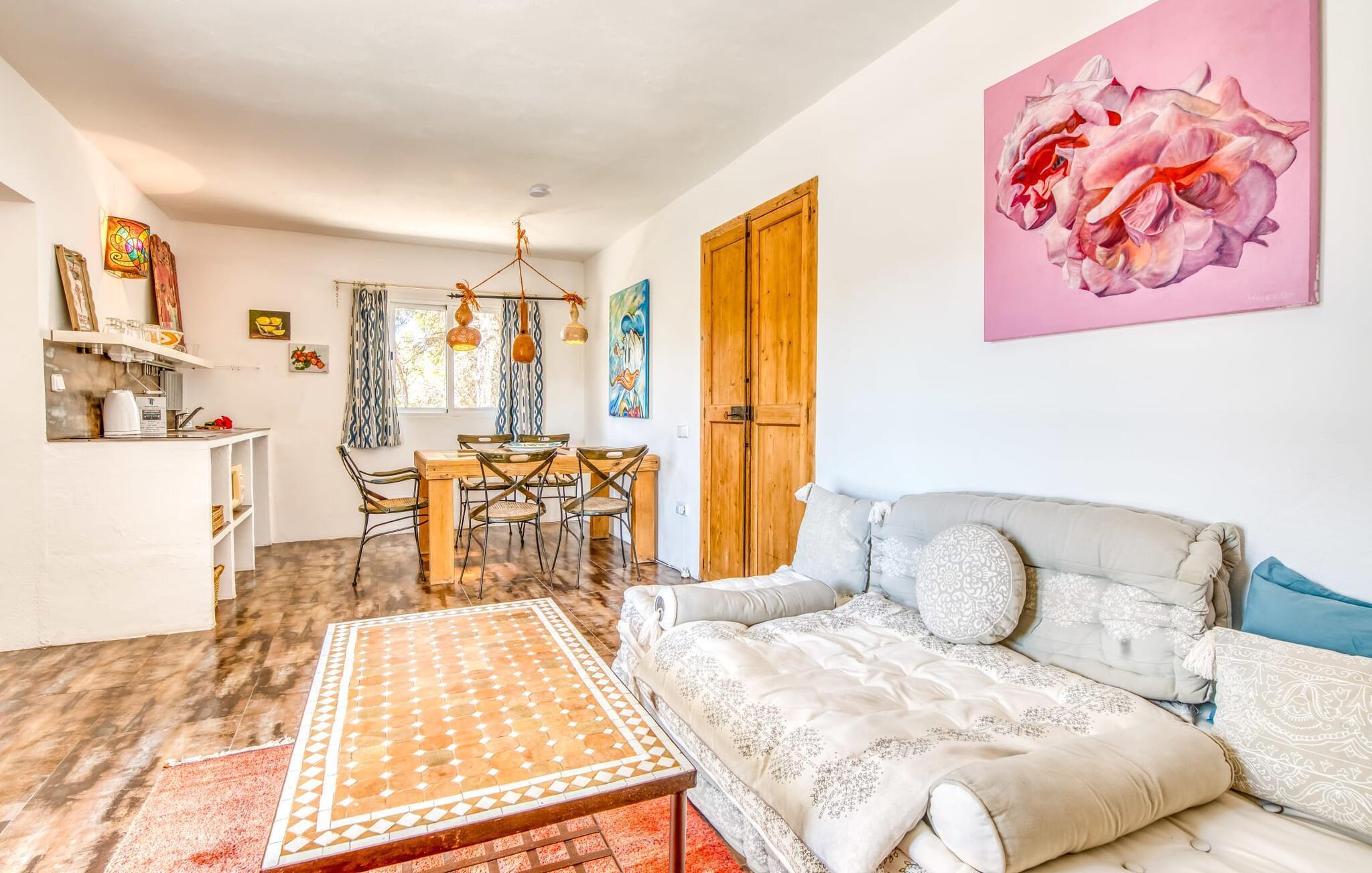 Billederne taler for sig selv: Feriehuset "Bamboo" er omgivet af frodig vegetation nær kysten på det sydlige Mallorca og emmer af ren livsglæde i hvert hjørne. Huset i Ibiza-stil byder på flere komfortabelt møblerede afslapningsområder, hvor du kan blive hængende og slappe af. Takket være taget forbliver den lille pool kølig selv i de varme sommermåneder. Et andet højdepunkt: et par skridt, og du sidder i en kærligt designet asiatisk verden med en dam og en overdækket træterrasse. Det er svært at tro, at det kun er et par minutters gang gennem fyrreskoven til Middelhavskysten. Cala Figuera byder på shopping og spisning med en smuk udsigt over havnen. Interiøret i dette feriehus til 6 gæster er krydret med originale detaljer og nøje udvalgte møbler fra hele verden. Boligarealet er fordelt på tre etager. I stueetagen er der stue med åbent køkken og udgang til terrassen ved poolen, soveværelse med dobbeltseng og badeværelse. En trappe i indgangspartiet fører til anden sal. Her finder du endnu en hyggelig stue med åbent køkken og spiseplads, soveværelse med dobbeltseng og badeværelse samt terrasse med overdækket chill-out område. Fra denne terrasse fører en udvendig trappe op til en rummelig tagterrasse med sommerkøkken, en hyggelig chill-out lounge og liggestole. Det tredje soveværelse ligger lige ved siden af tagterrassen og har eget badeværelse. Fincaen grænser op til naturparken Mondragó og ligger kun få minutters gang fra havnen i Cala Figuera med restauranter og små butikker. Sandstranden S'Amarador kan nås på 10 minutter i bil. Santanyí ligger kun 6 km væk og byder på gode indkøbsmuligheder, supermarkeder og et ugentligt marked. Dette er et Fincallorca feriehus.