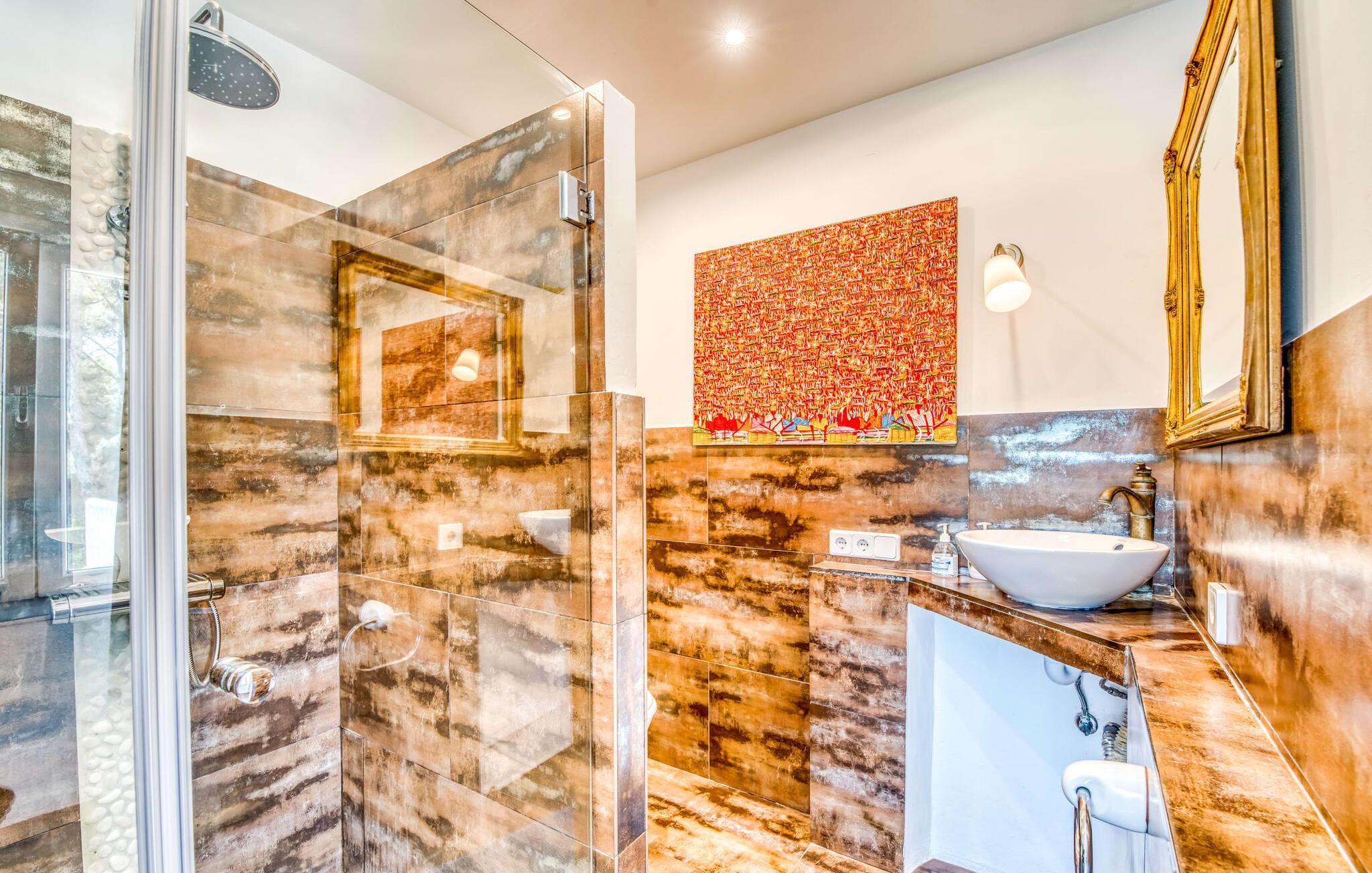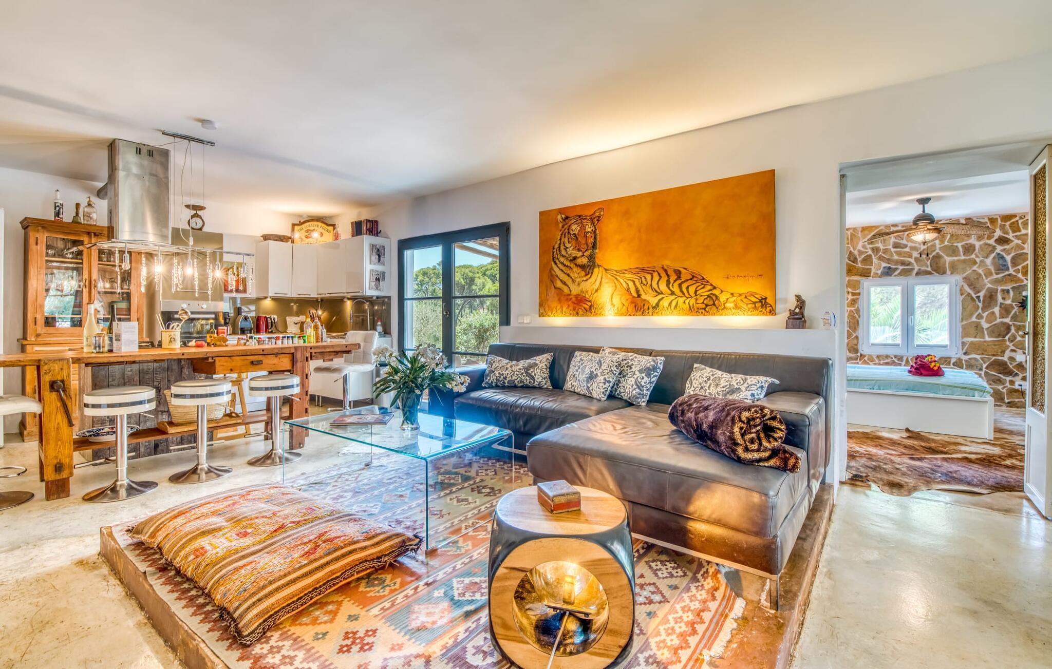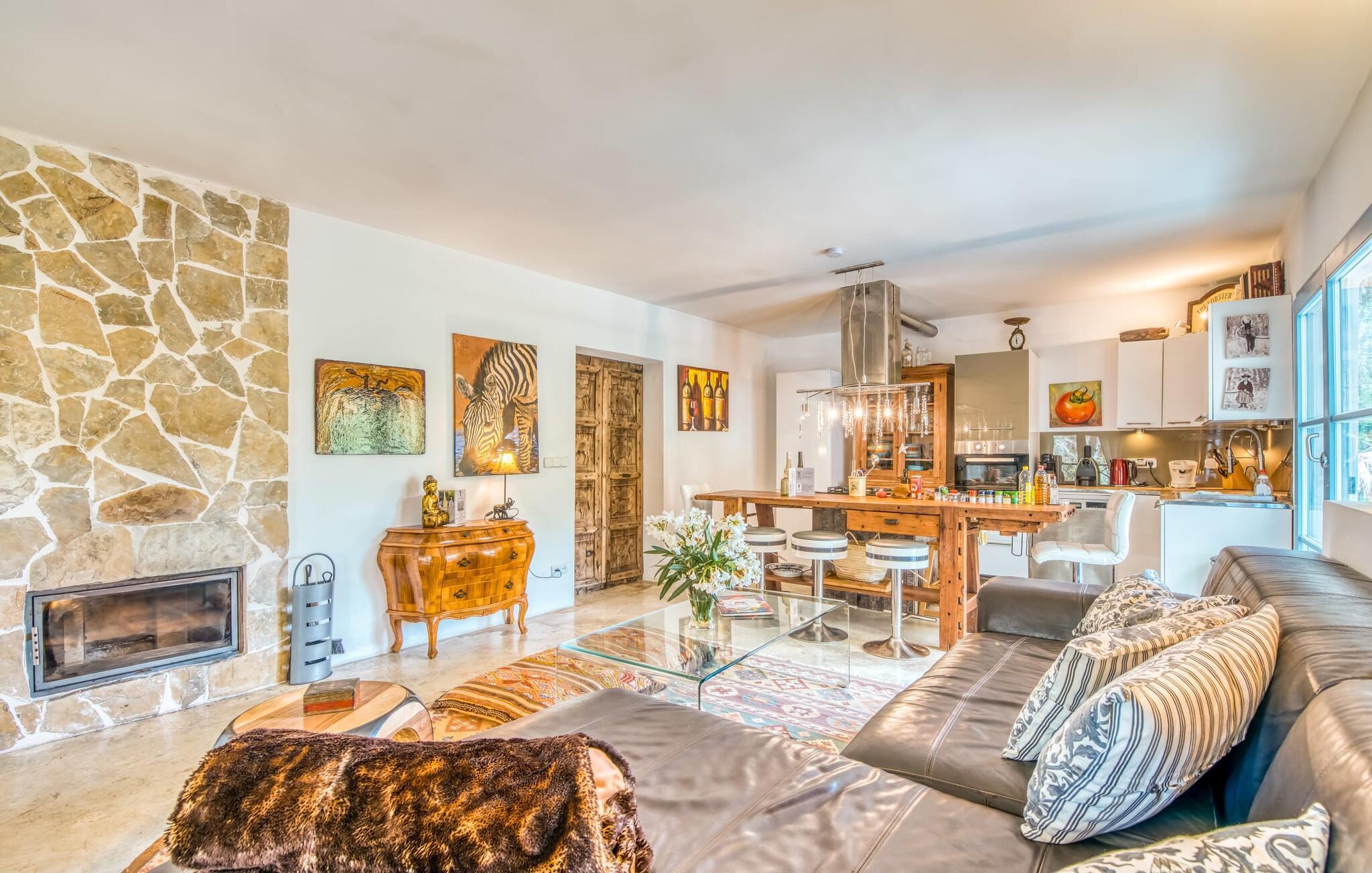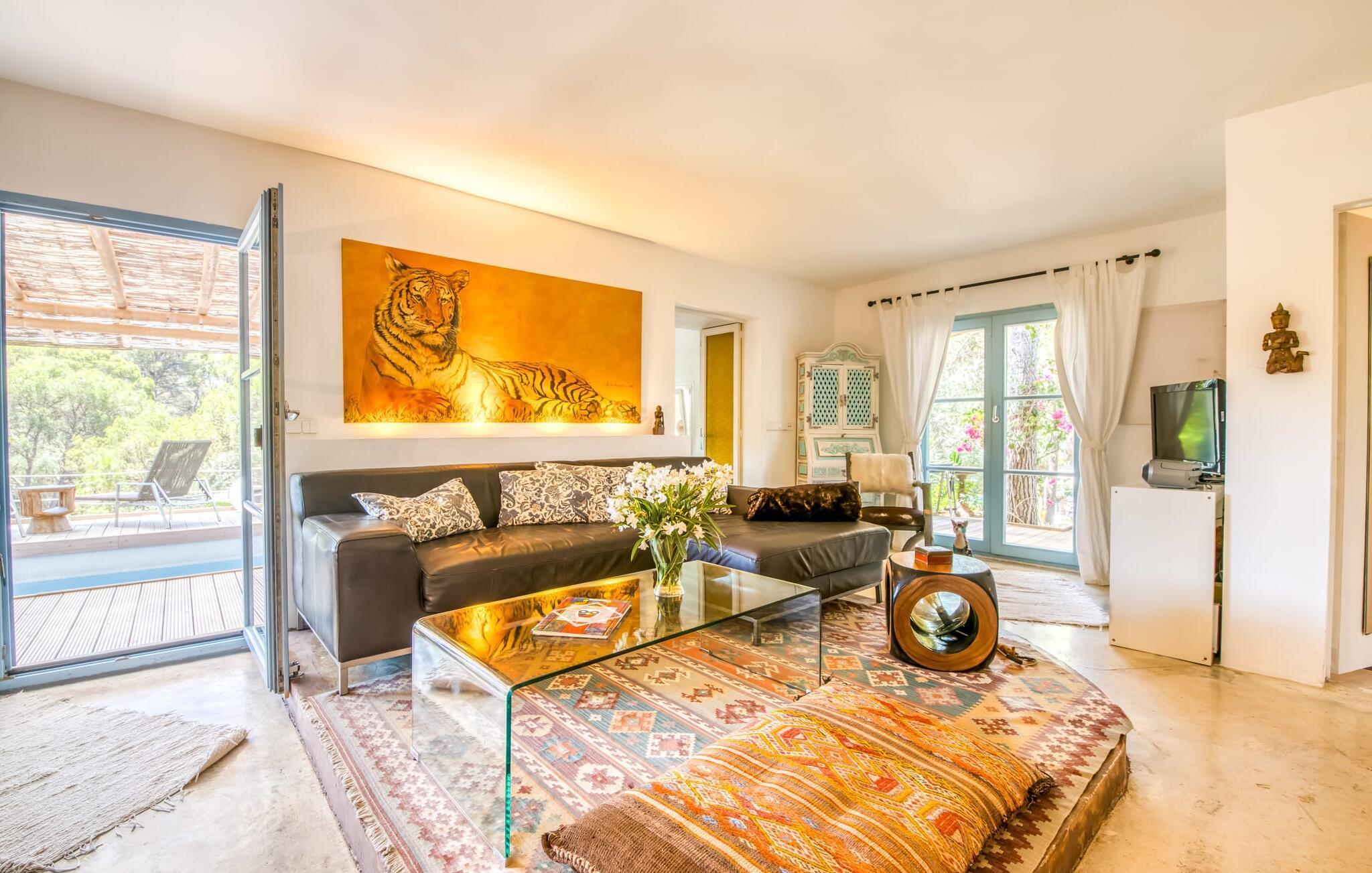 Billederne taler for sig selv: Feriehuset "Bamboo" er omgivet af frodig vegetation nær kysten på det sydlige Mallorca og emmer af ren livsglæde i hvert hjørne. Huset i Ibiza-stil byder på flere komfortabelt møblerede afslapningsområder, hvor du kan blive hængende og slappe af. Takket være taget forbliver den lille pool kølig selv i de varme sommermåneder. Et andet højdepunkt: et par skridt, og du sidder i en kærligt designet asiatisk verden med en dam og en overdækket træterrasse. Det er svært at tro, at det kun er et par minutters gang gennem fyrreskoven til Middelhavskysten. Cala Figuera byder på shopping og spisning med en smuk udsigt over havnen. Interiøret i dette feriehus til 6 gæster er krydret med originale detaljer og nøje udvalgte møbler fra hele verden. Boligarealet er fordelt på tre etager. I stueetagen er der stue med åbent køkken og udgang til terrassen ved poolen, soveværelse med dobbeltseng og badeværelse. En trappe i indgangspartiet fører til anden sal. Her finder du endnu en hyggelig stue med åbent køkken og spiseplads, soveværelse med dobbeltseng og badeværelse samt terrasse med overdækket chill-out område. Fra denne terrasse fører en udvendig trappe op til en rummelig tagterrasse med sommerkøkken, en hyggelig chill-out lounge og liggestole. Det tredje soveværelse ligger lige ved siden af tagterrassen og har eget badeværelse. Fincaen grænser op til naturparken Mondragó og ligger kun få minutters gang fra havnen i Cala Figuera med restauranter og små butikker. Sandstranden S'Amarador kan nås på 10 minutter i bil. Santanyí ligger kun 6 km væk og byder på gode indkøbsmuligheder, supermarkeder og et ugentligt marked. Dette er et Fincallorca feriehus.